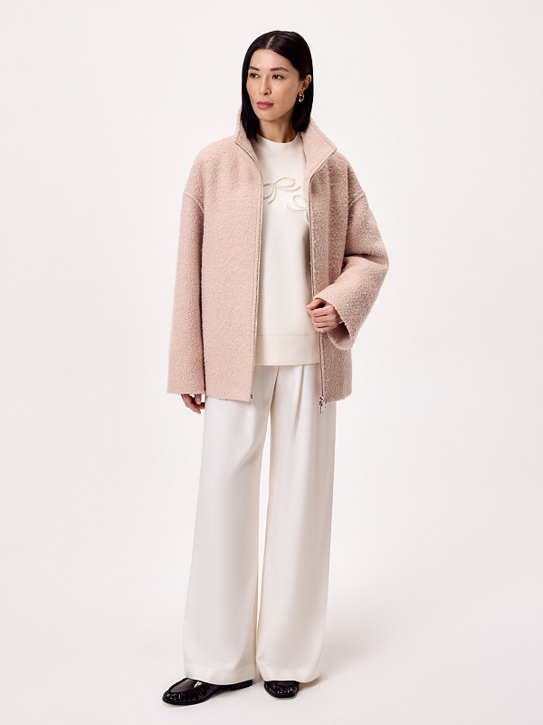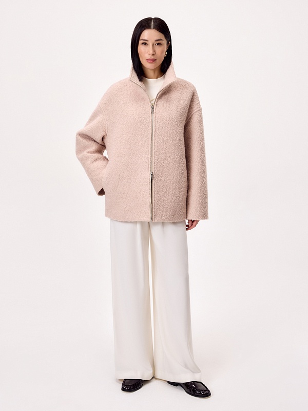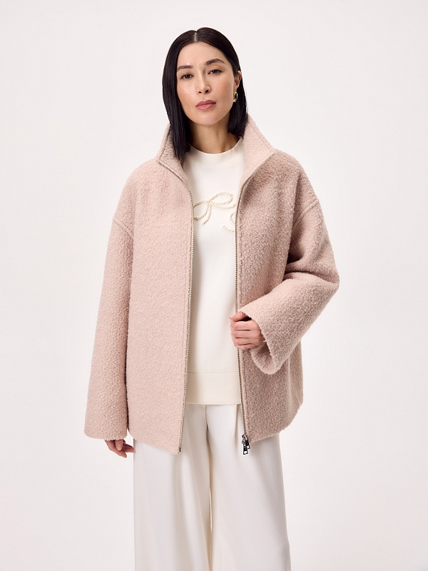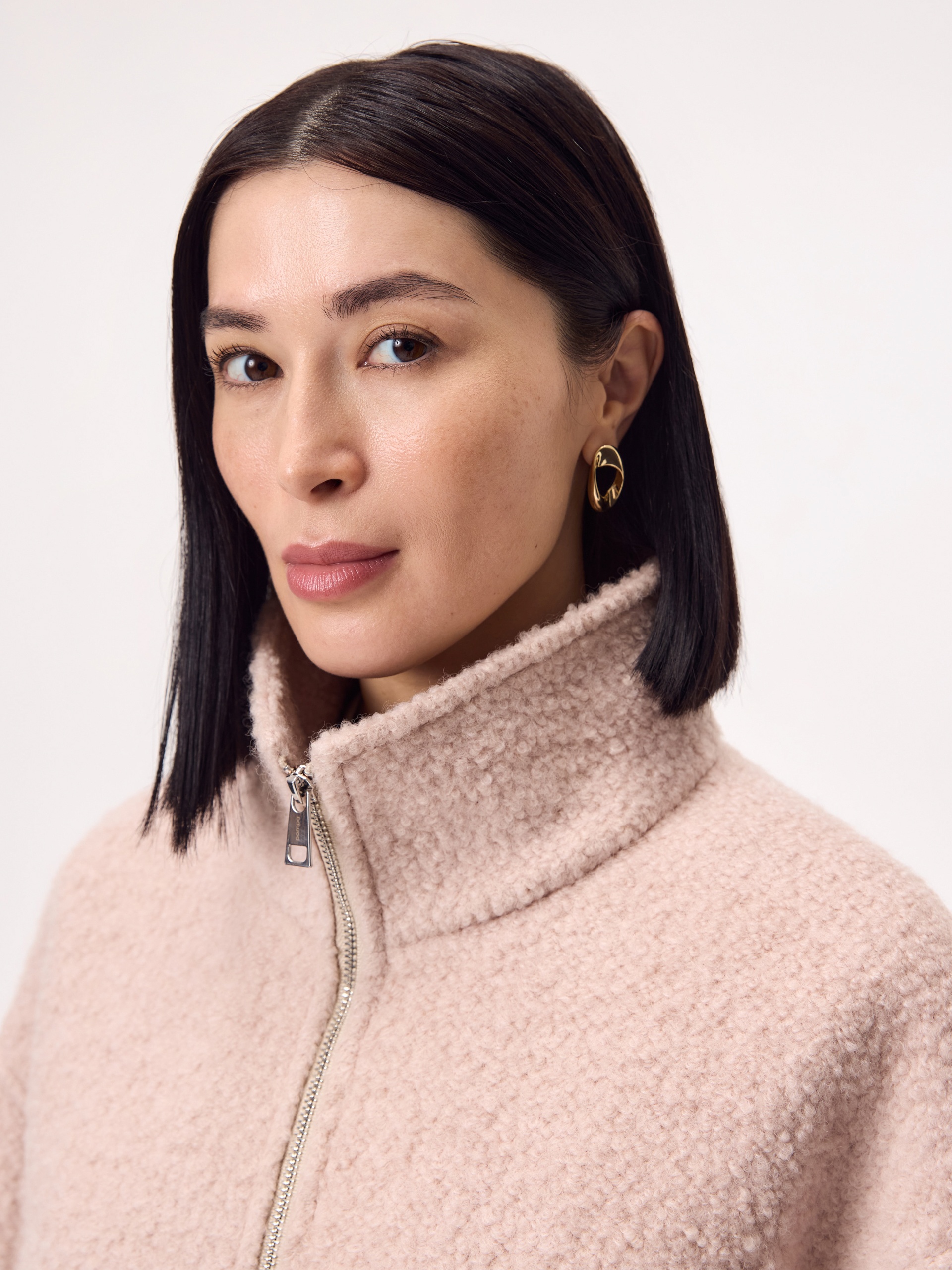 Укороченная компактная куртка нежного пудрового оттенка, выполненная в мягкой уютной вареной шерсти букле. Широкие рукава, спущенное плечо, застежка на молнию и актуальный воротник стойка — такая куртка незаменима в прохладные дни конца зимы и начала весны. Куртка изготовлена с использованием запатентованных технологий: высокотехнологичная мембрана RaftPro надежно защищает от ветра, холода и перепада температур. Произведено в Санкт-Петербурге.