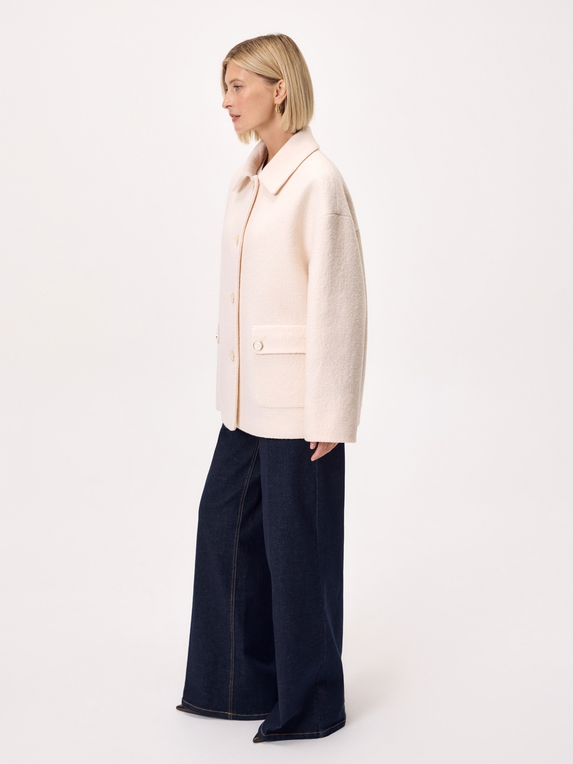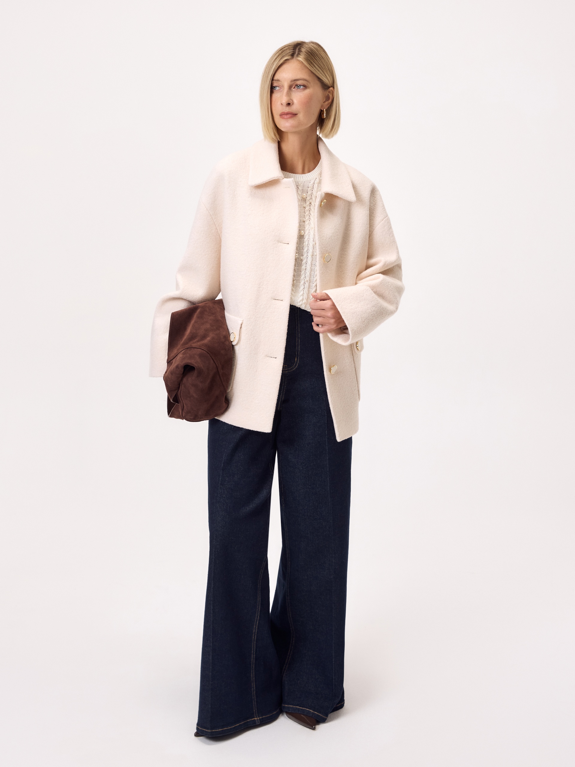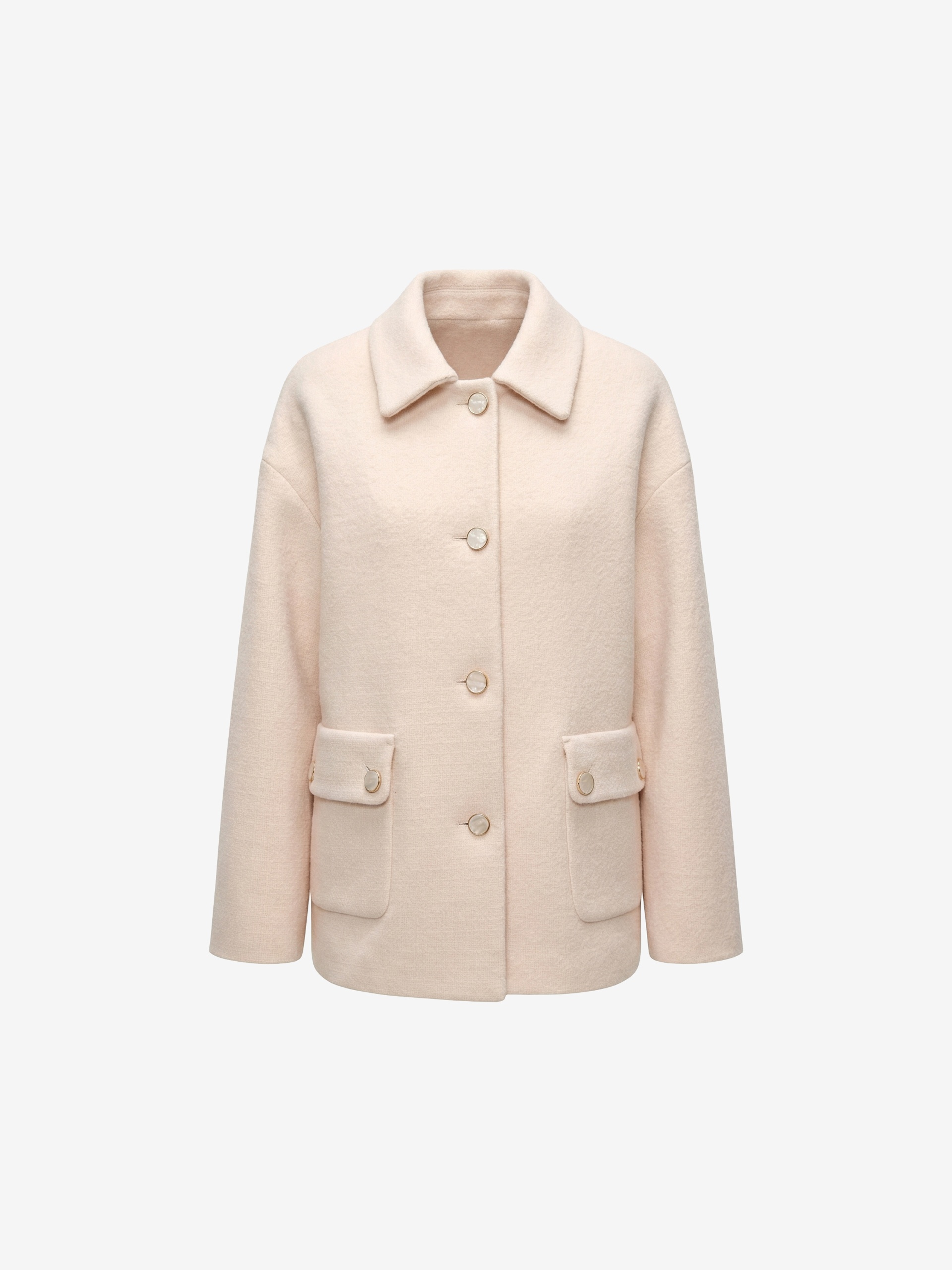 Лаконичная куртка из нежной буклированной шерстяной ткани в перламутровом оттенке. Модель однобортная, с отложным воротником и накладными карманами с клапанами. Свободный рубашечный рукав не стесняет движений, а изящные перламутровые пуговицы подчёркивают изысканность пальто. Такая куртка станет незаменимым спутником в прохладные весенние дни, а высокотехнологичная мебрана Raft Pro. расположенная в спинке изделия, надежно защитит от пронизывающего ветра Изделие на подкладке. Произведено в Санкт-Петербурге.