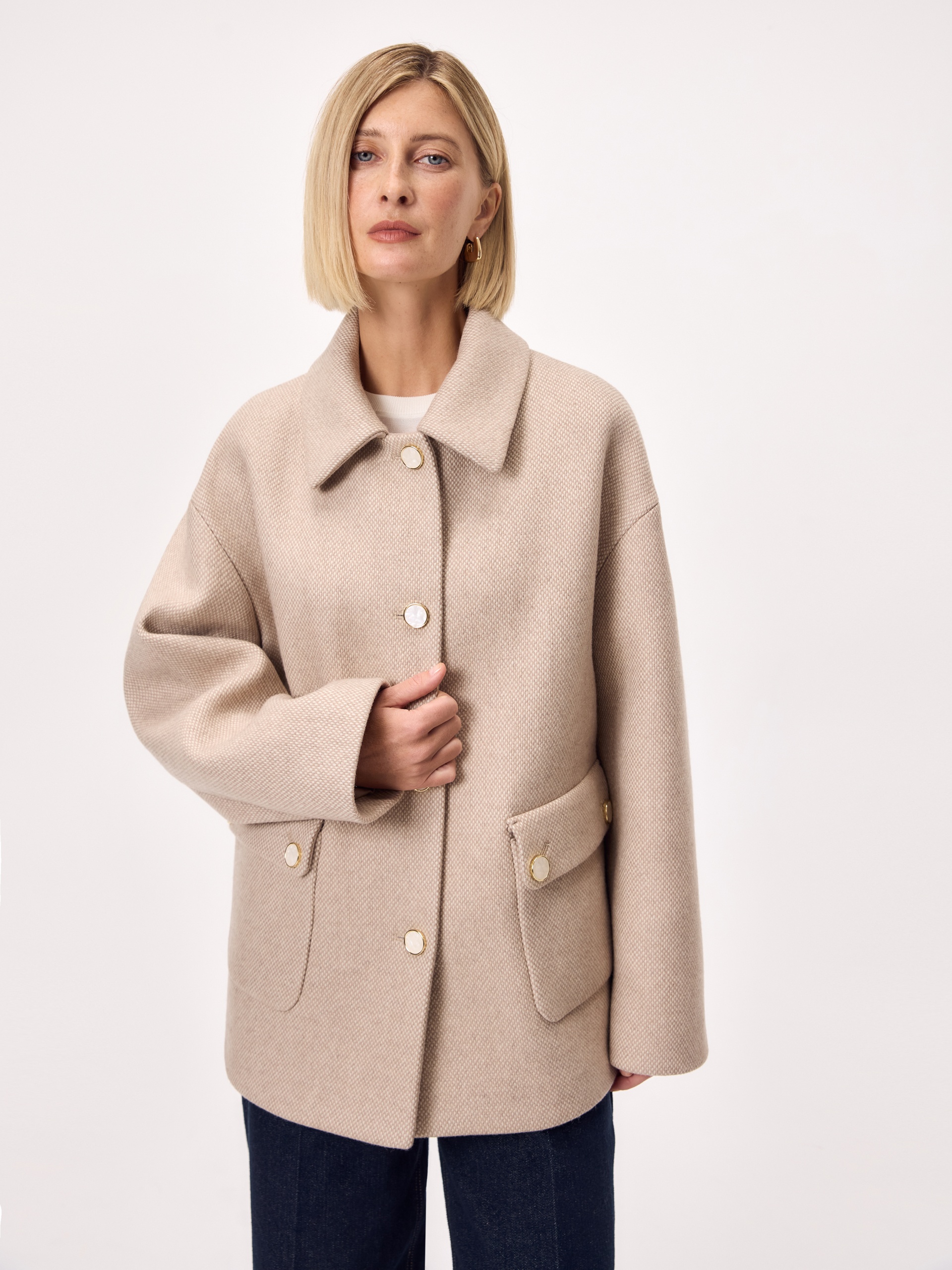 Полупальто из 100% шерстяного твида