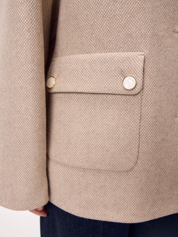Лаконичная куртка из 100% шерстяного твида в актуальном переплетении "рогожка". Модель однобортная, с отложным воротником и накладными карманами с клапанами. Свободный рубашечный рукав не стесняет движений, а изящные перламутровые пуговицы подчёркивают изысканность пальто. Такая куртка станет незаменимым спутником в прохладные весенние дни. Изделие на подкладке. Произведено в Санкт-Петербурге.
