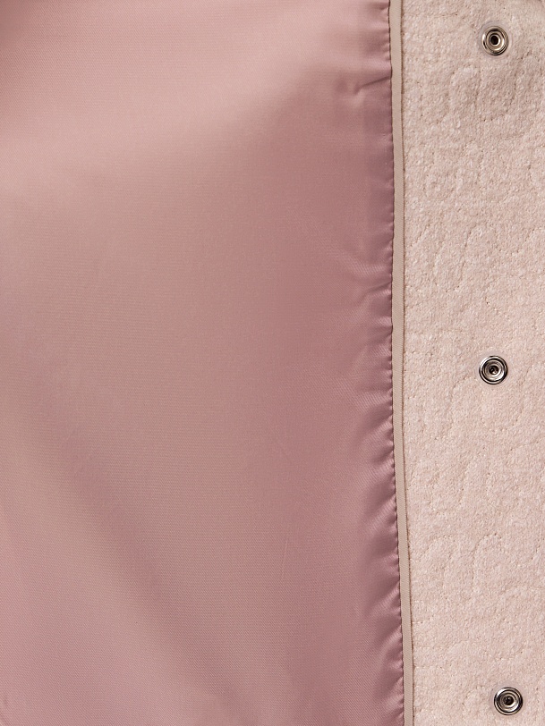 Лаконичная куртка-бомбер из нежной буклированной шерстяной ткани бледно-розовом оттенке . Модель однобортная, с воротником стойкой. Свободный рубашечный рукав не стесняет движений, Такая куртка станет незаменимым спутником в прохладные весенние дни,