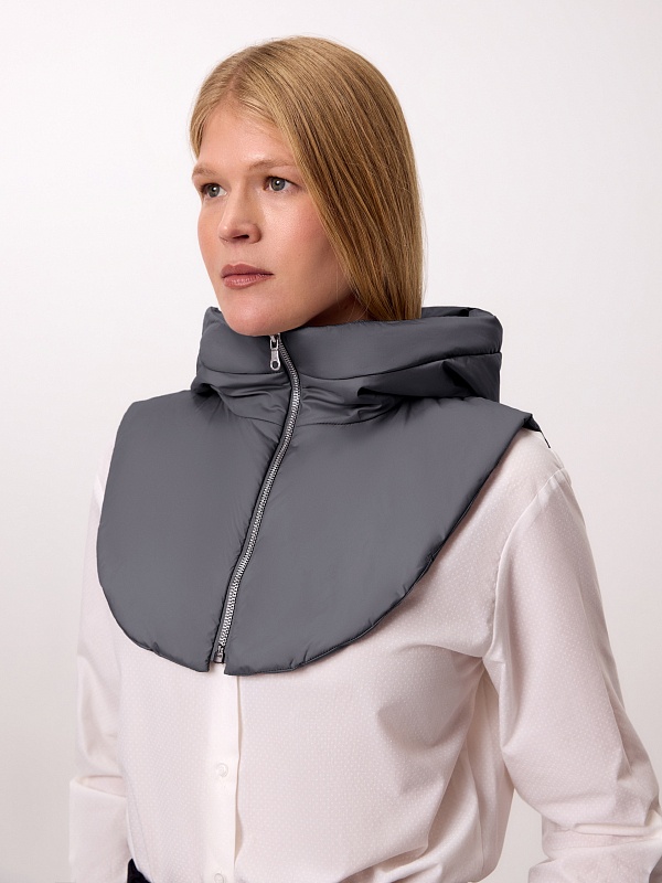 Съемный утепленный капюшон из плащевой ткани с водоотталкивающим покрытием. Капюшон имеет манишку и застежку на молнию. По бокам располагаются два мягких фиксатора для регулирования объема. Такой капюшон послужит прекрасным дополнением к любому образу с пальто из нашей коллекции и надежно защитит от непогоды. Произведено в Санкт-Петербурге.