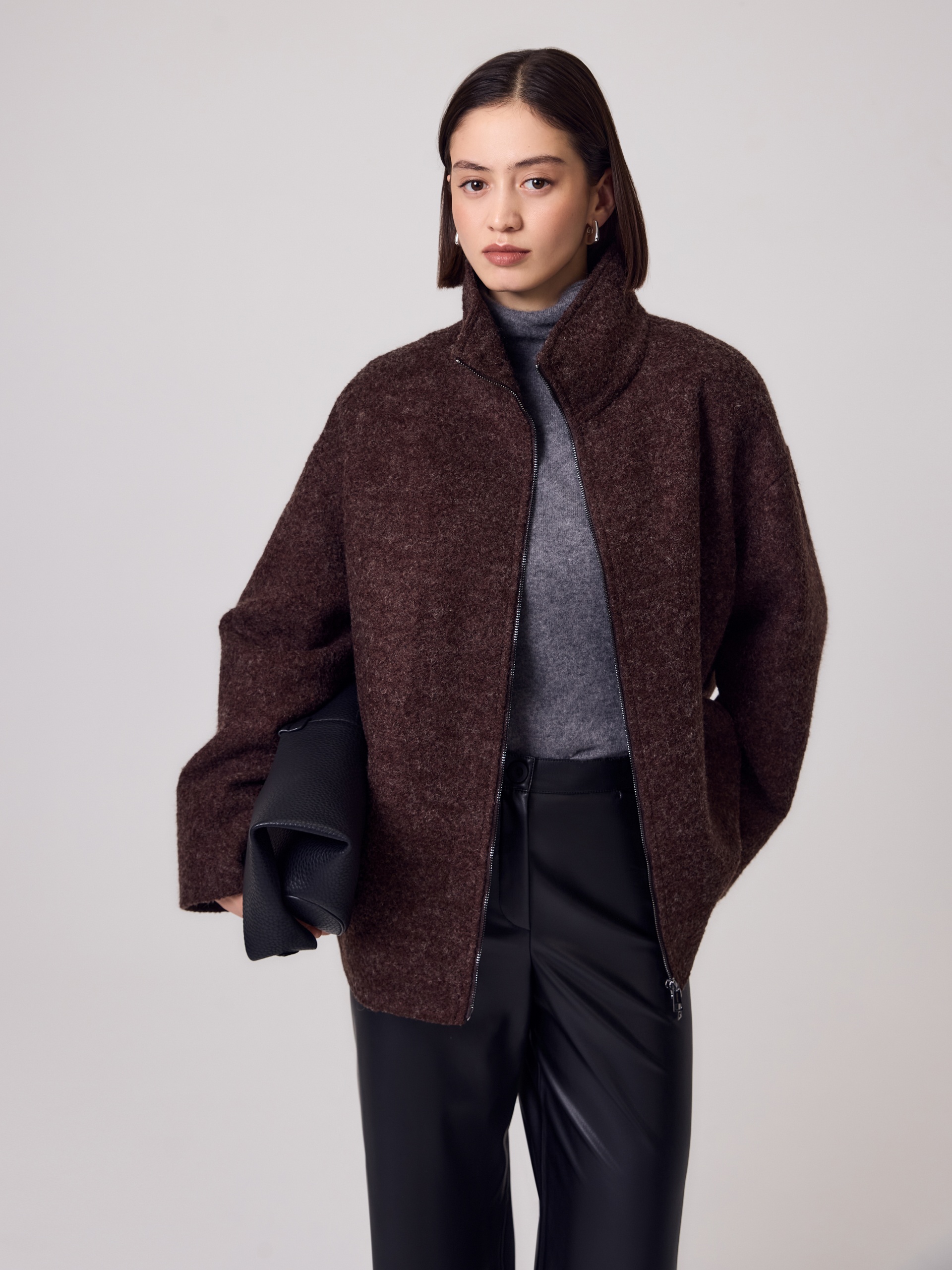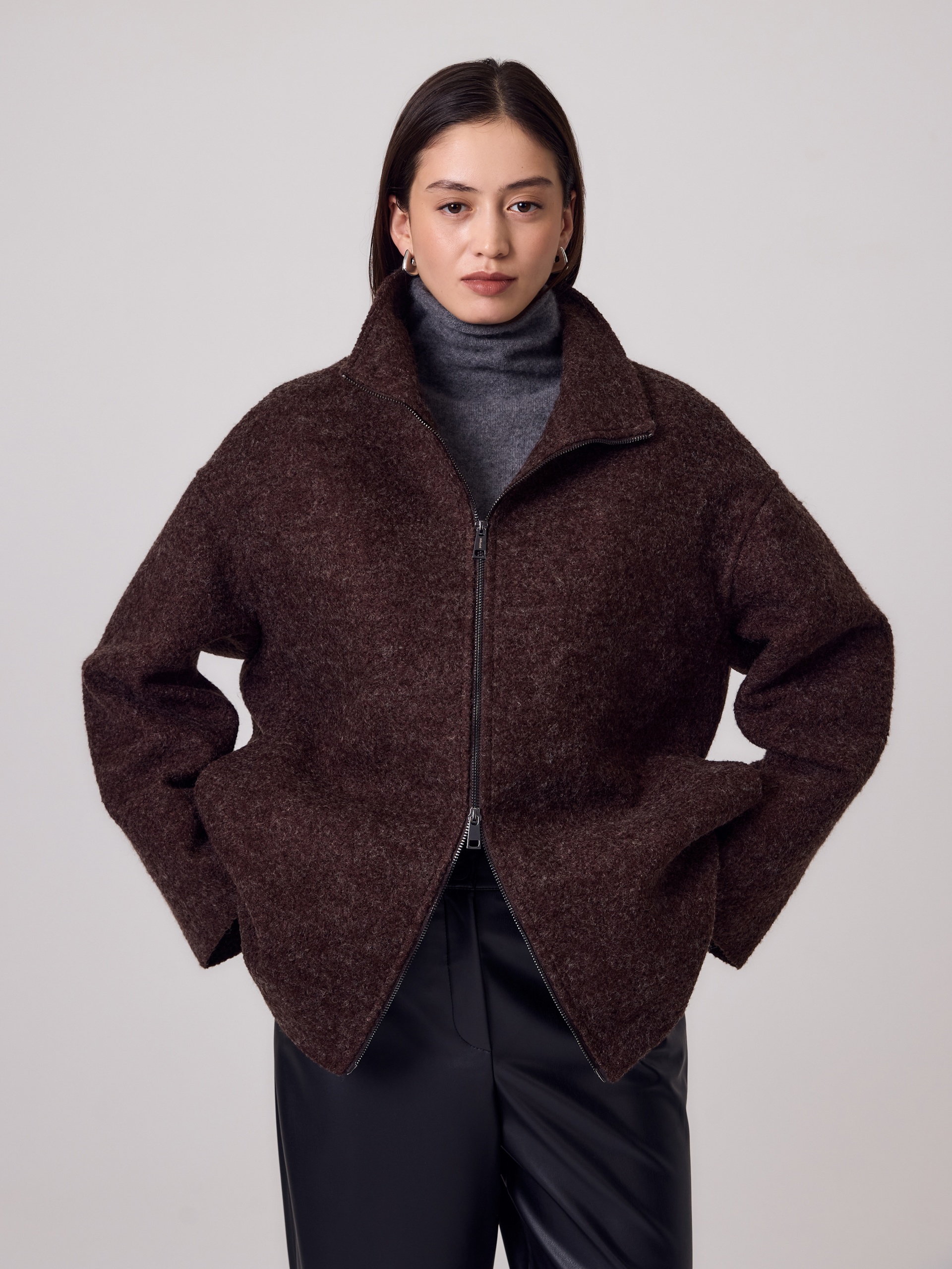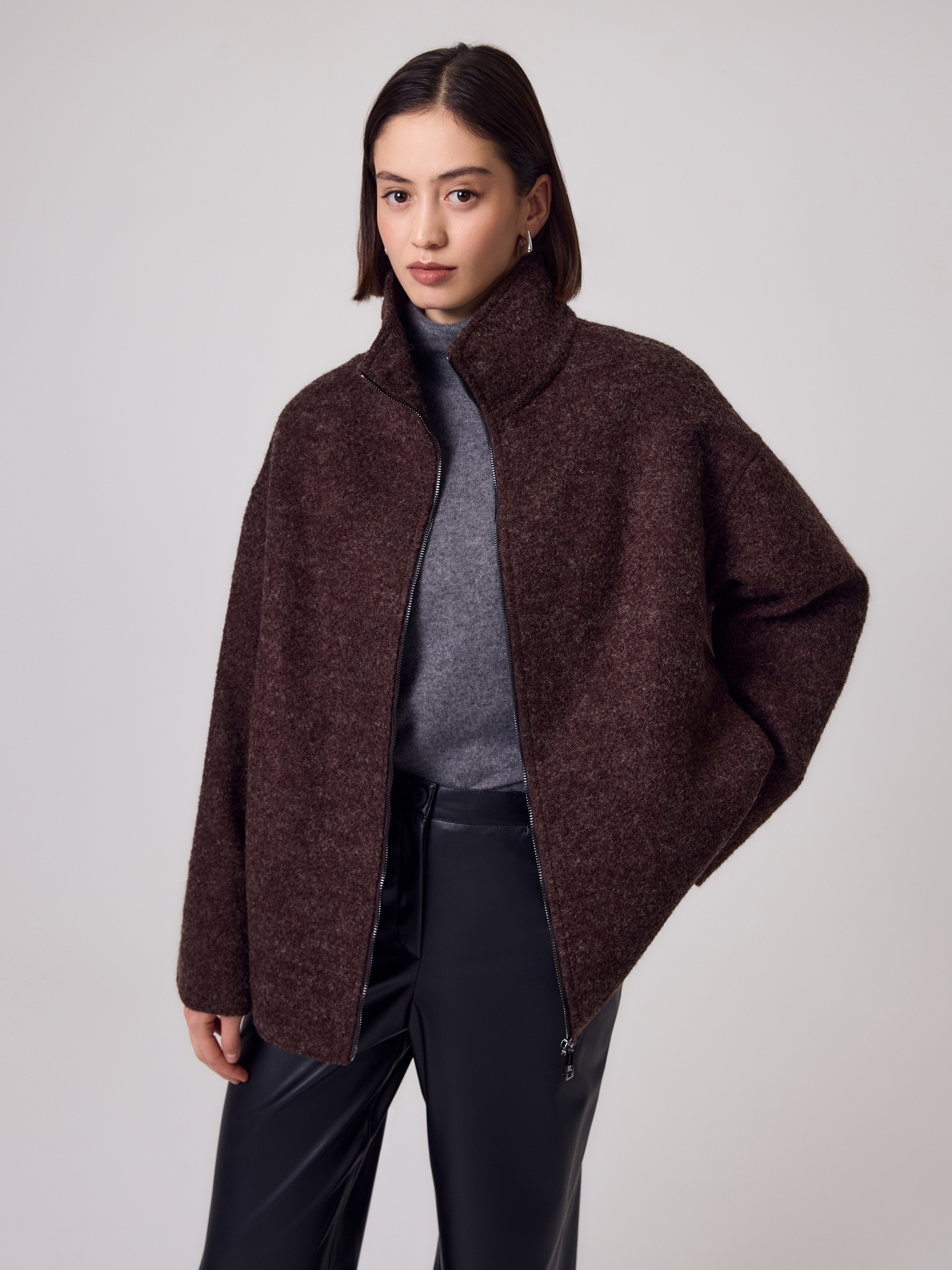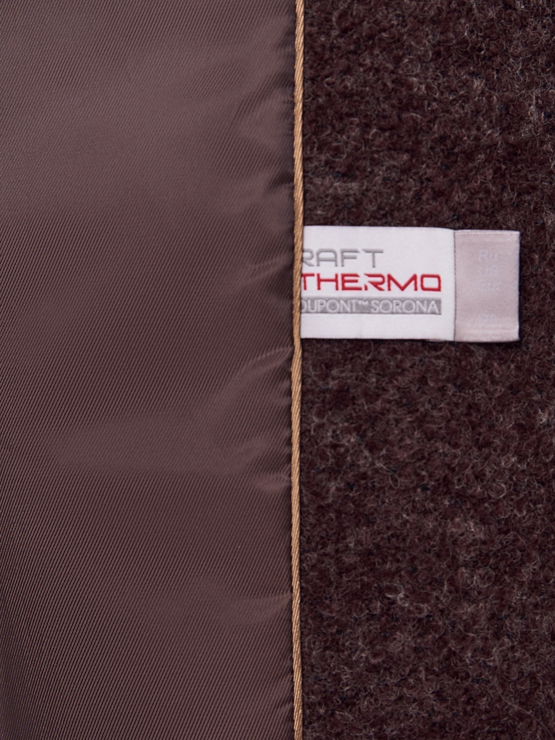 Укороченная компактная куртка трендового цвета горький шоколад, выполненная в мягкой уютной вареной шерсти букле. Широкие рукава, спущенное плечо, застежка на двухзамковую молнию и актуальный воротник стойка — такая куртка незаменима в прохладные дни. Куртка изготовлена с использованием запатентованных технологий: высокотехнологичная мембрана RaftPro и инновационный утеплитель DuPont Sorona надежно защищают от ветра, холода и перепада температур. Произведено в Санкт-Петербурге.
