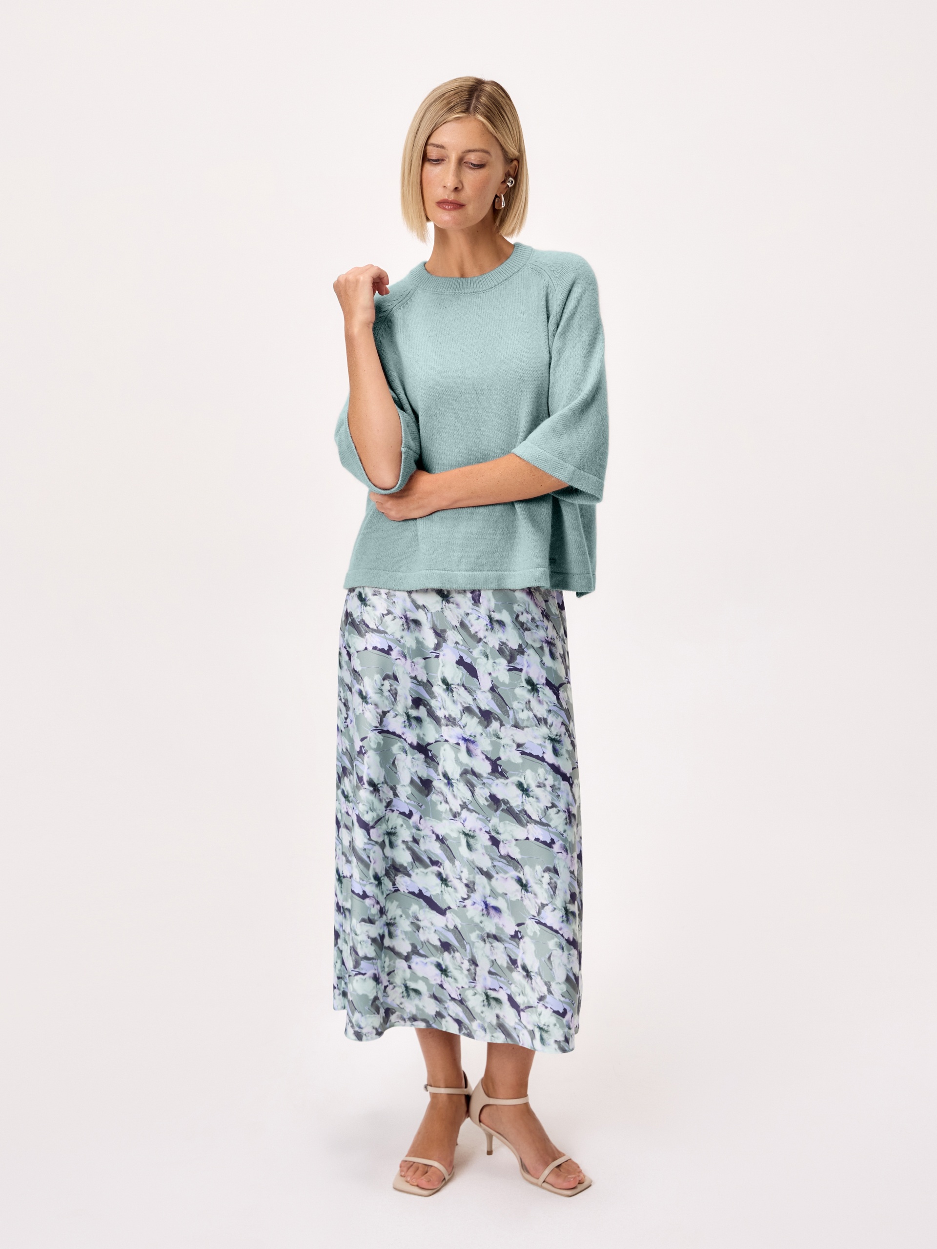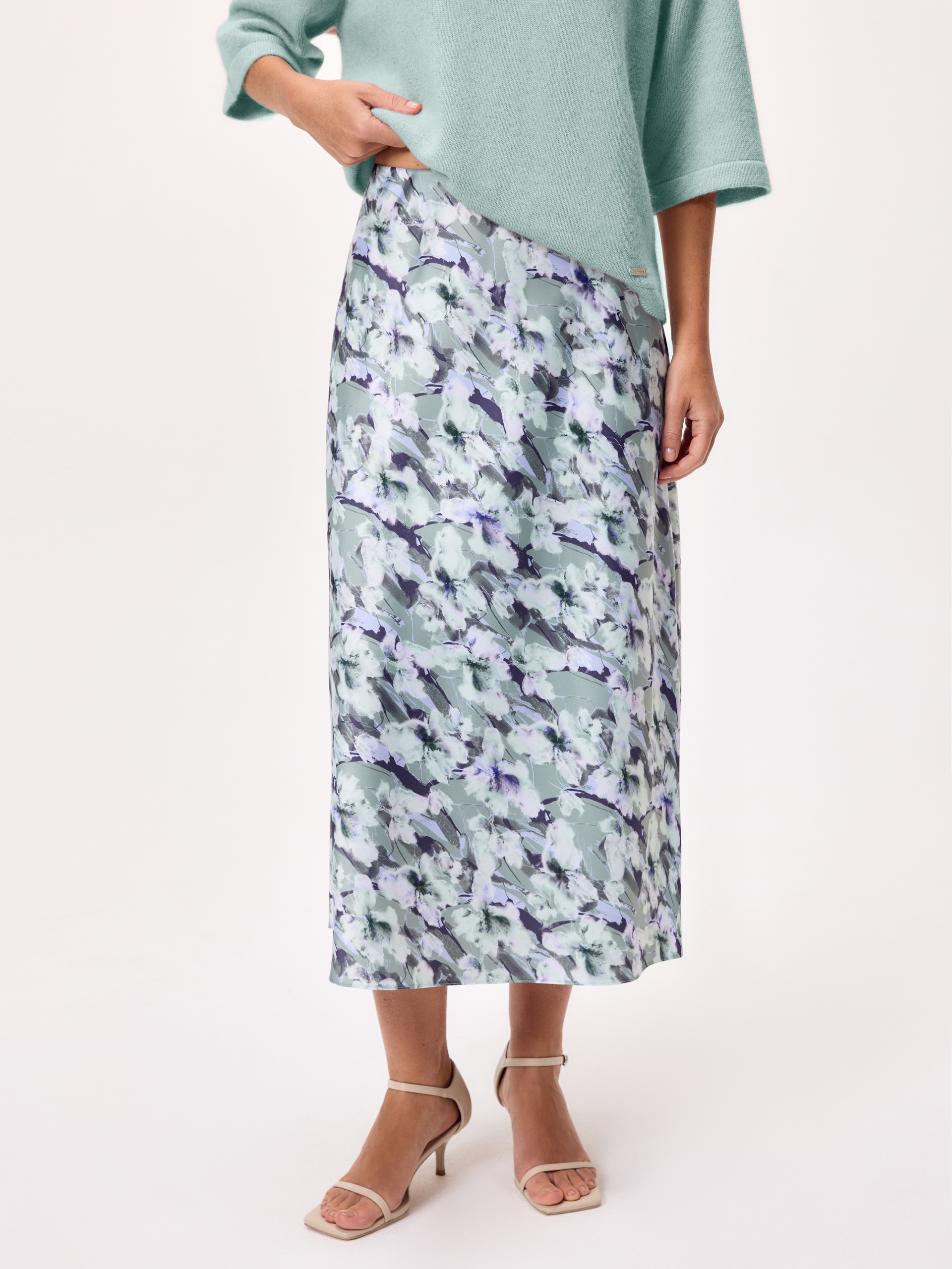 Юбка макси из атласной ткани в романтичном весеннем принте на резинке. Незаменимая вещь в гардеробе любой женщины....