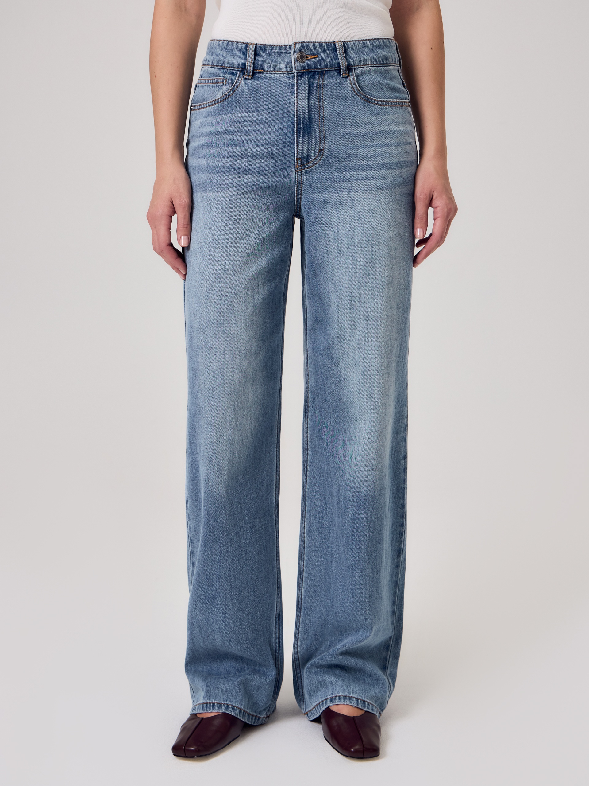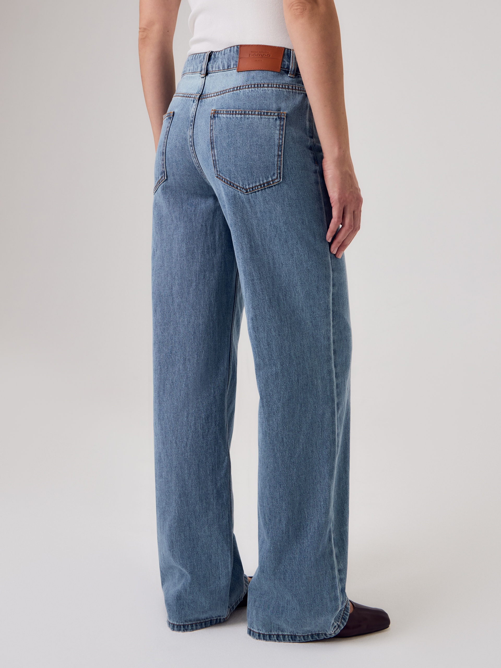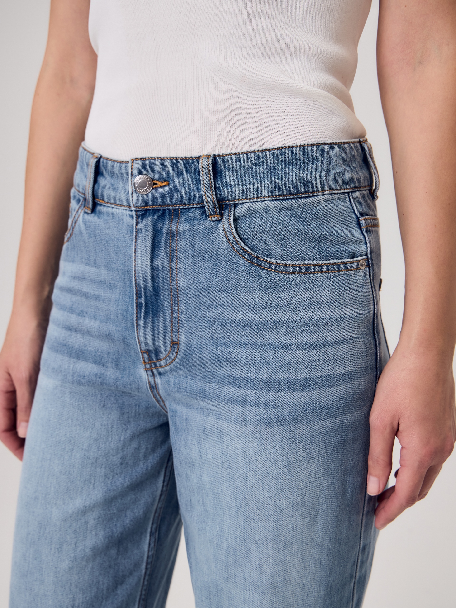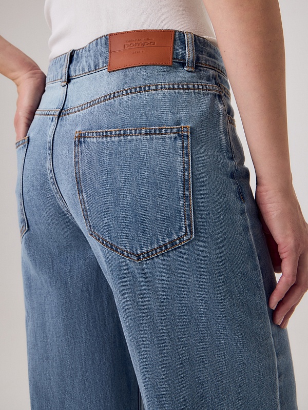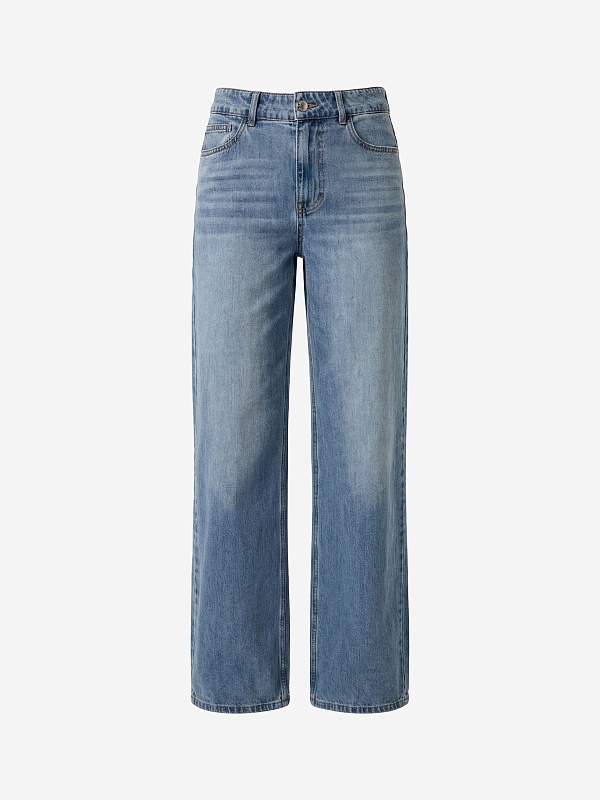 Прямые широкие джинсы из 100% хлопка голубого цвета с классической застежкой на молнию и пуговицу и карманами. Станет вашей любимой вещью в вашем гардеробе.