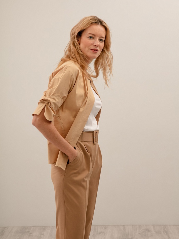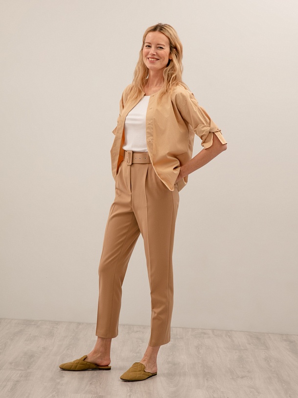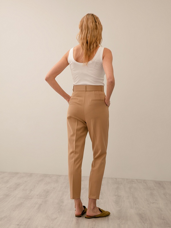 Брюки с мастерски выверенной высокой посадкой — бестселлер Pompa! Выполнены из костюмной ткани кремового оттенка, они идеально подходят для создания образов с акцентом на талию.
