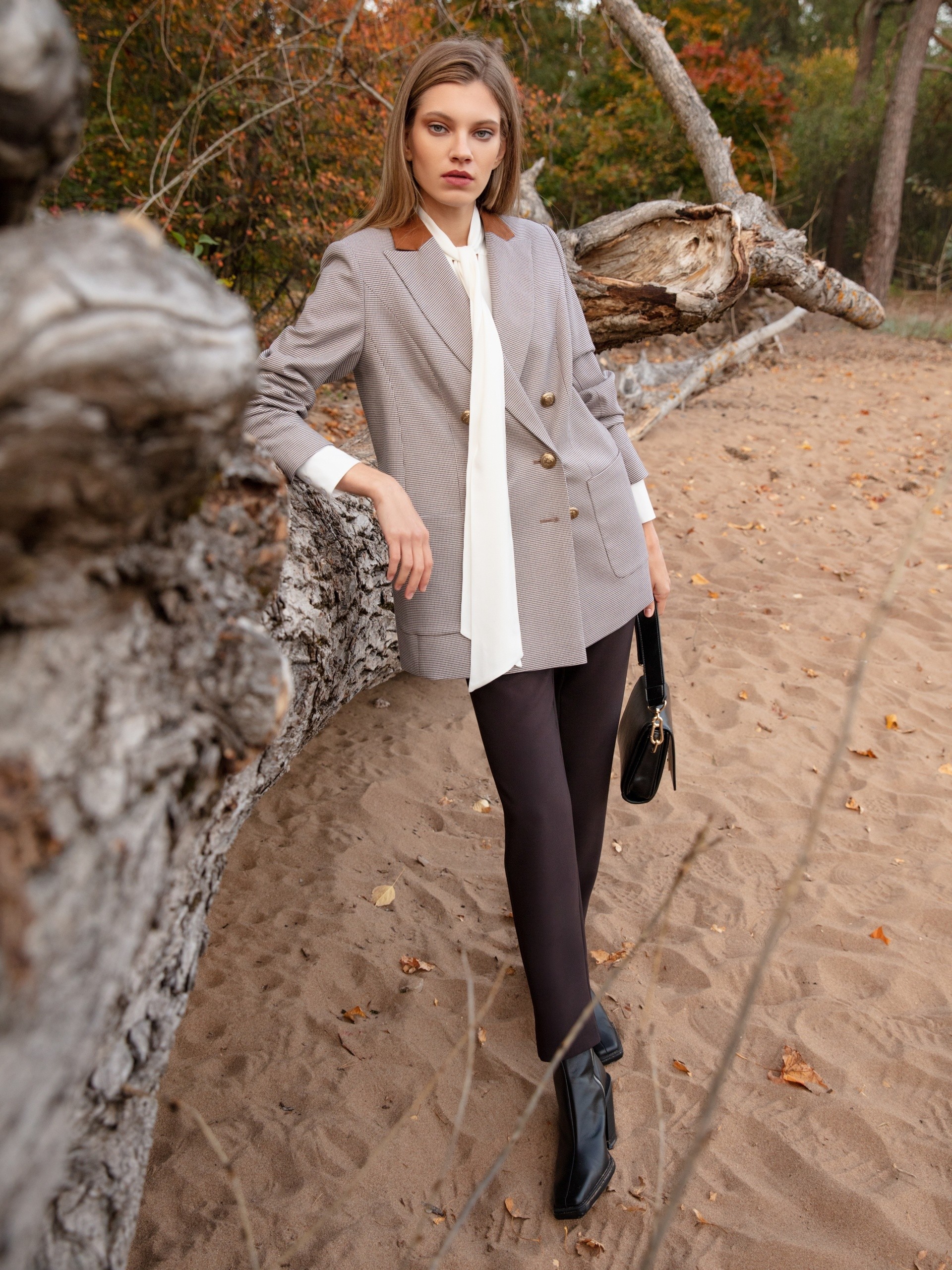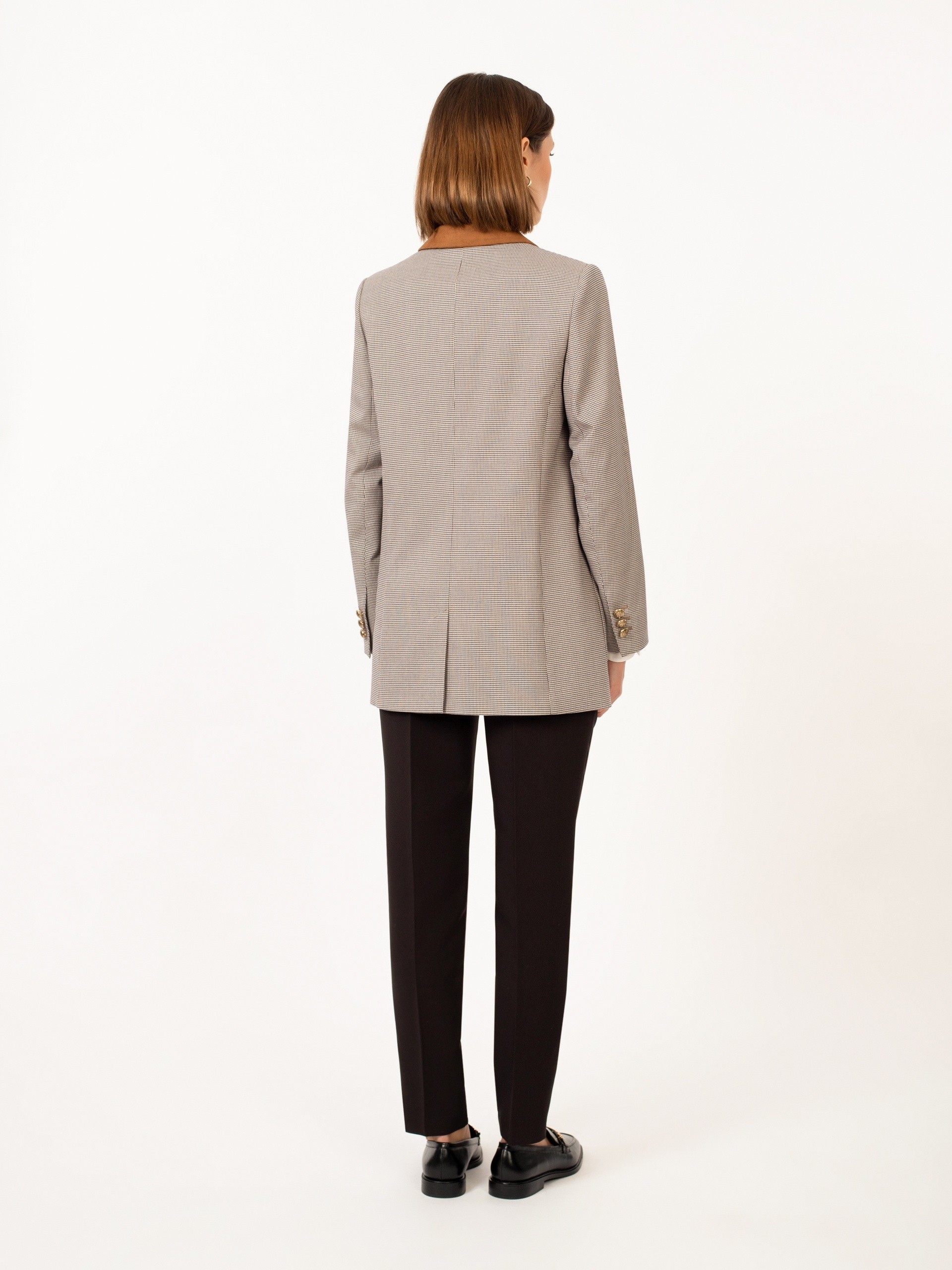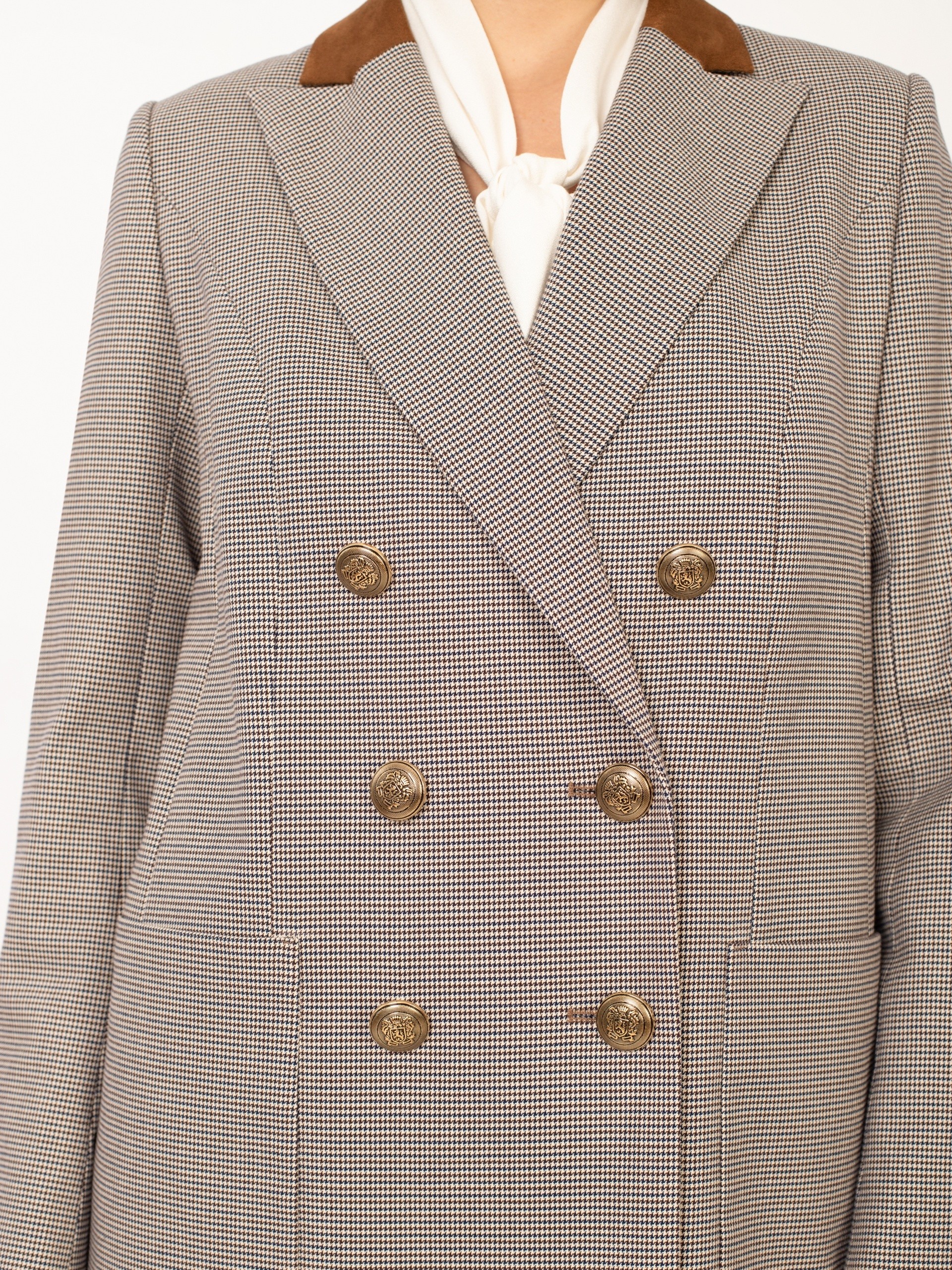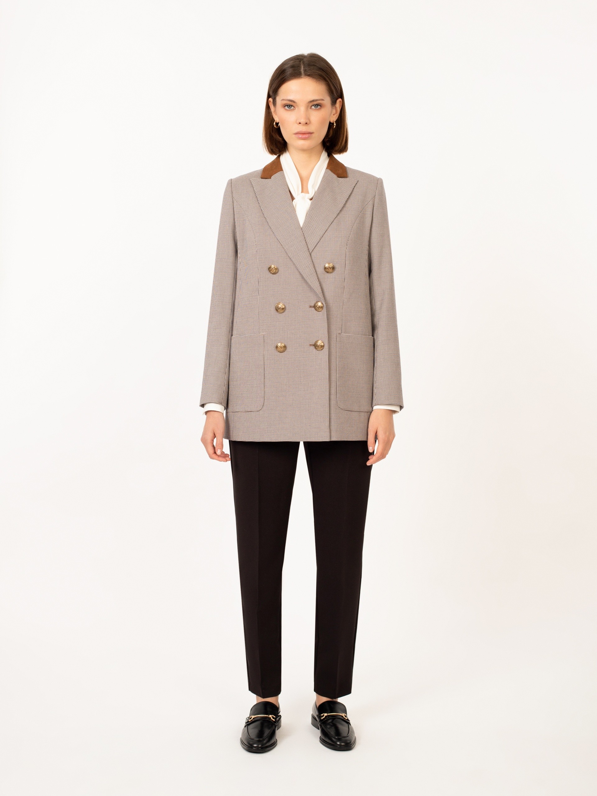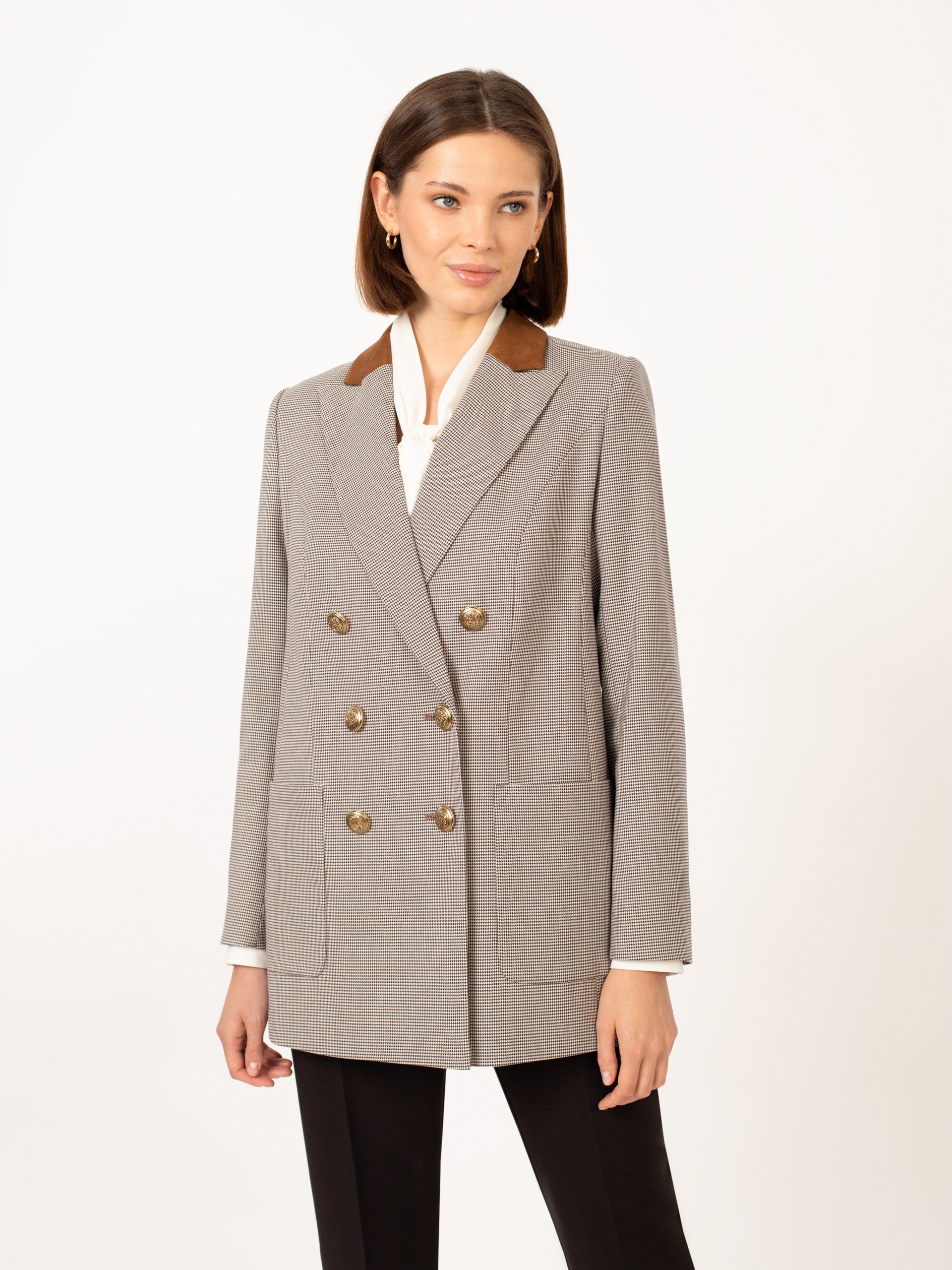 Двубортный жакет из ткани с узором пье-де-пуль — классика на все времена.