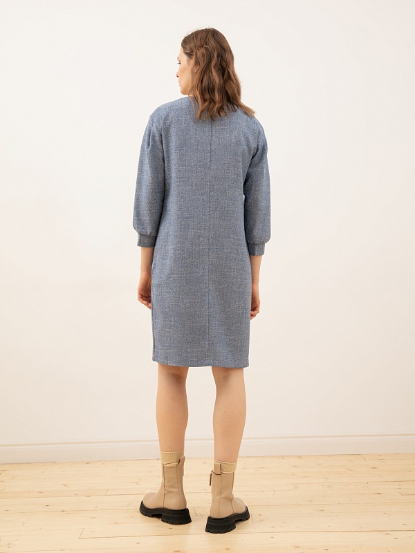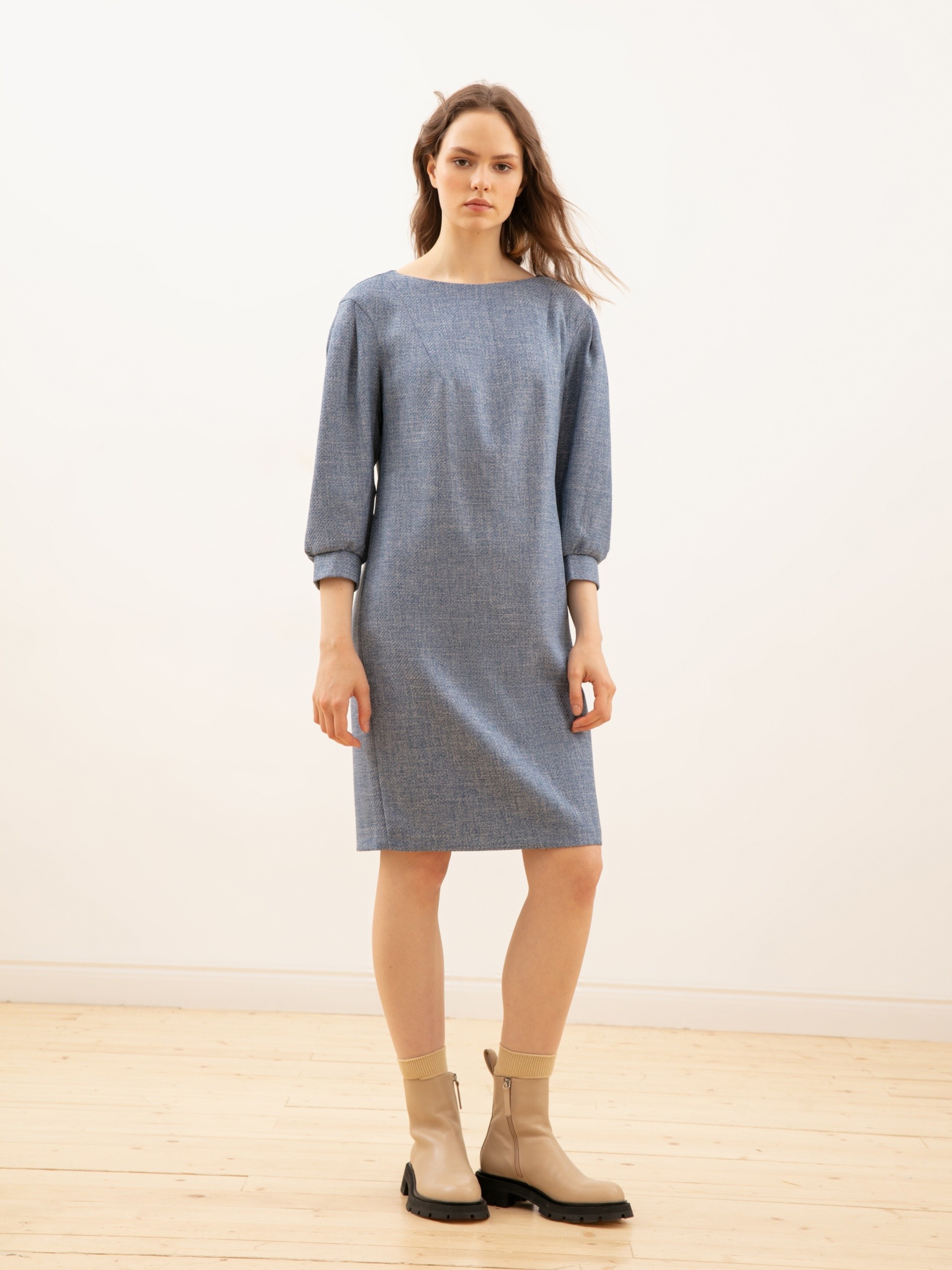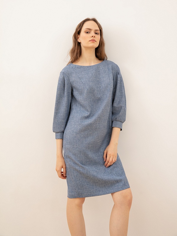 Прямое платье миди с длинным рукавом отлично подойдет для ежедневного ношения. Рукав рубашечный, с манжетами, длины 7/8.