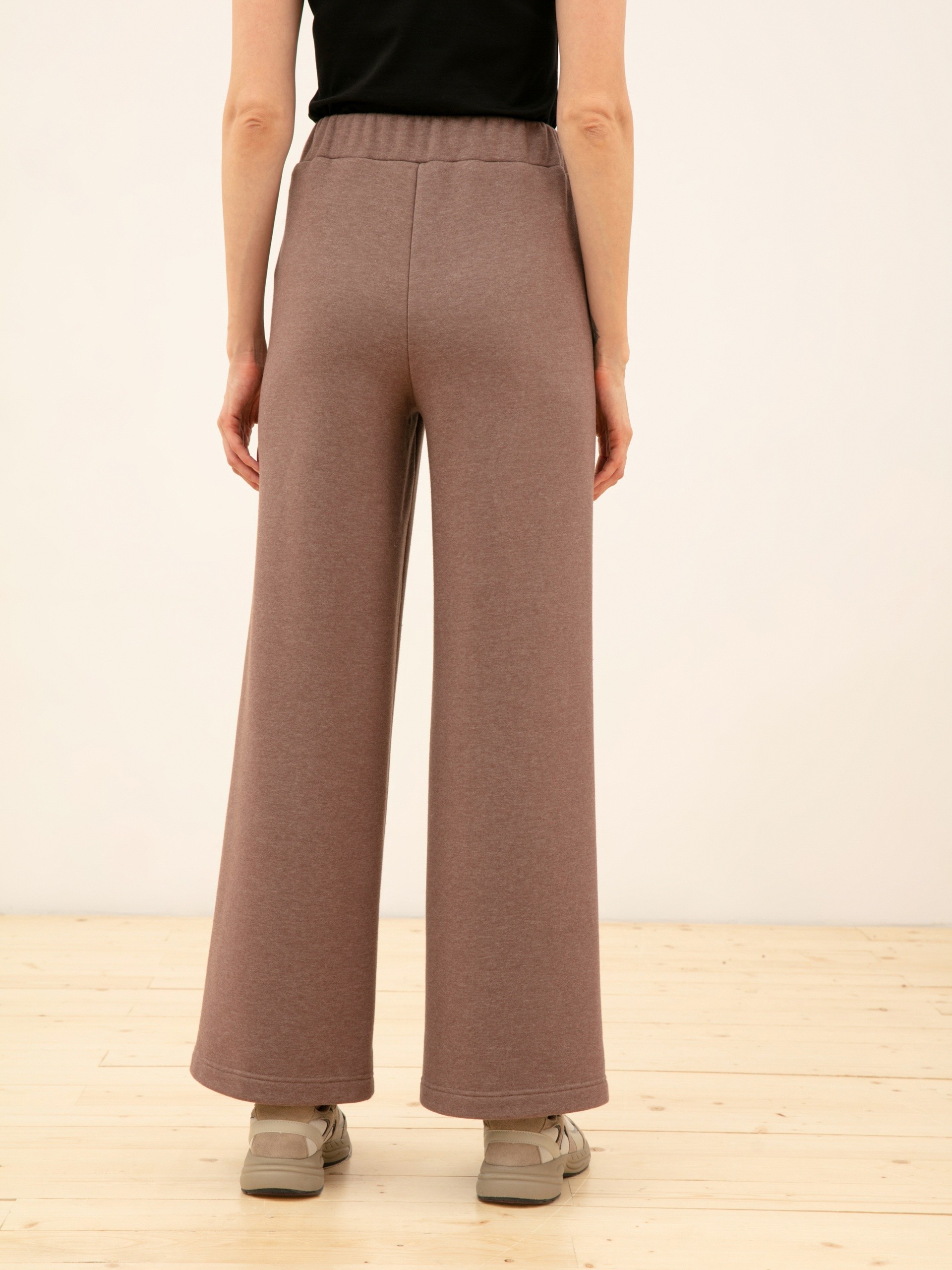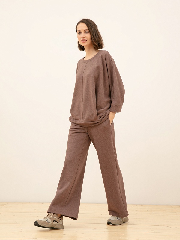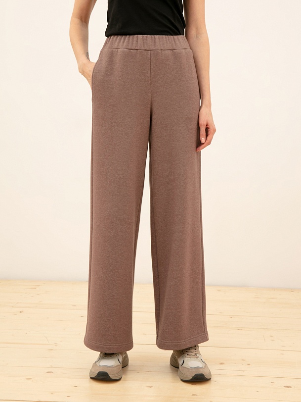 Брюки из тонкого футера кофейного оттенка. Отлично смотрятся со свитшотом или джемпером из той же ткани.