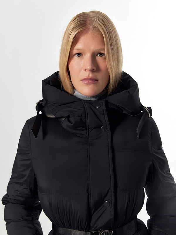 Женское пальто-пуховик с поясом
