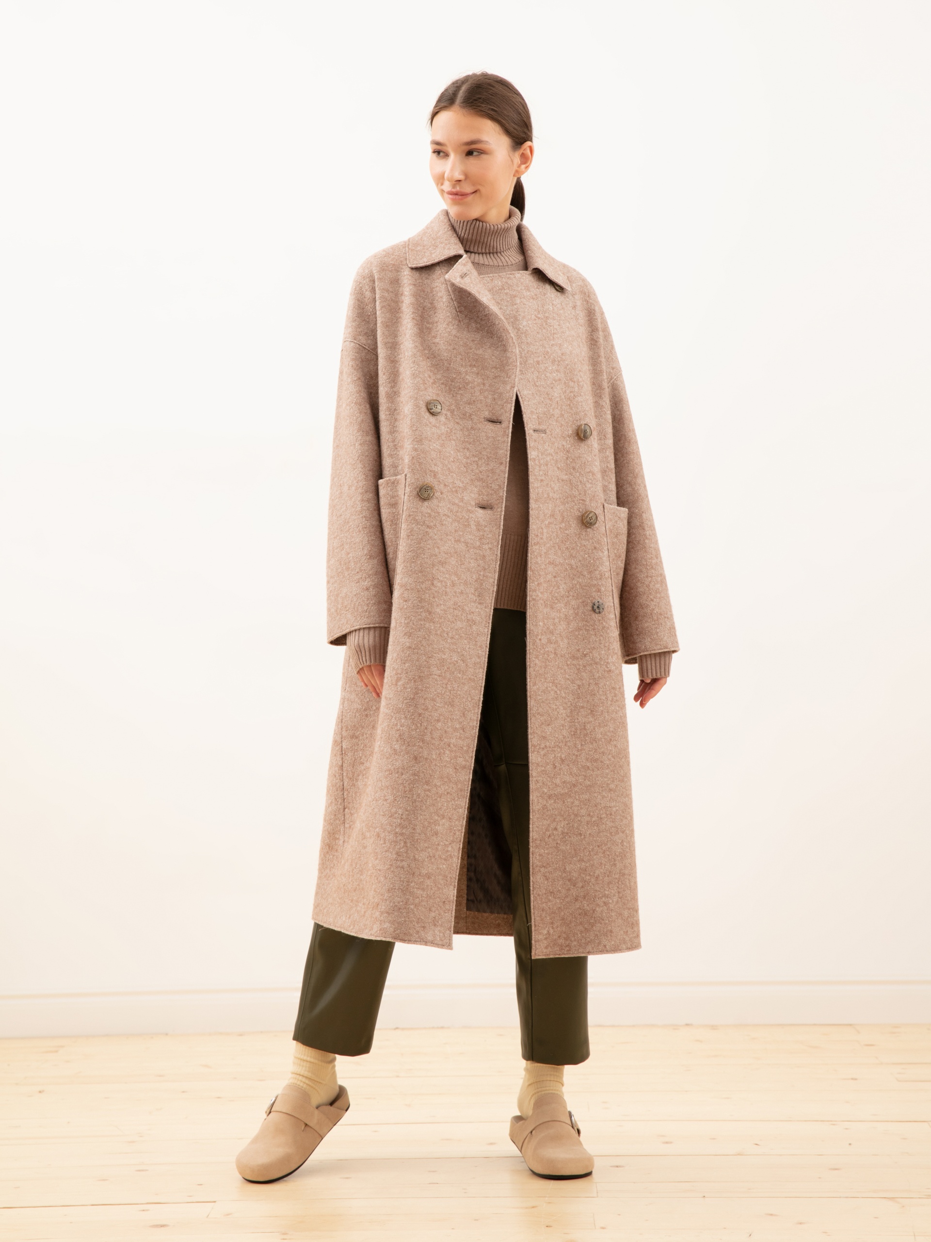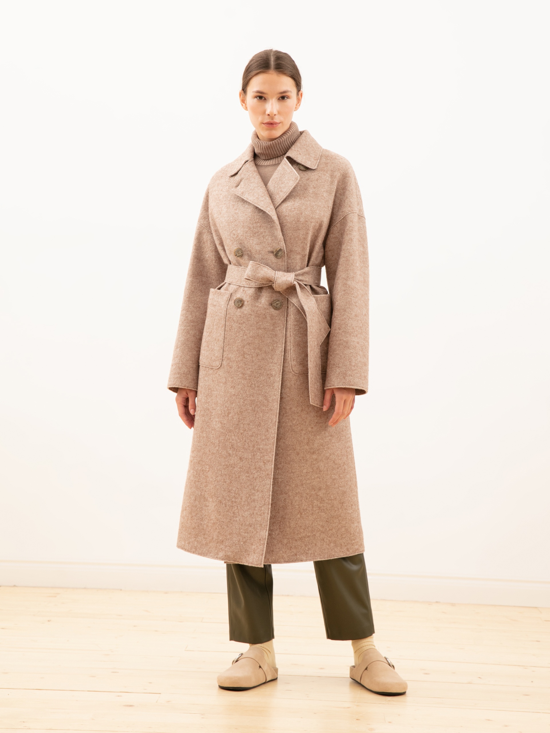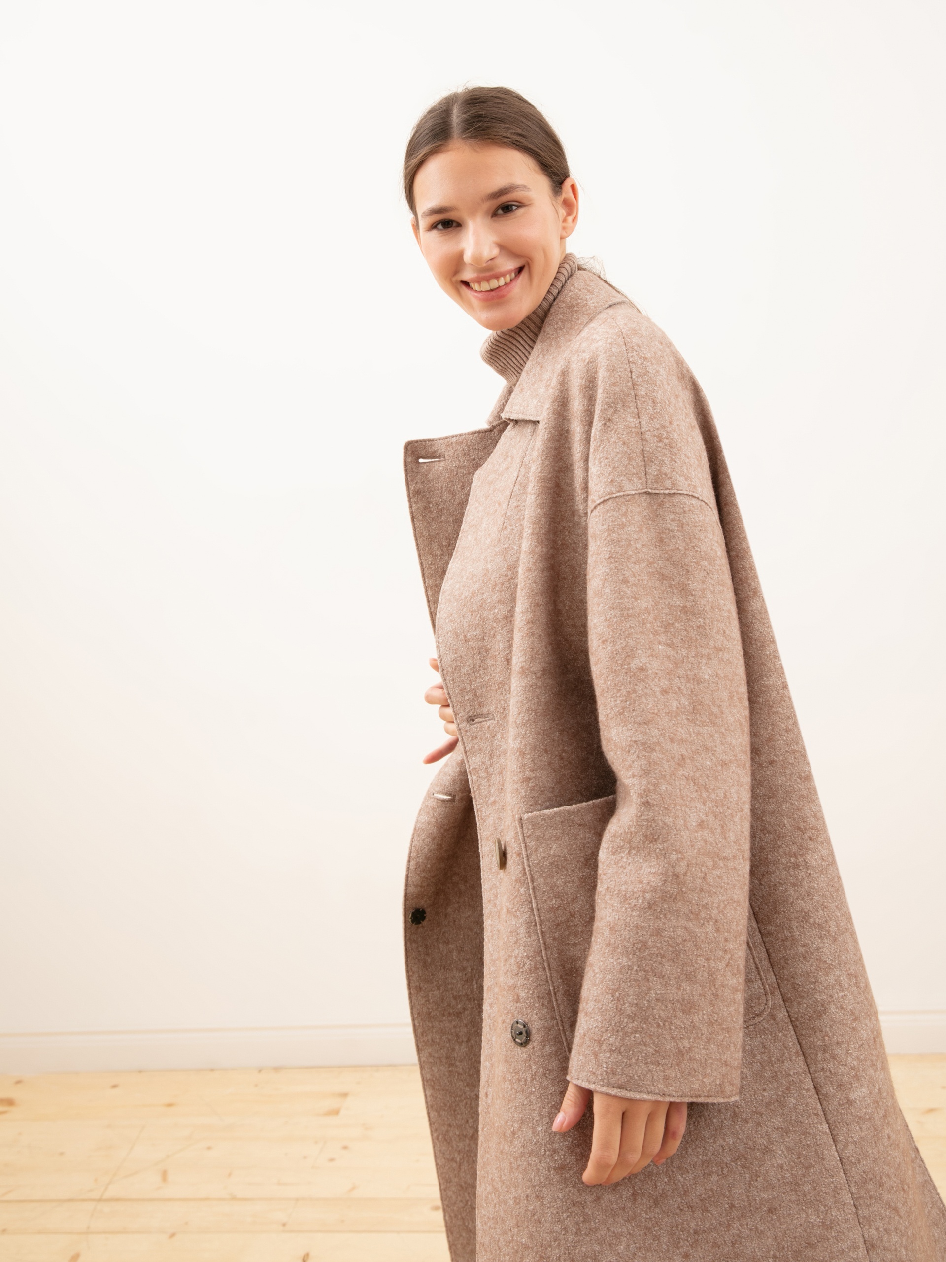 Стильное городское пальто из вареной шерсти оттенка «капучино». Выполнено с технологией Raft Pro.