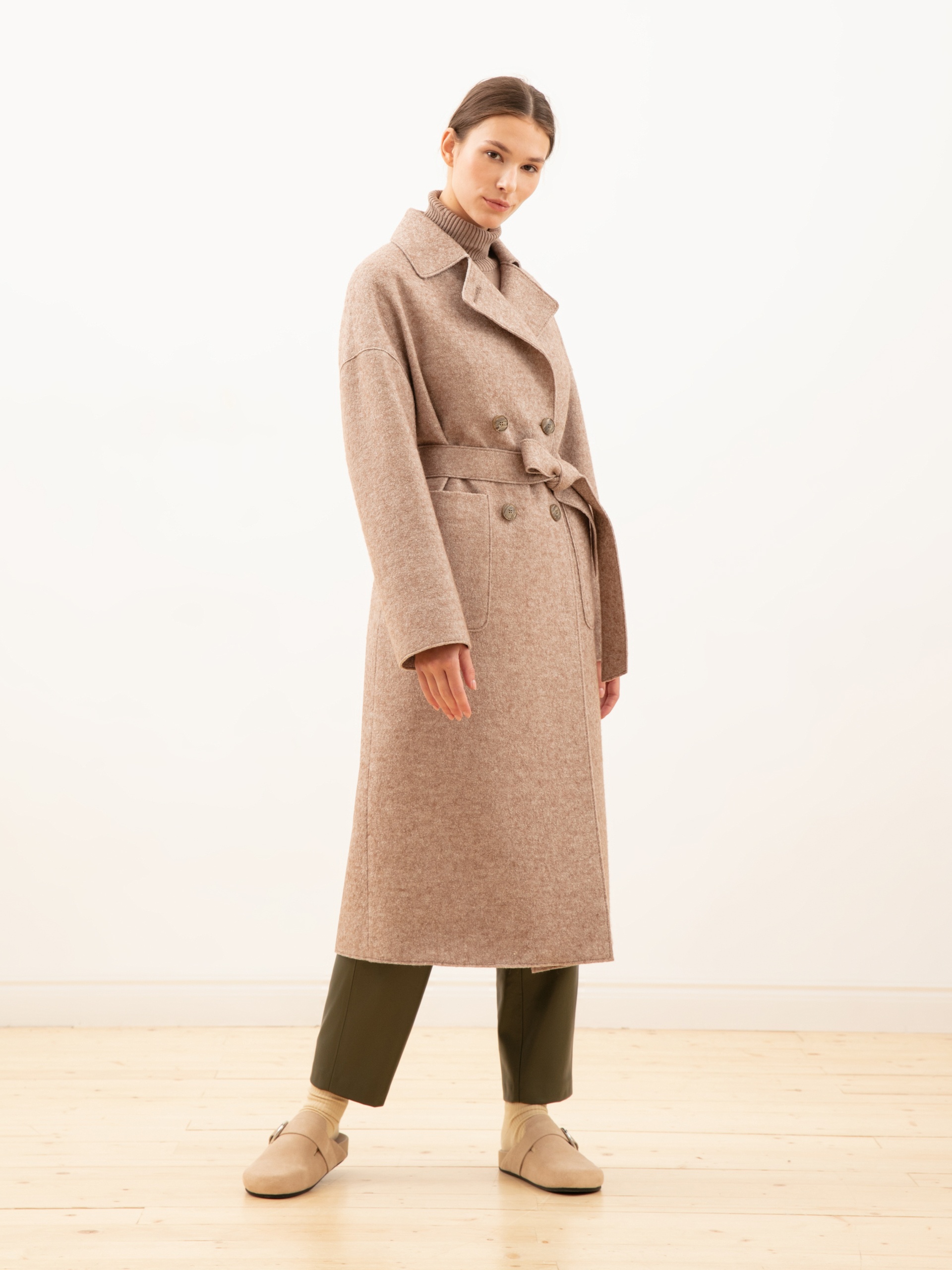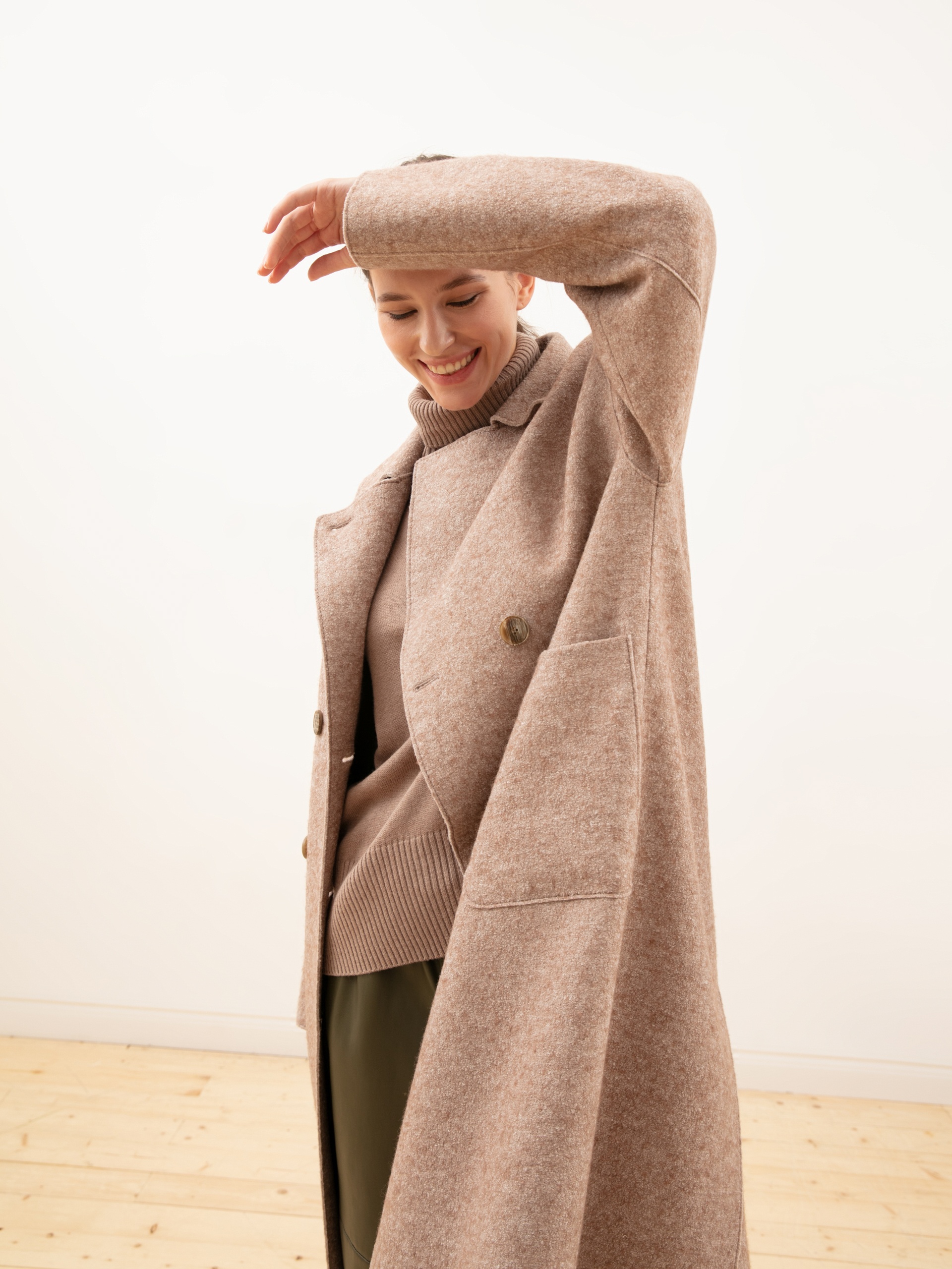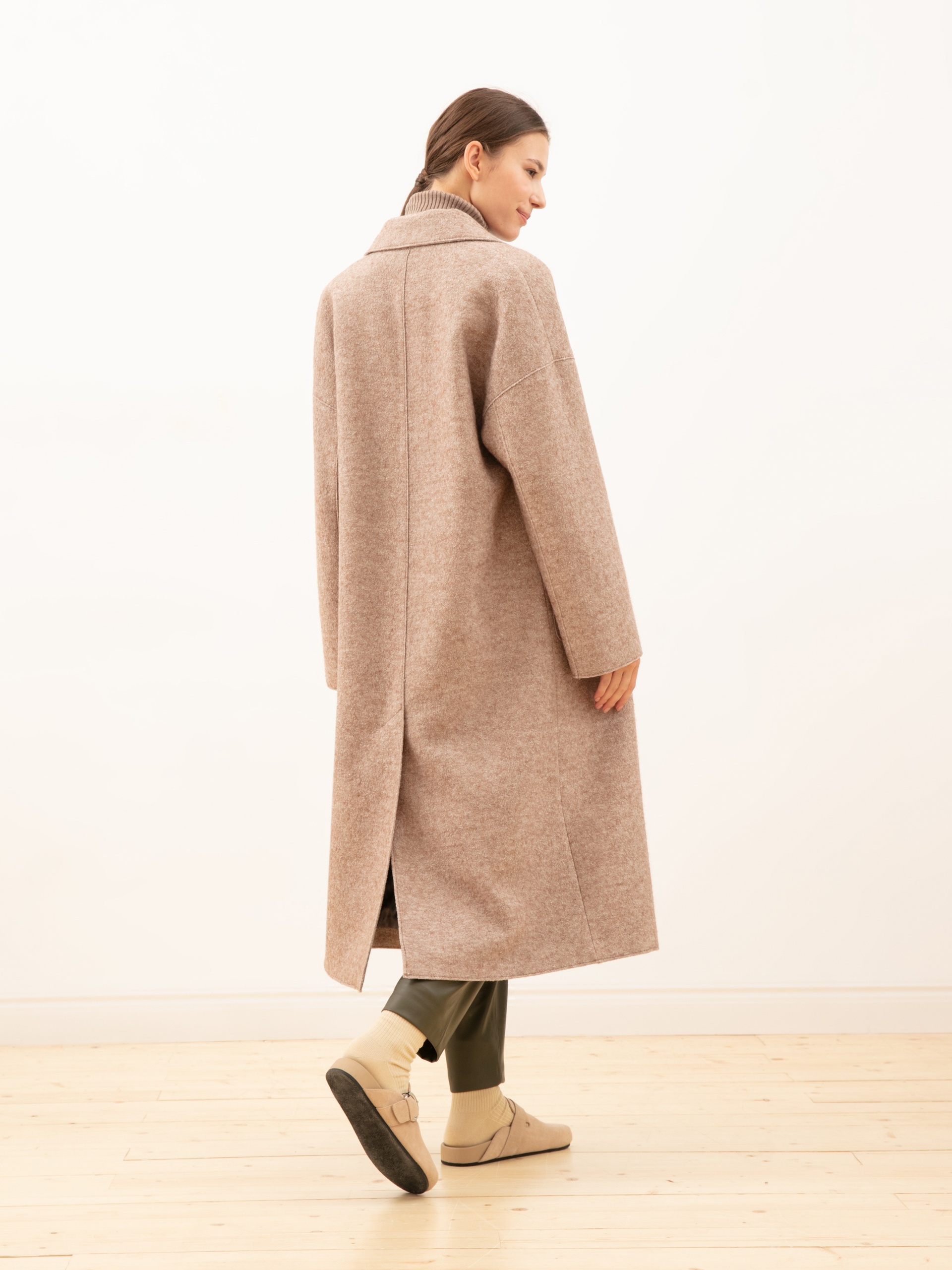 Стильное городское пальто из вареной шерсти оттенка «капучино». Выполнено с технологией Raft Pro.