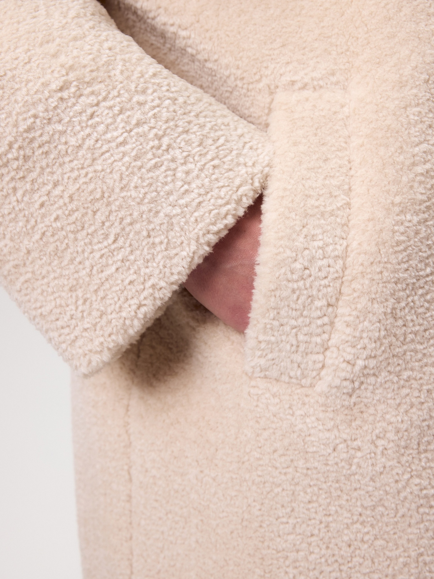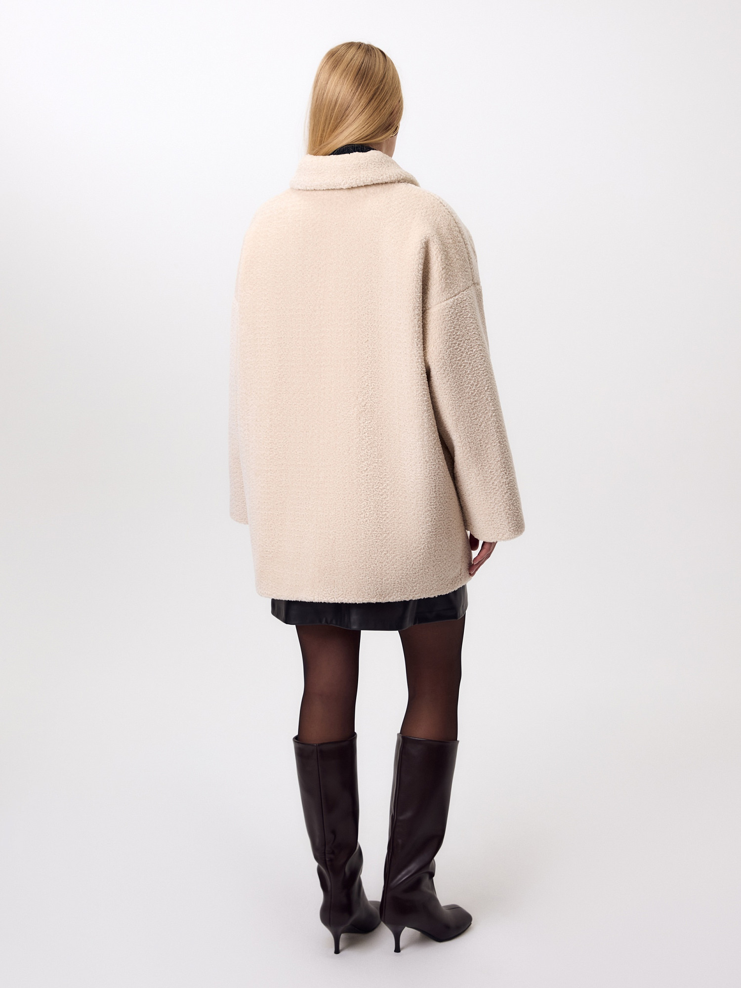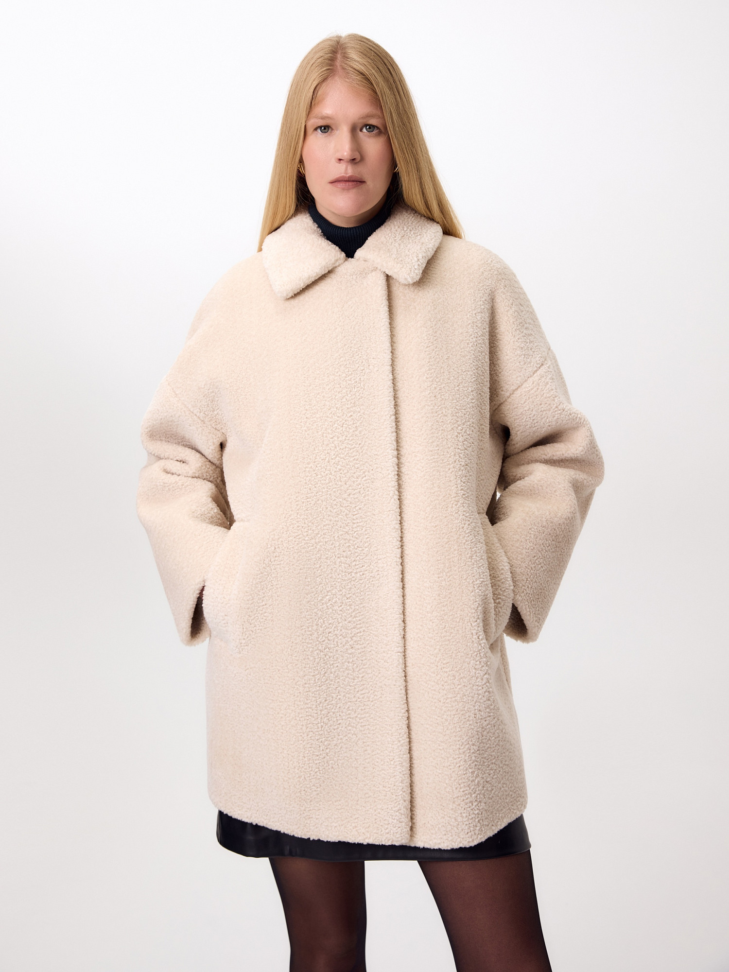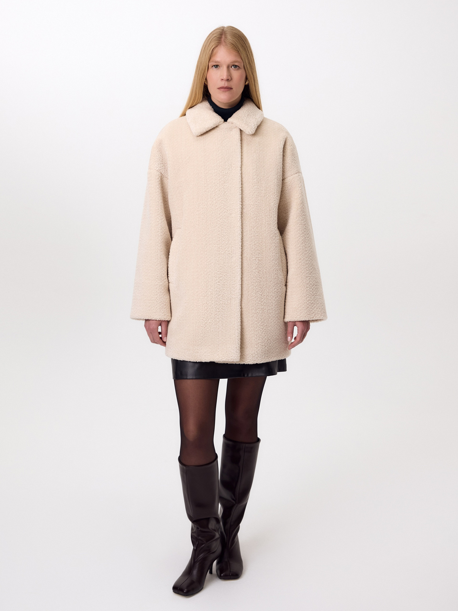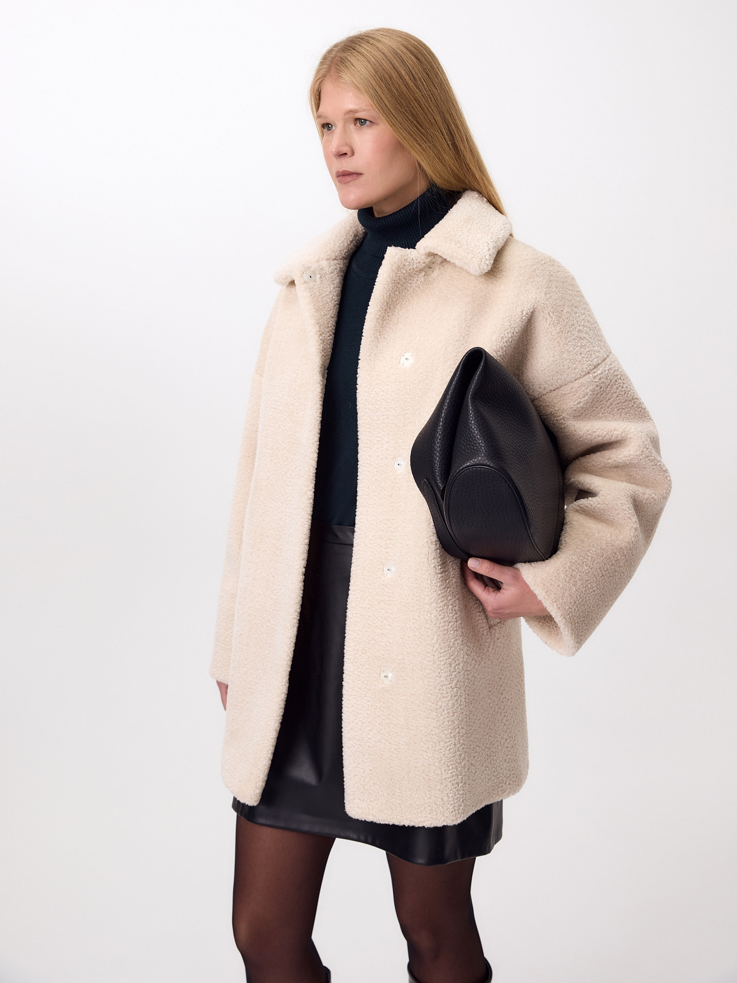 Короткая шуба из искусственного меха актуального молочного цвета. Прямой силуэт, отложной воротник, карманы по бокам и слегка спущенная линия плеча. Застежка на кнопки. Шуба выполнена из легкого и мягкого искусственного меха с плотным ворсом, что делает ее еще теплее, а в сочетании с утеплителем DuPont Sorona ей нет равных. К тому же плотный и густой мех долго служит. Благодаря стилю рубашки, шуба хорошо подходит для современных и стильных образов, её легко вписать в базовый гардероб. Длина шубы делает ее универсальной: ее можно носить и с джинсами, и с платьями, с высокими сапогами и ботинками в спортивном стиле. Еще одним преимуществом является мембрана, которая используется в процессе производства: мембрана защищает от ветра и влаги, а также от перепада температур, поэтому в шубе легко и удобно передвигаться в транспорте и водить машину.