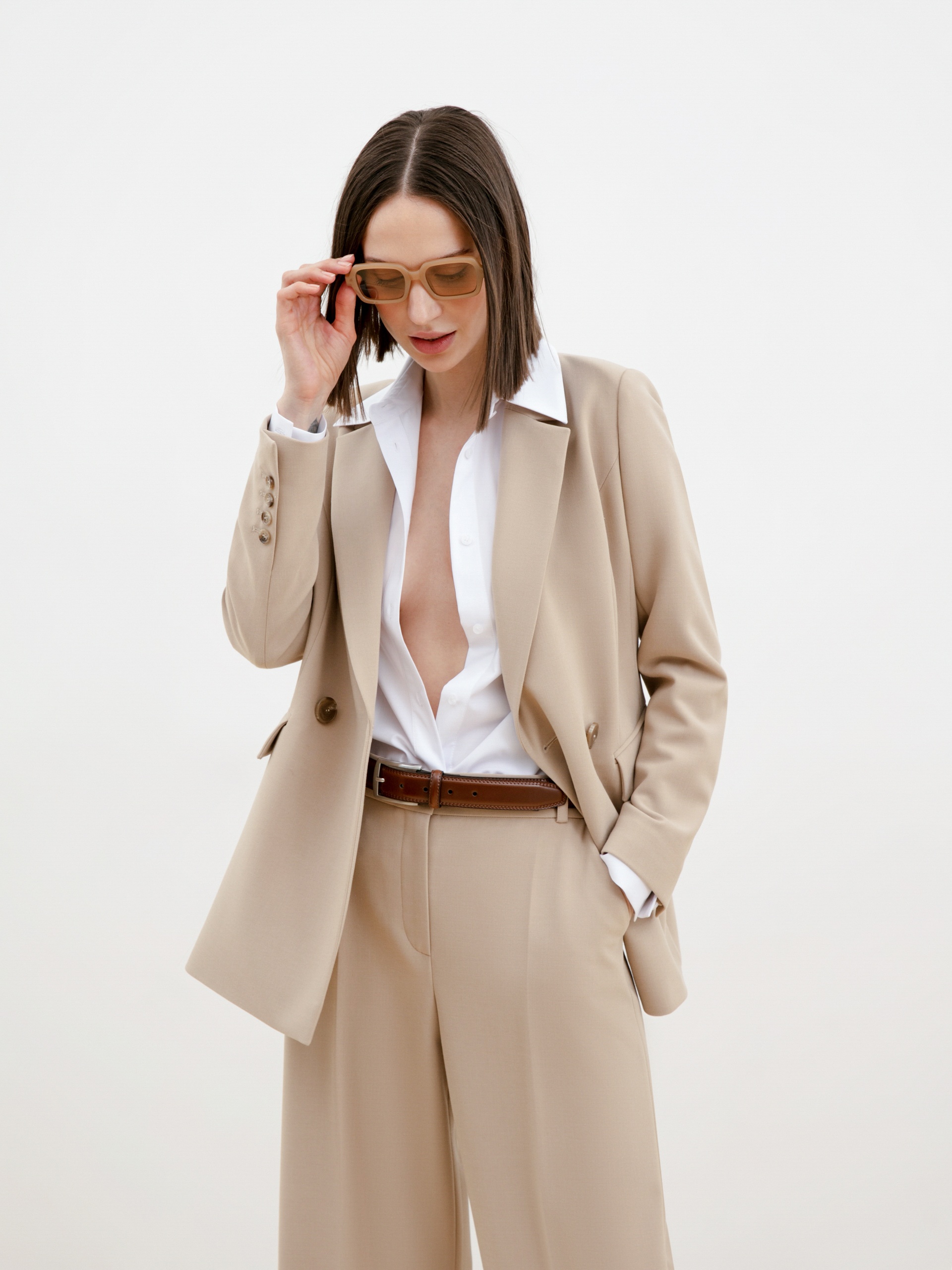 Пиджак женский бежевый двубортный