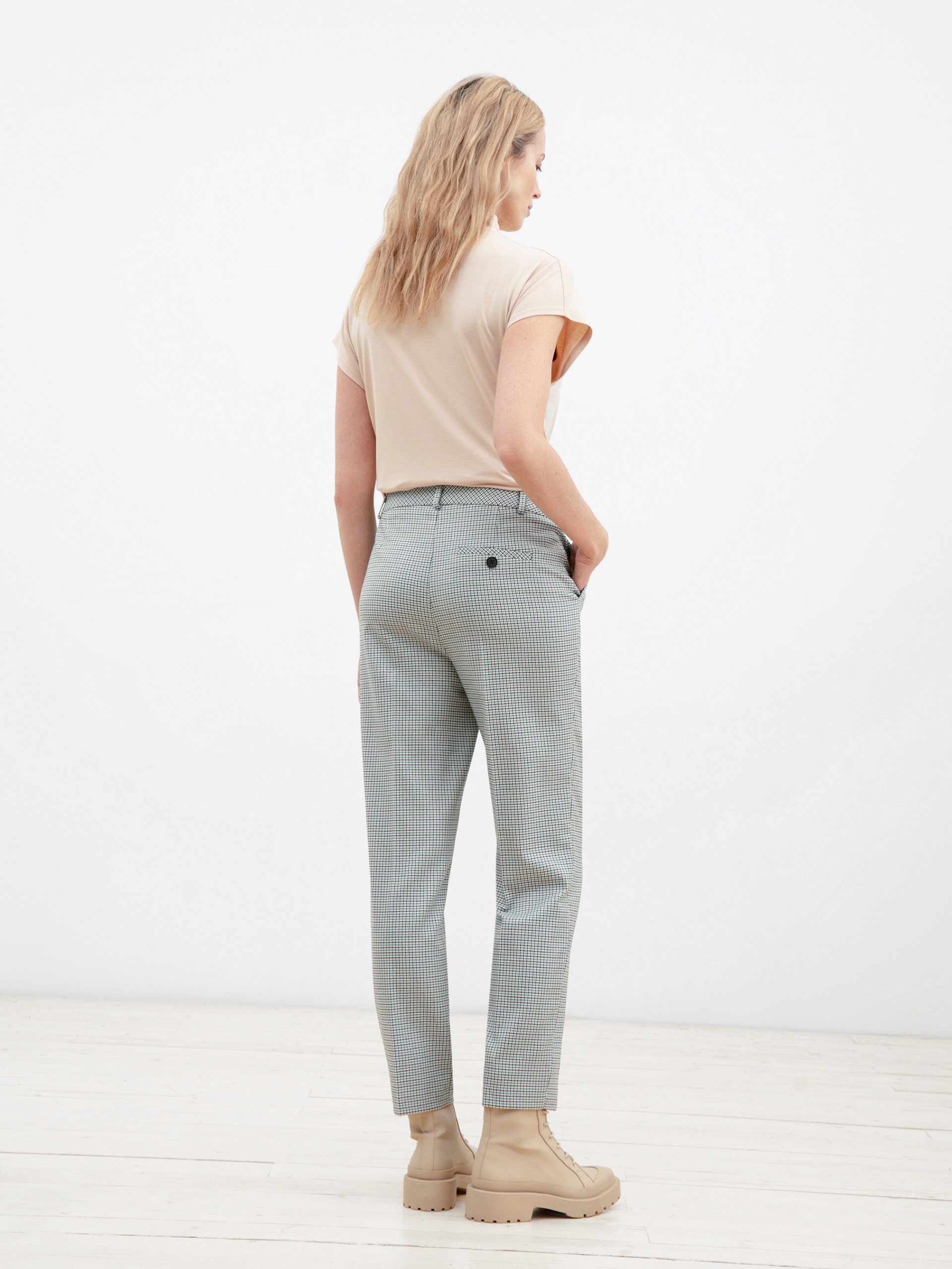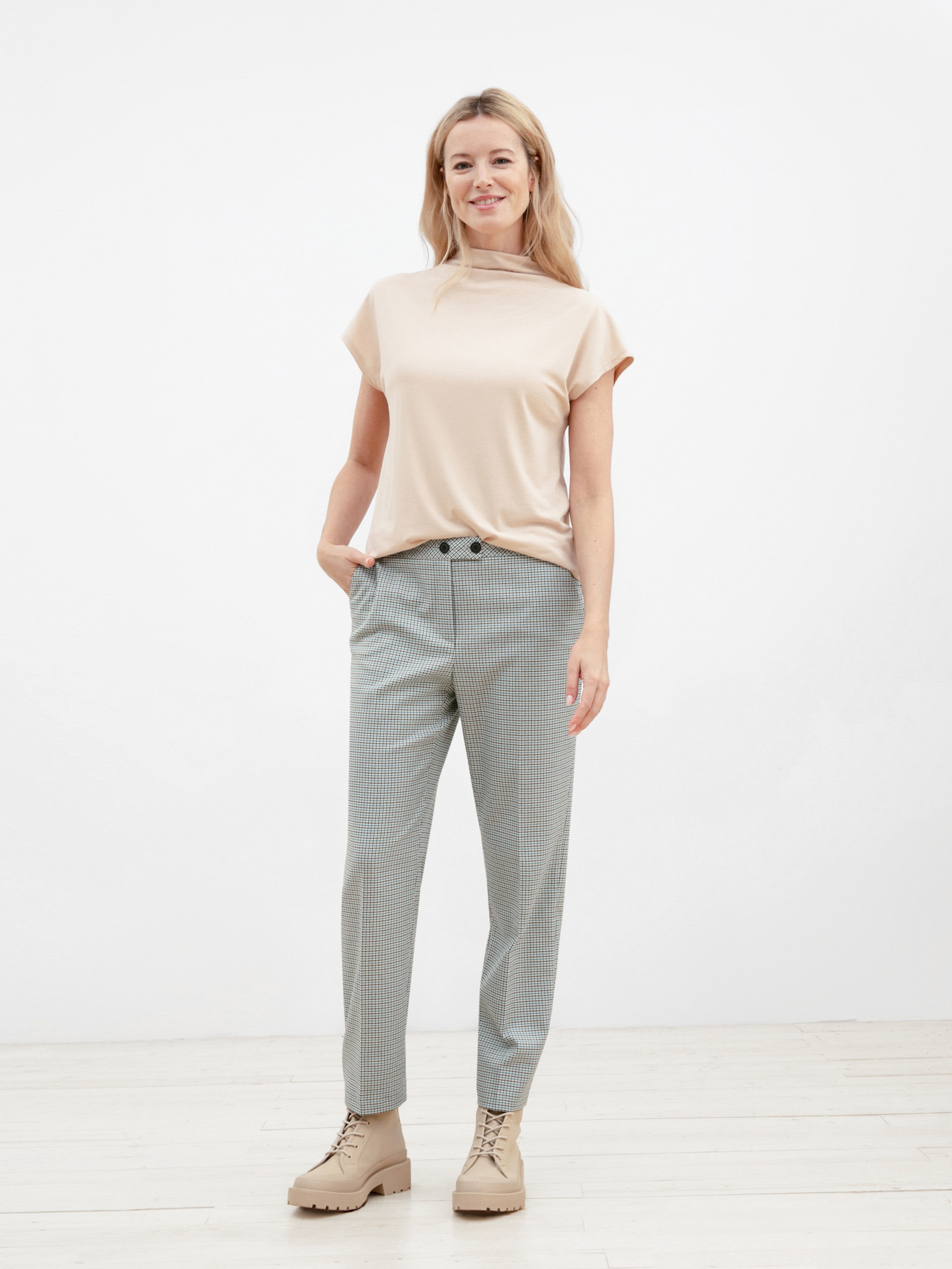 Модные брюки прямого силуэта слегка зауженные к низу на притачном поясе. Длина 7/8. Застежка спереди на молнию. Карманы рабочие в боковых швах.