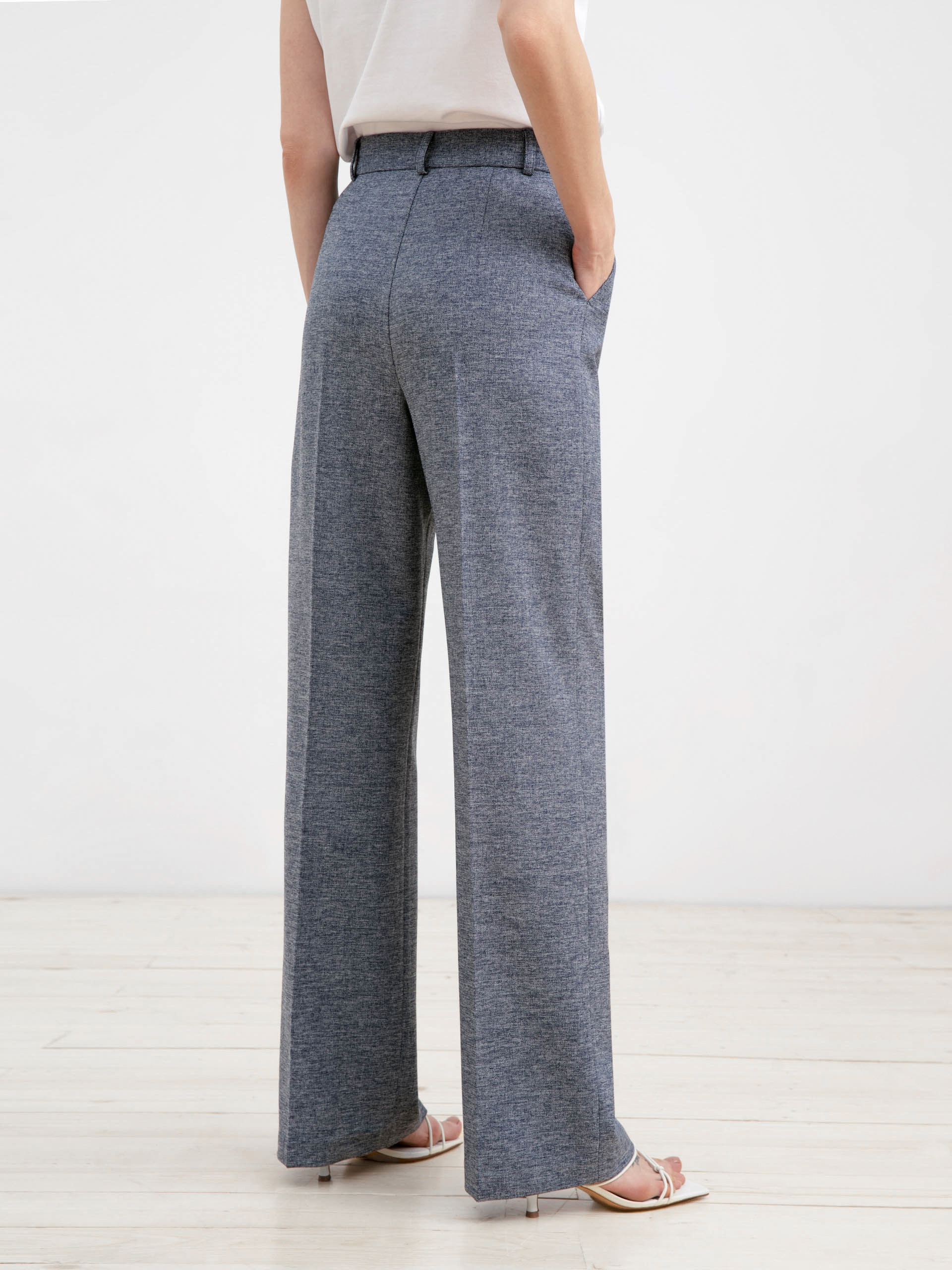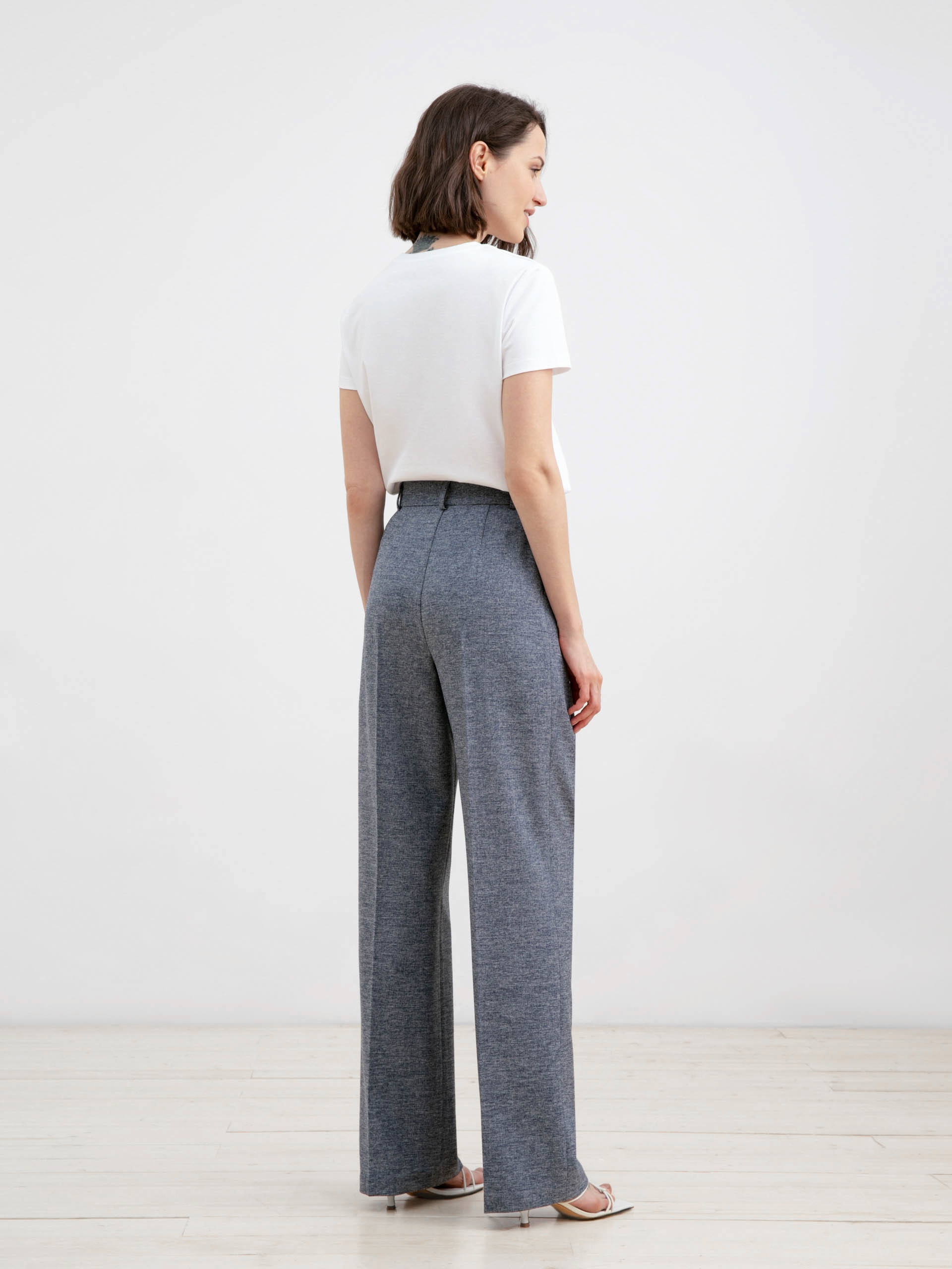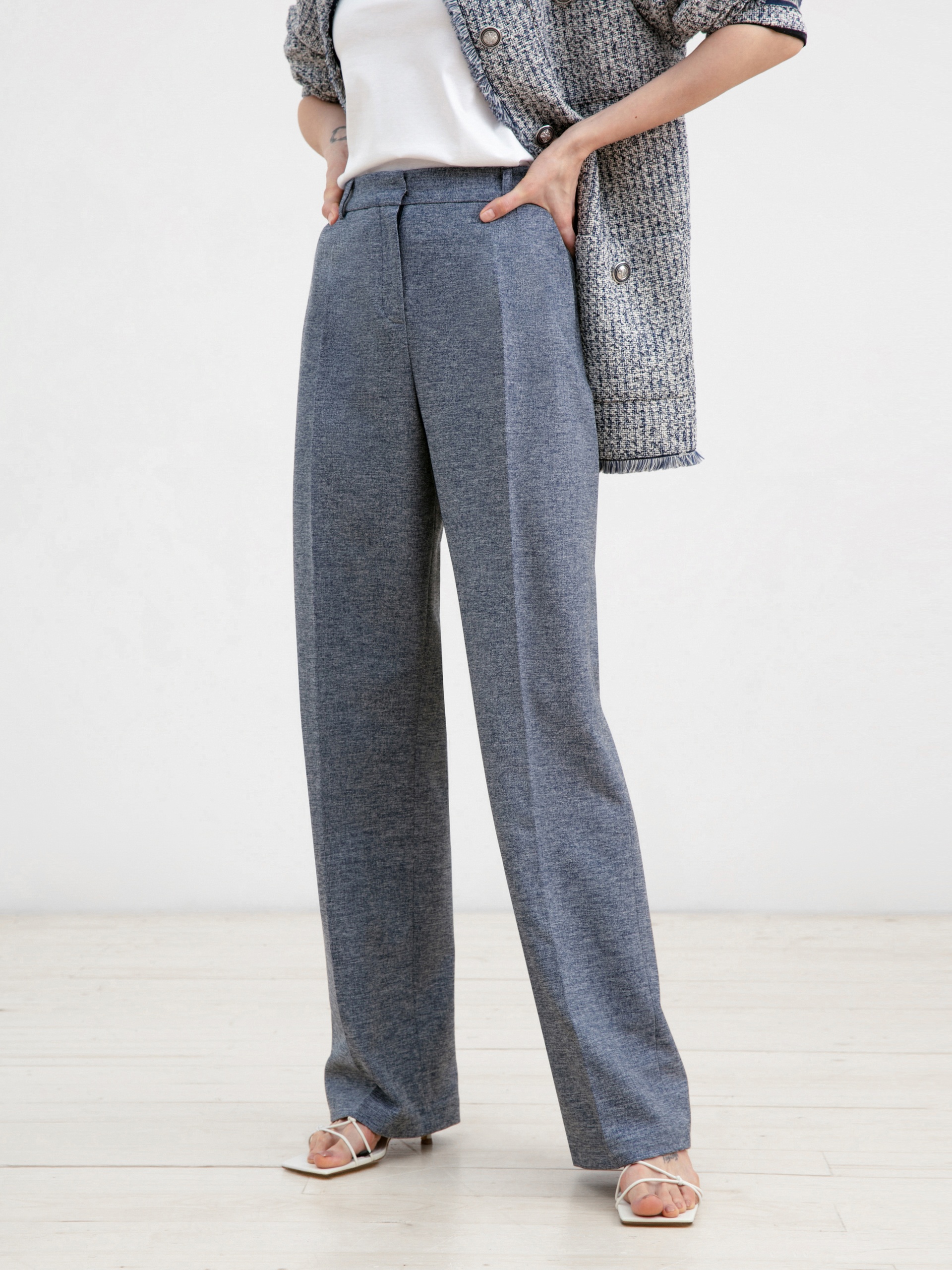 Элегантные брюки со стрелками прямого силуэта с притачным поясом на талии и резинкой на спинке для лучшей посадки. Застежка спереди на молнию. Карманы рабочие в боковых швах. Незаменимая вещь для создания расслабленных городских образов.