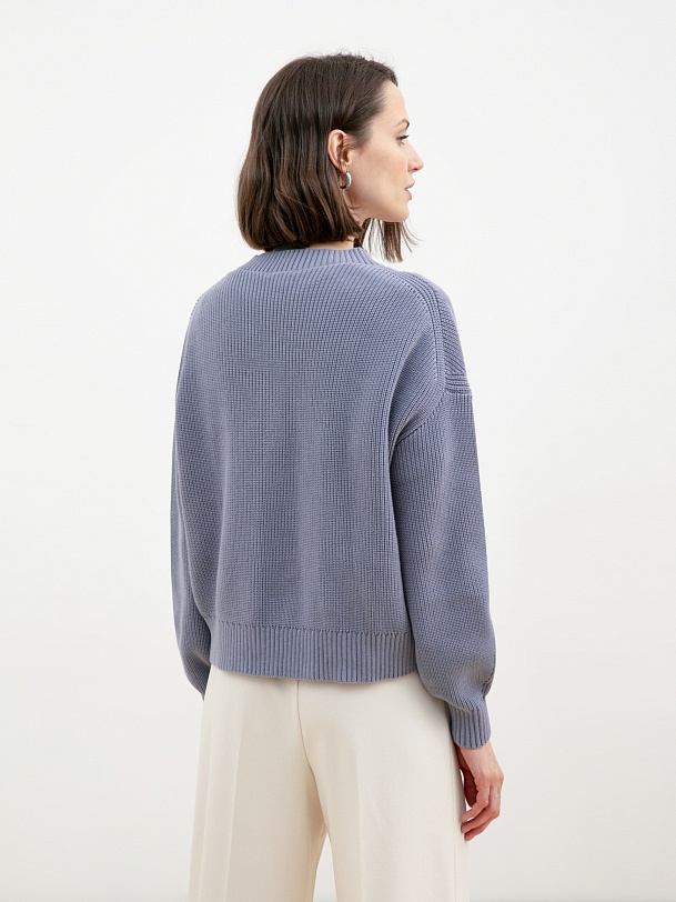 Мягкий и уютный трикотажный джемпер из 100% хлопка прямого силуэта с V-образным вырезом горловины и рукавом реглан. Идеальная модель для создания теплых образов на каждый день.