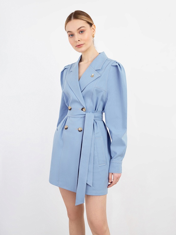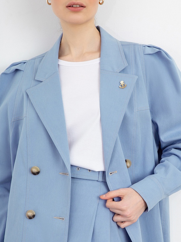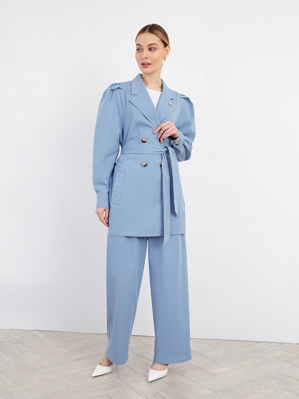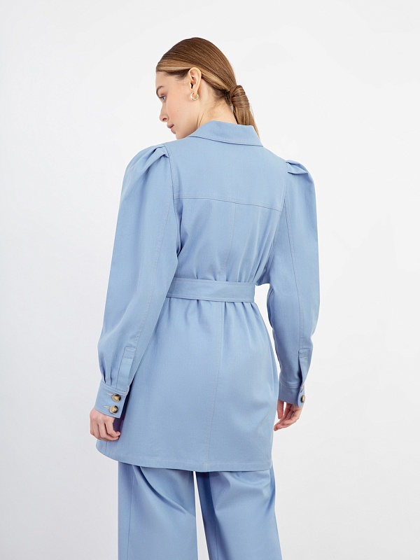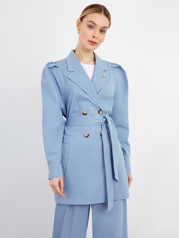 Жакет голубой женский удлиненный с поясом