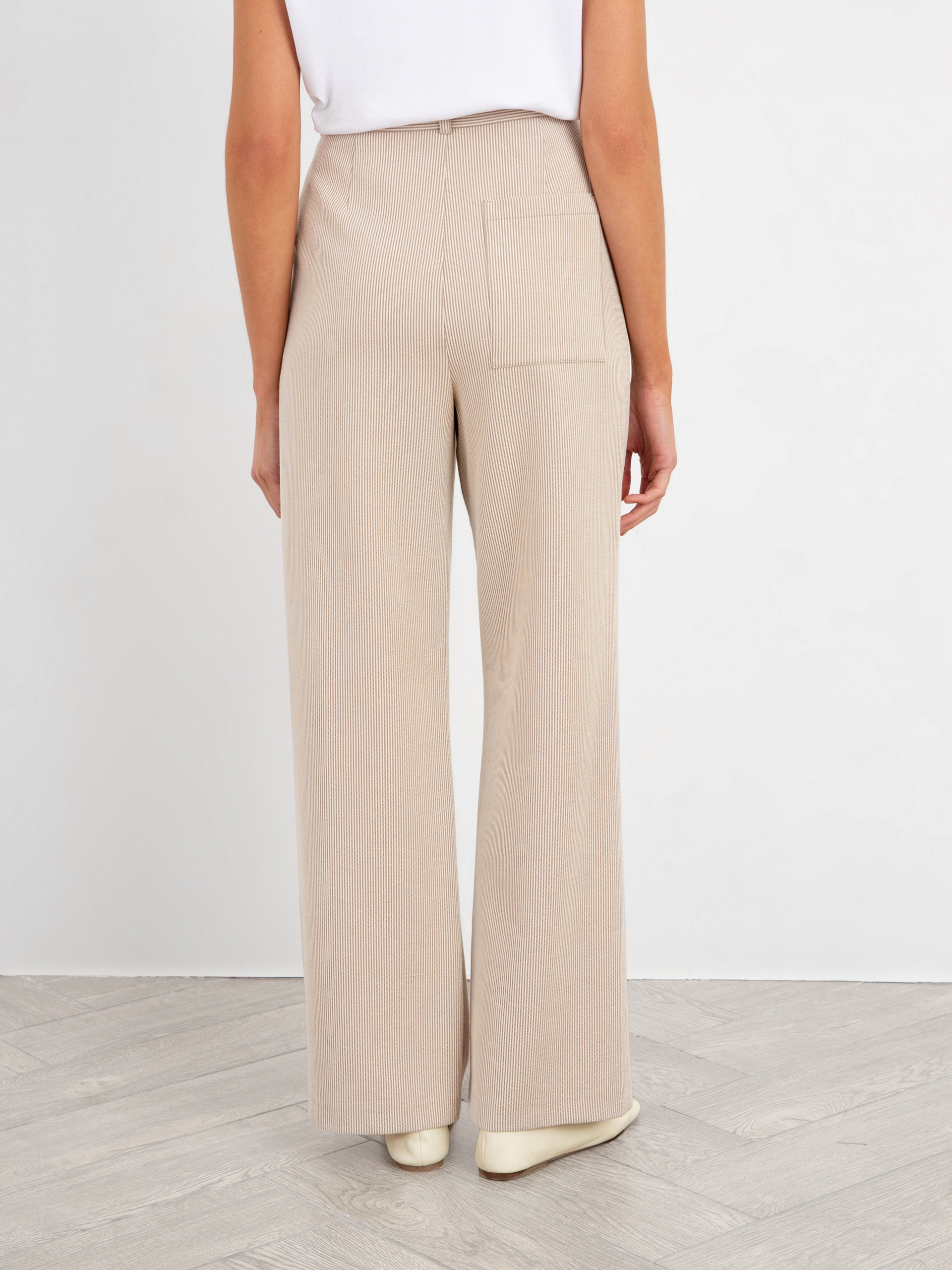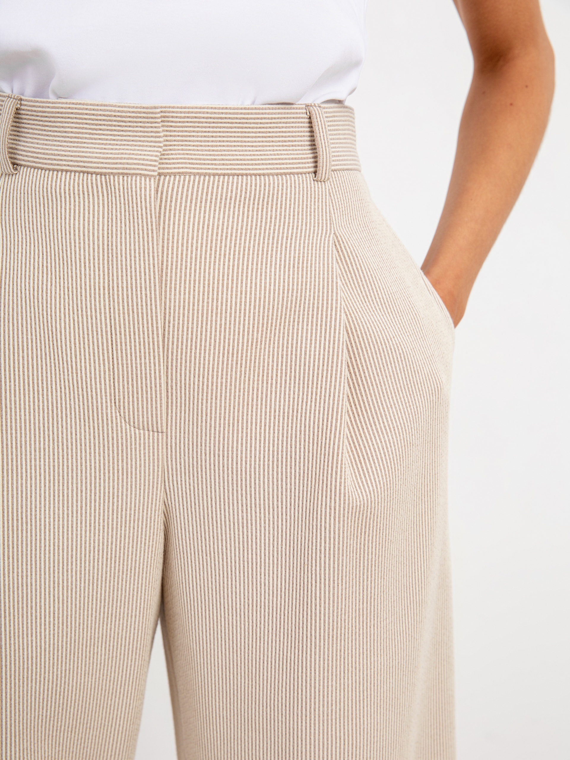 Стильные свободные брюки с завышенной талией из фактурной ткани со складками. Идеальный выбор для летней прогулки. Для создания гармоничного образа сочетайте с жакетом из этой же ткани.