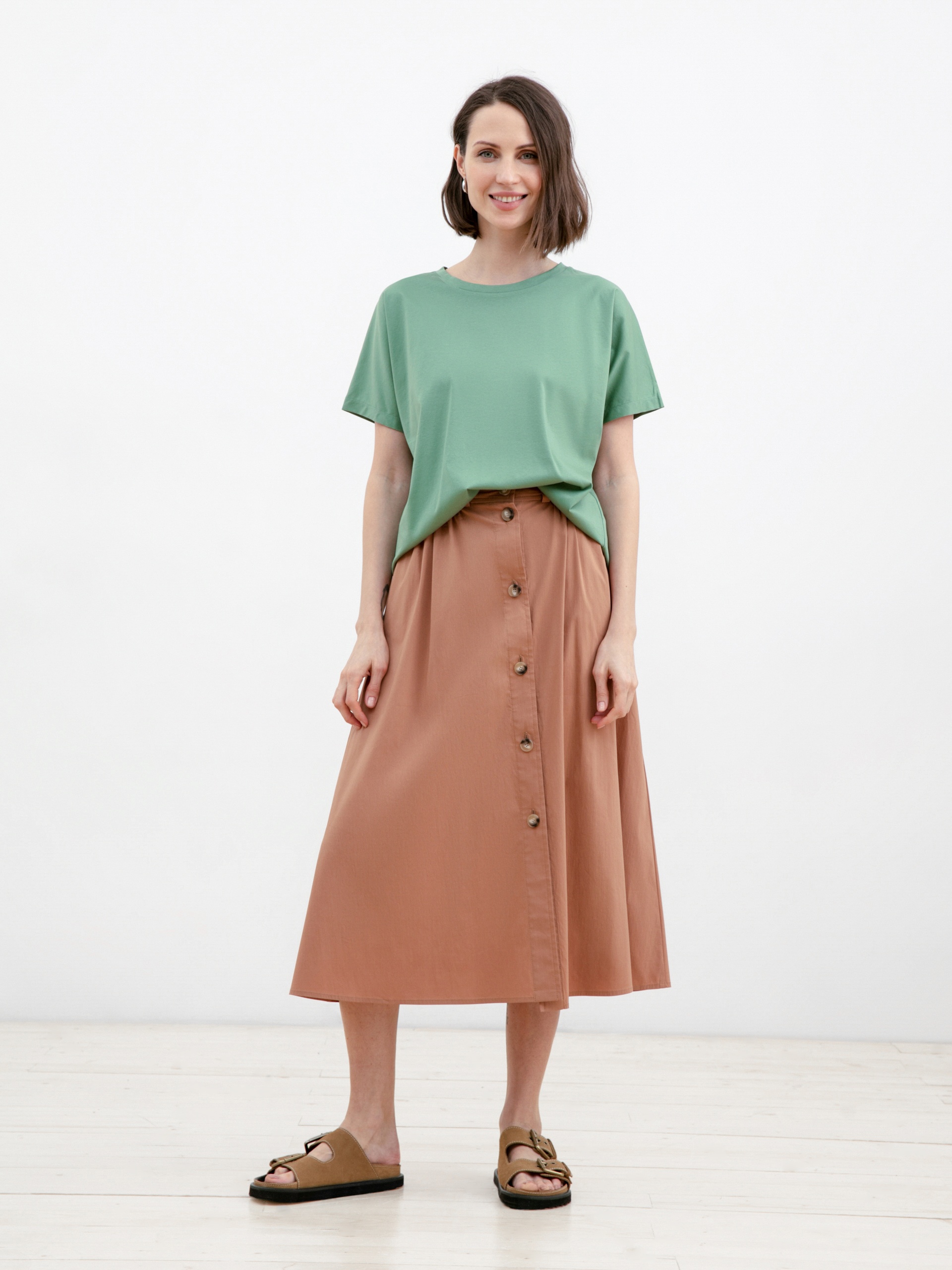 Футболка оверсайз базовая зеленая из 100% мерсеризованного хлопка