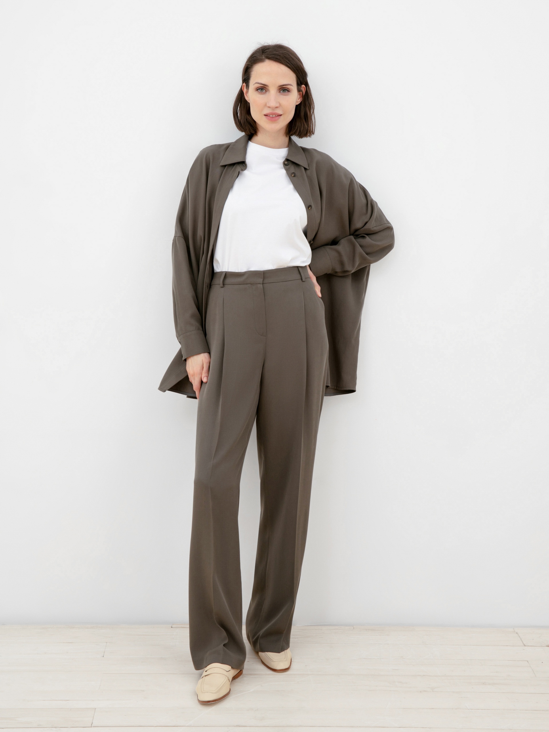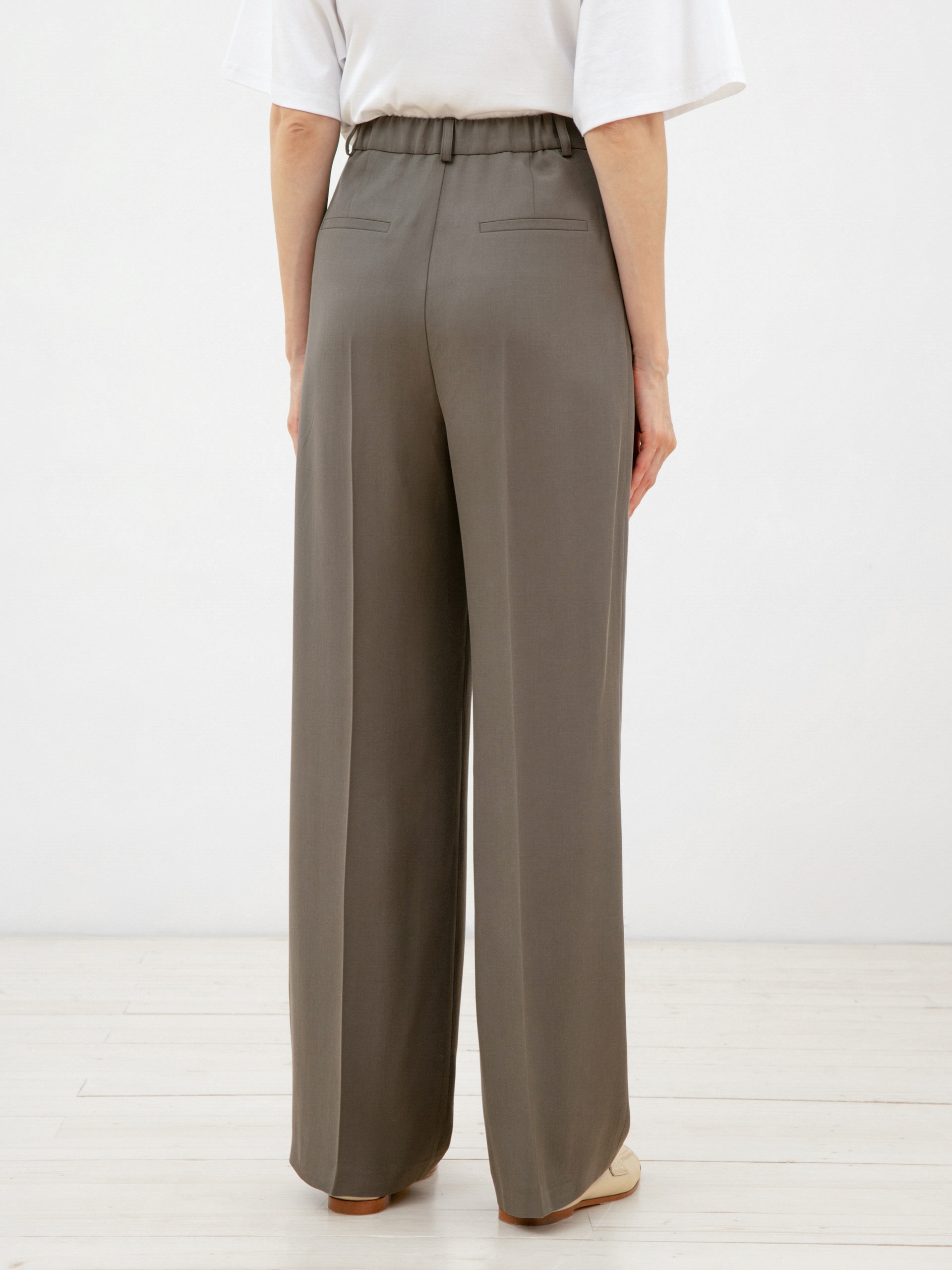Брюки женские прямого силуэта цвета хаки. С частичной резинкой на поясе для наилучшей посадки. Полной длины. Изготовлены из 100% тенселя.