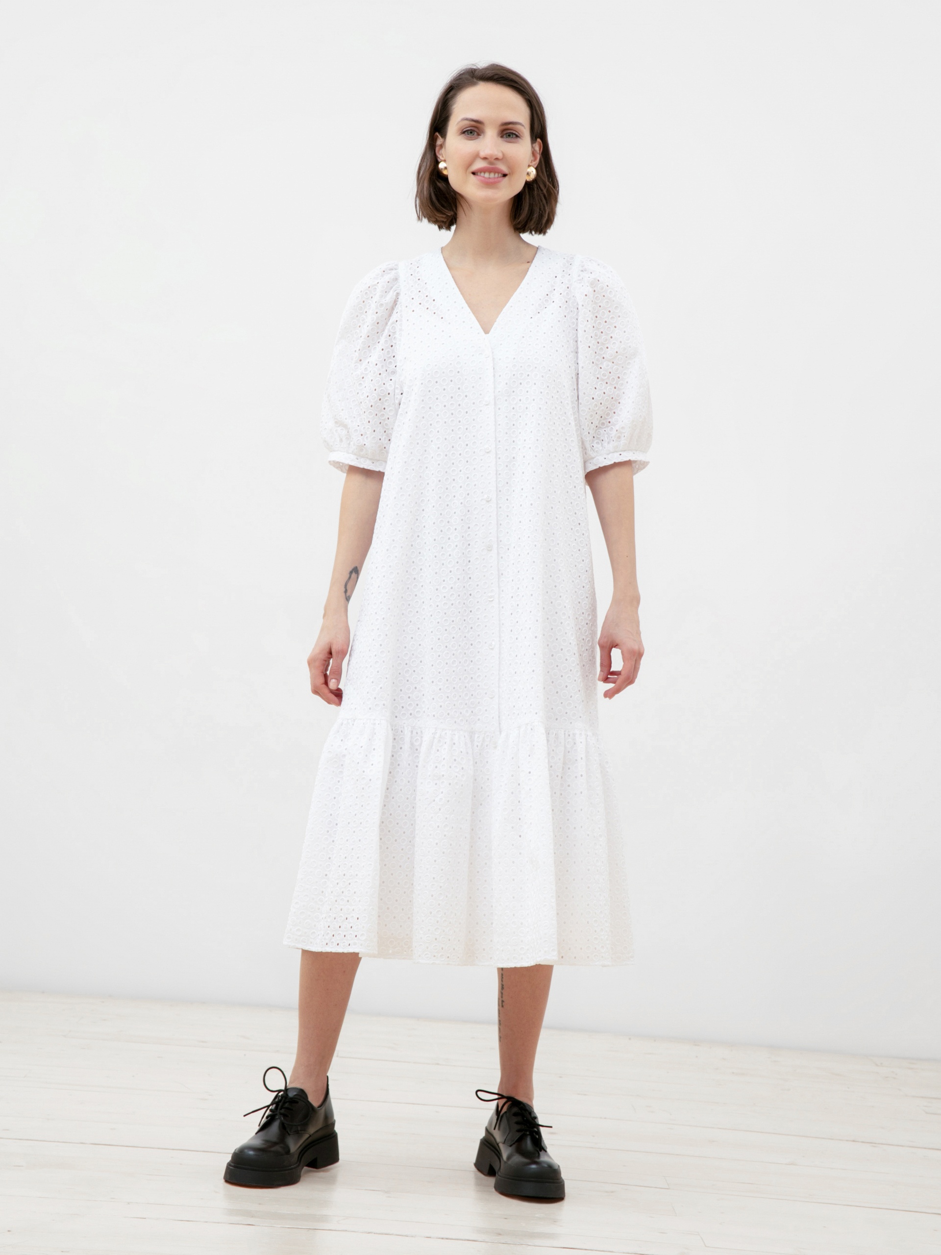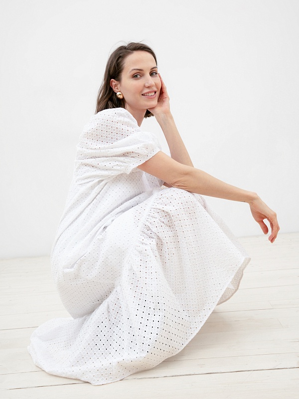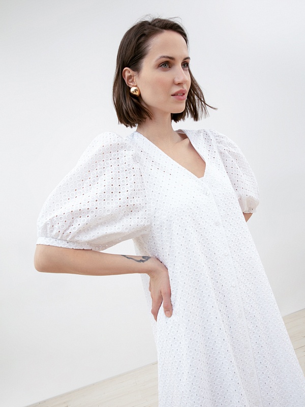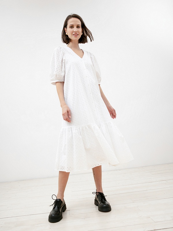 Белое летнее платье из хлопка