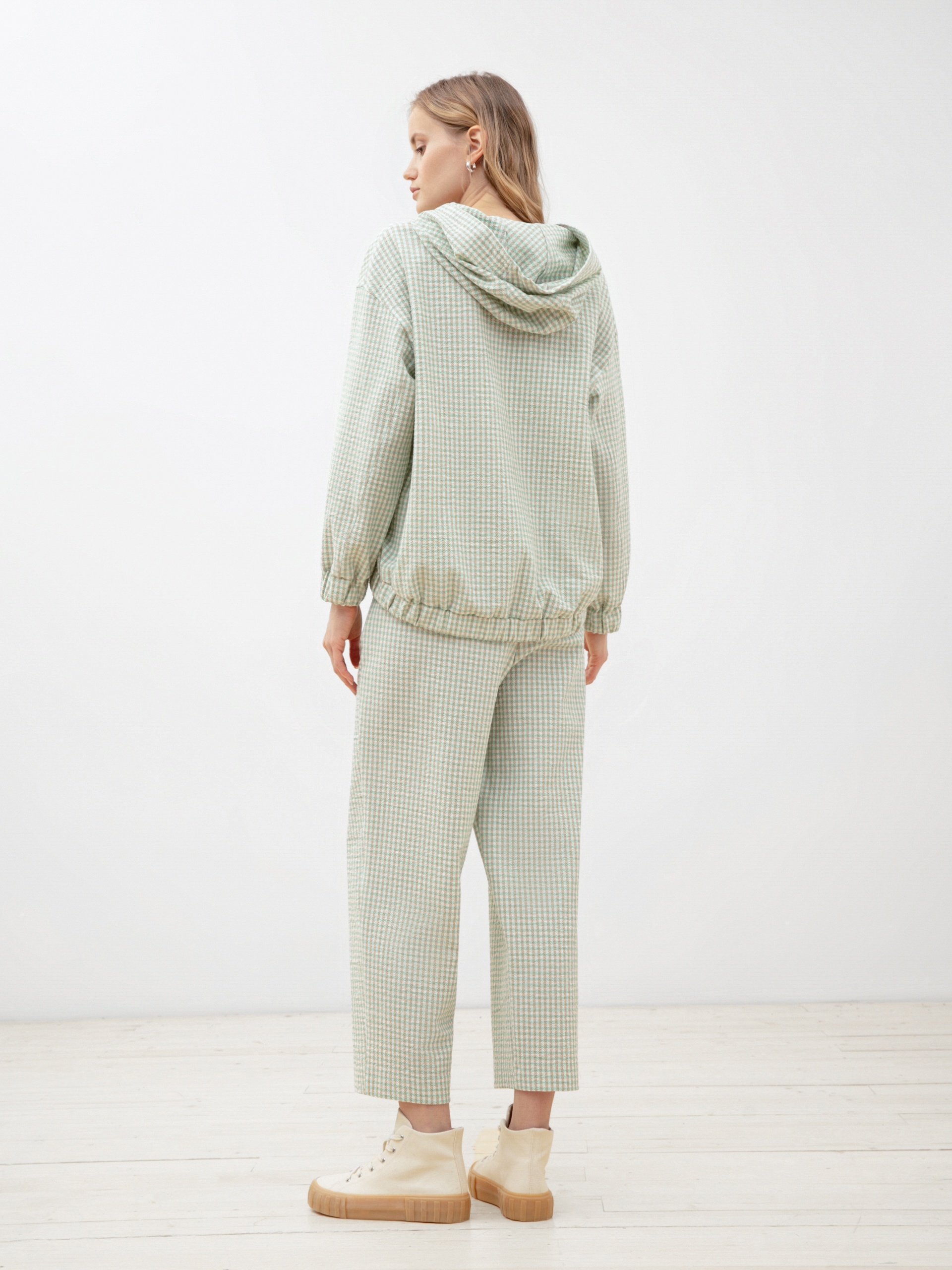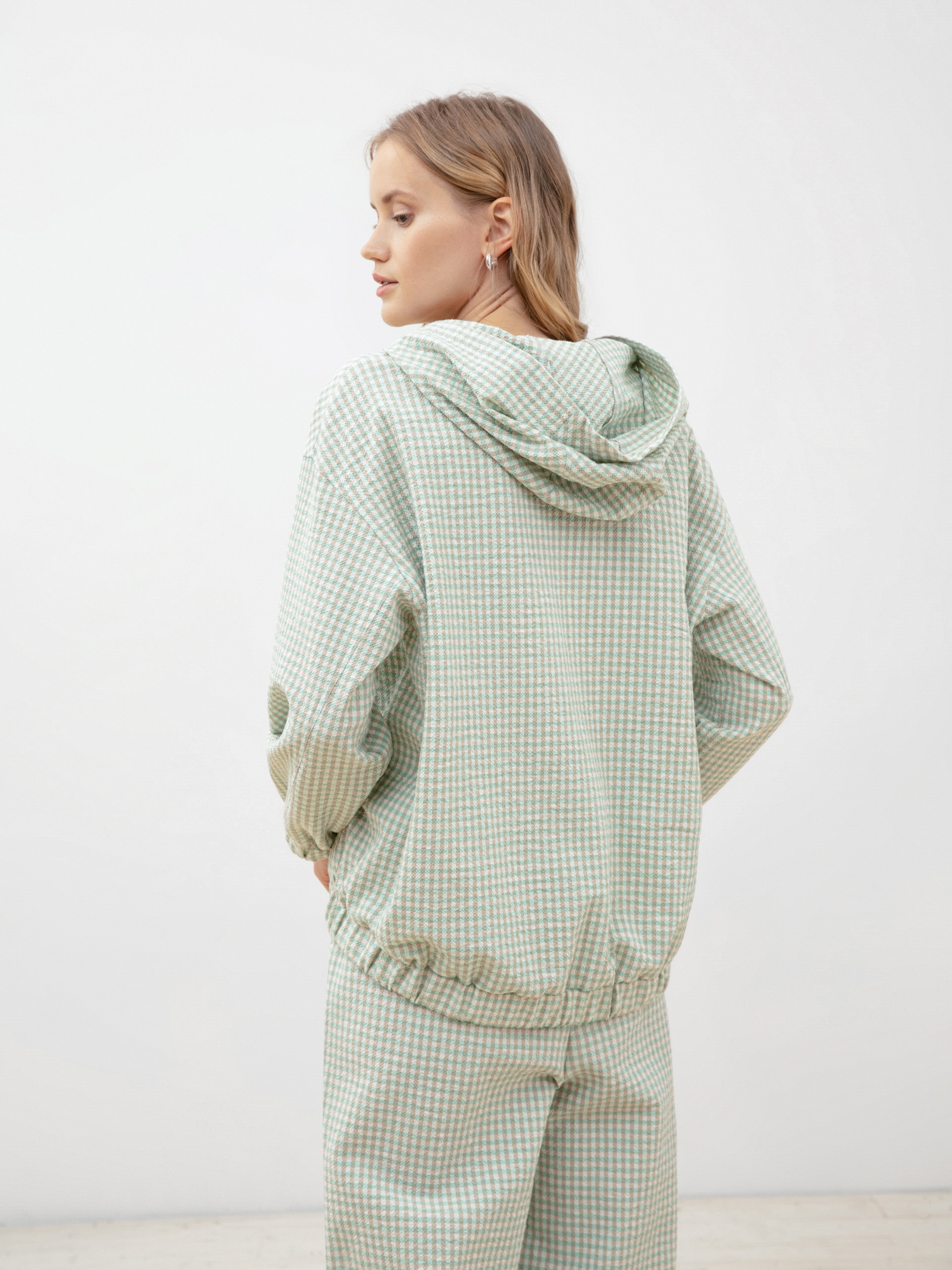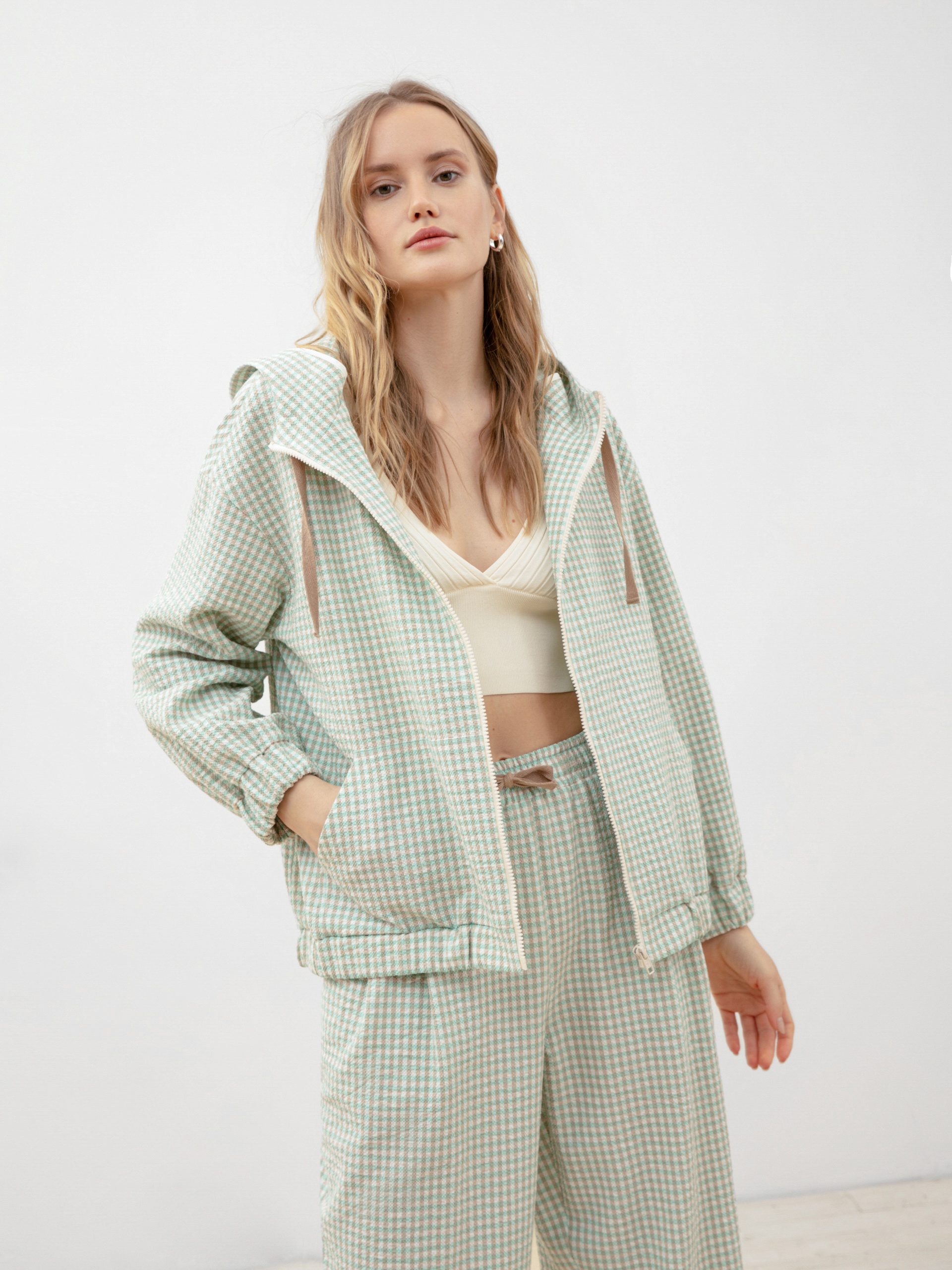 Весенний жакет в стиле спорт-шик из хлопковой ткани прямого силуэта. Застегивается на молнию. В поддержку к стилю присутствует функциональный капюшон. По низу рукава и изделия присутствует резинка. С такой вещью будет сочетаться невероятное количество образов, которым даннный жакет придаст легкости и весеннего настроения.