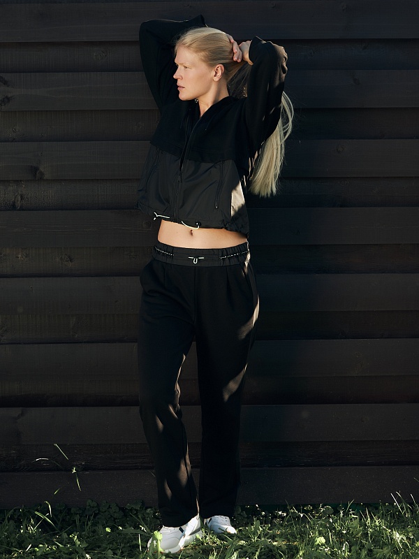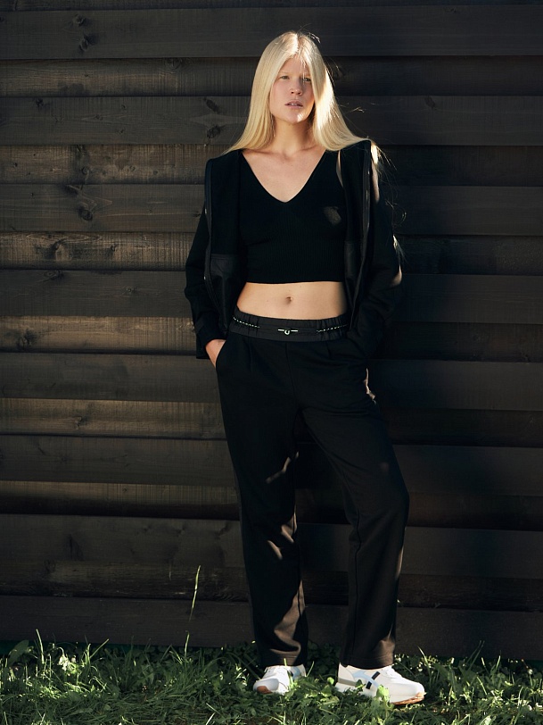 Спортивные брюки из хлопка, для комфорта дополнены гибким поясом с удобной резинкой, а также регулируемыми застежками для ног.