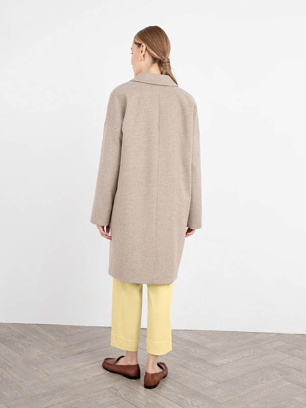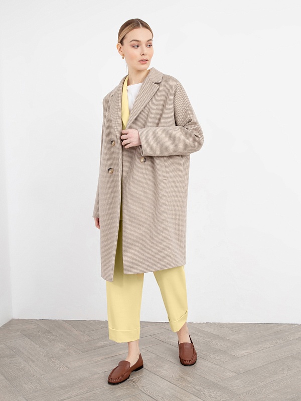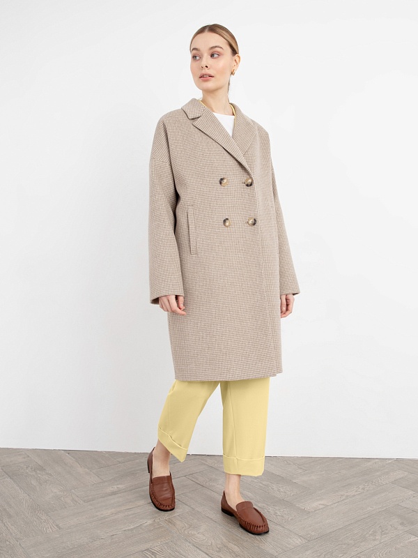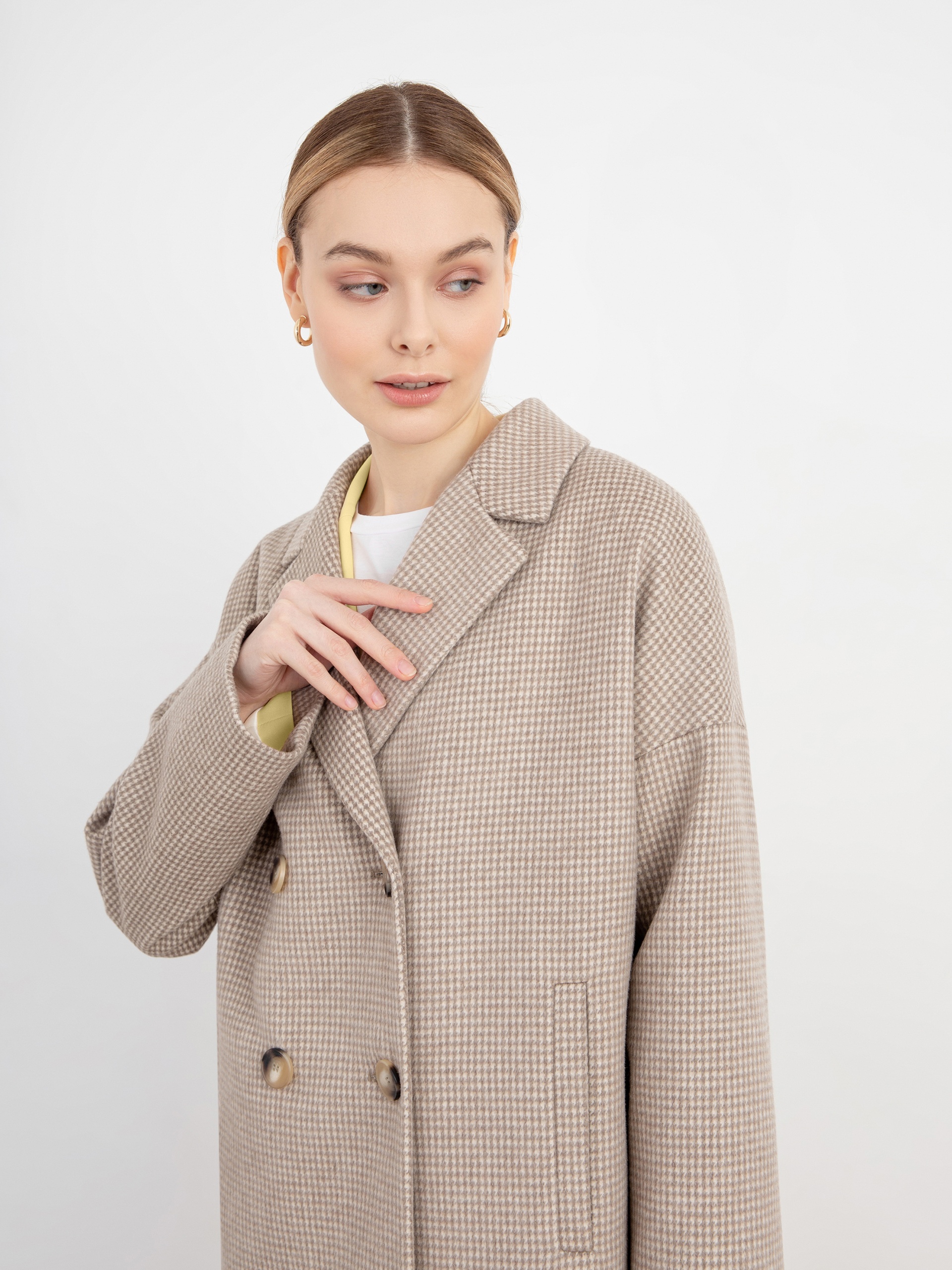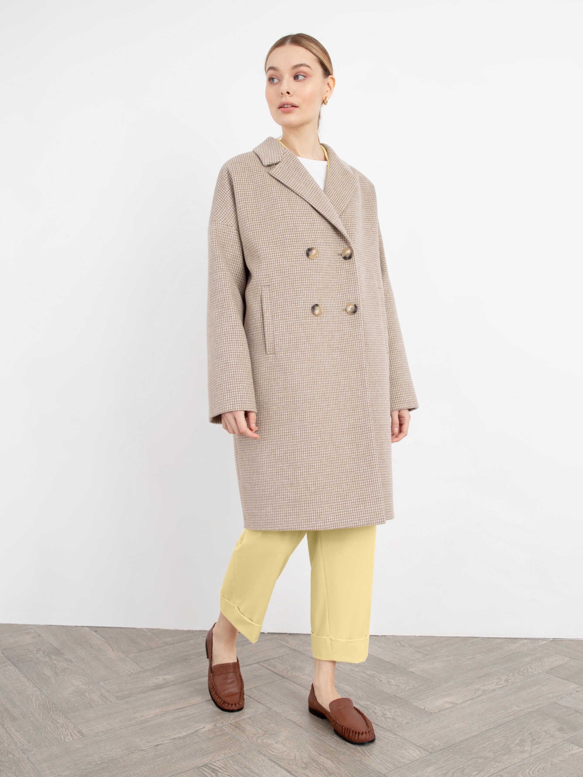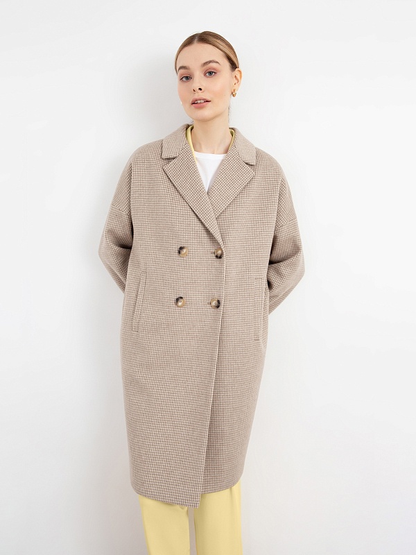 Двубортное пальто-кокон бежево-коричневого цвета - универсальная вещь для любого гардероба. Удобно носить вместе с жакетами.Особенности: