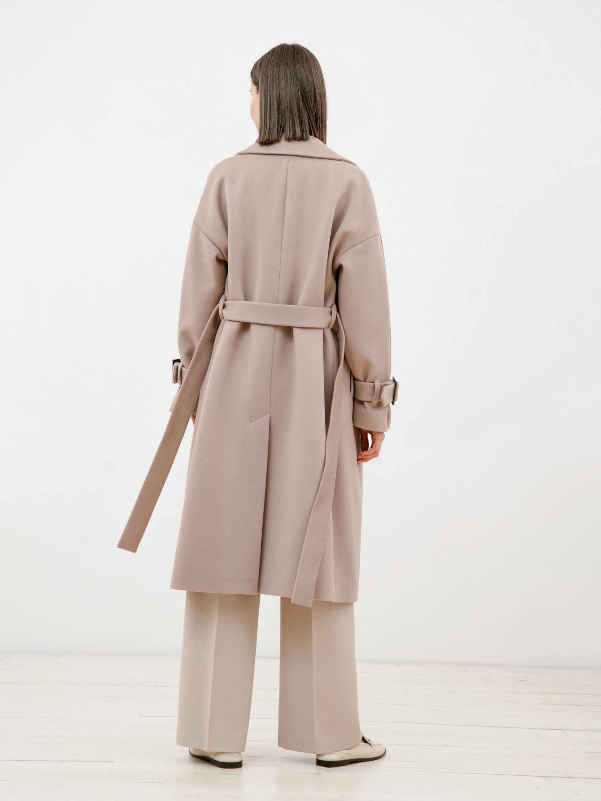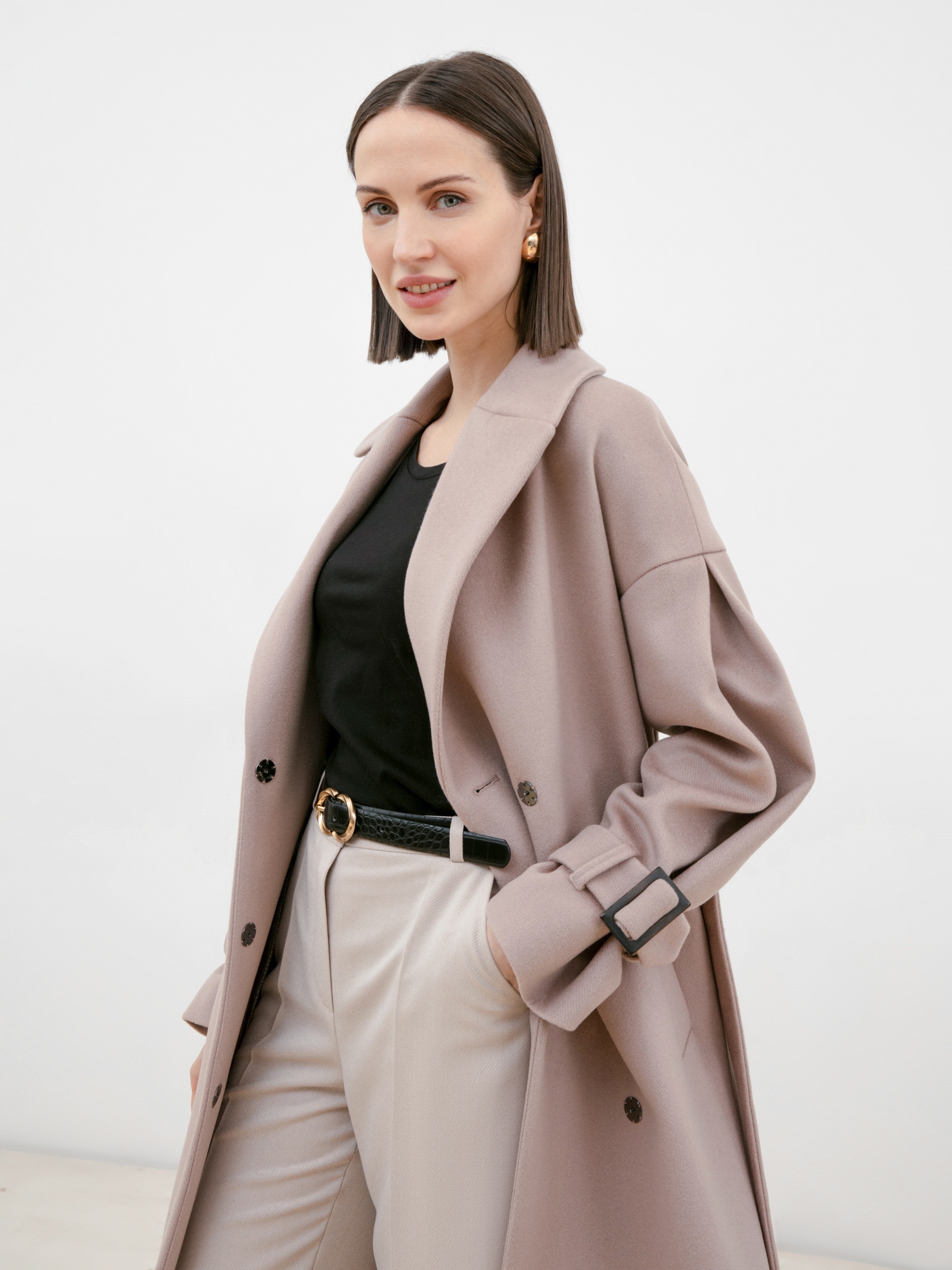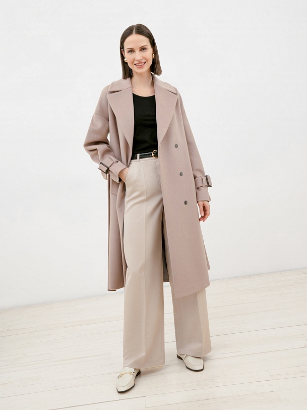 Пальто прямого силуэта из премиальной шерстяной ткани роскошного серо-розового цвета с ворсом twill. Длина пальто ниже колена, что позволяет комбинировать его с множеством различных образов и с самыми разными длинами брюк и юбок. Рукав рубашечный, со спущеной линией плеча и декоративной встречной складкой. По низу рукава пата, которая застегивается на пряжку и создает дополнительный объем рукава. Широкий английский воротник, глубокие функциональные карманы-листочки, застежка на пришивные кнопи и потайную пуговицу. Все это делает пальто не только стильным, но и комфортным для Вашего использования. Изготовлено с использованием запатентованных технологий в виде высокотехнологичной мембраны Raft-Pro, которая надежно защитит от самого сильного ветра и дождя. Произведено в Санет-Петербурге.