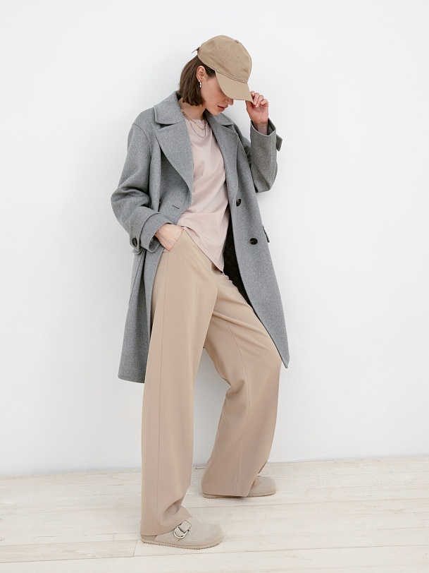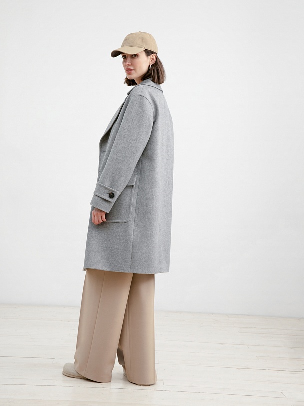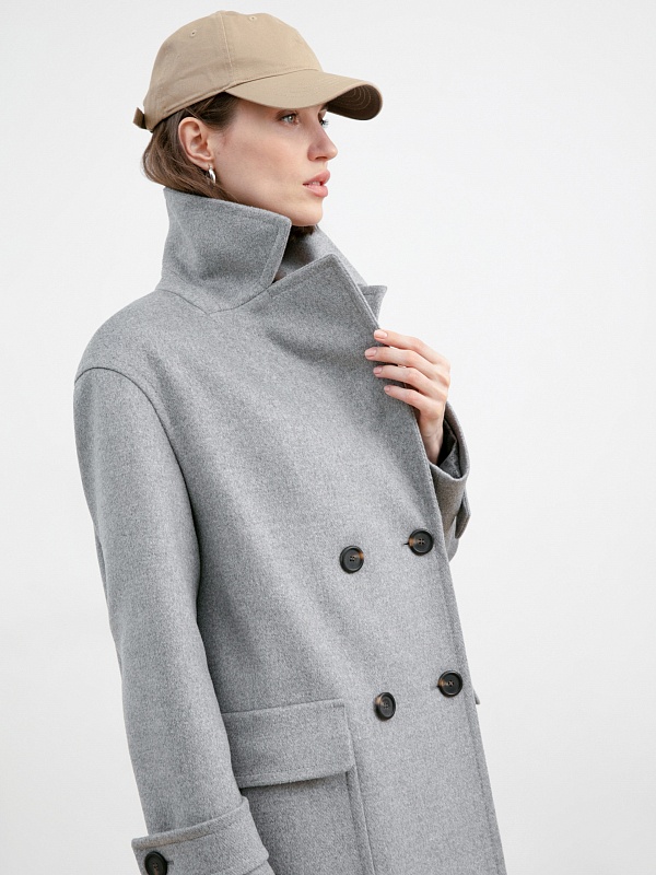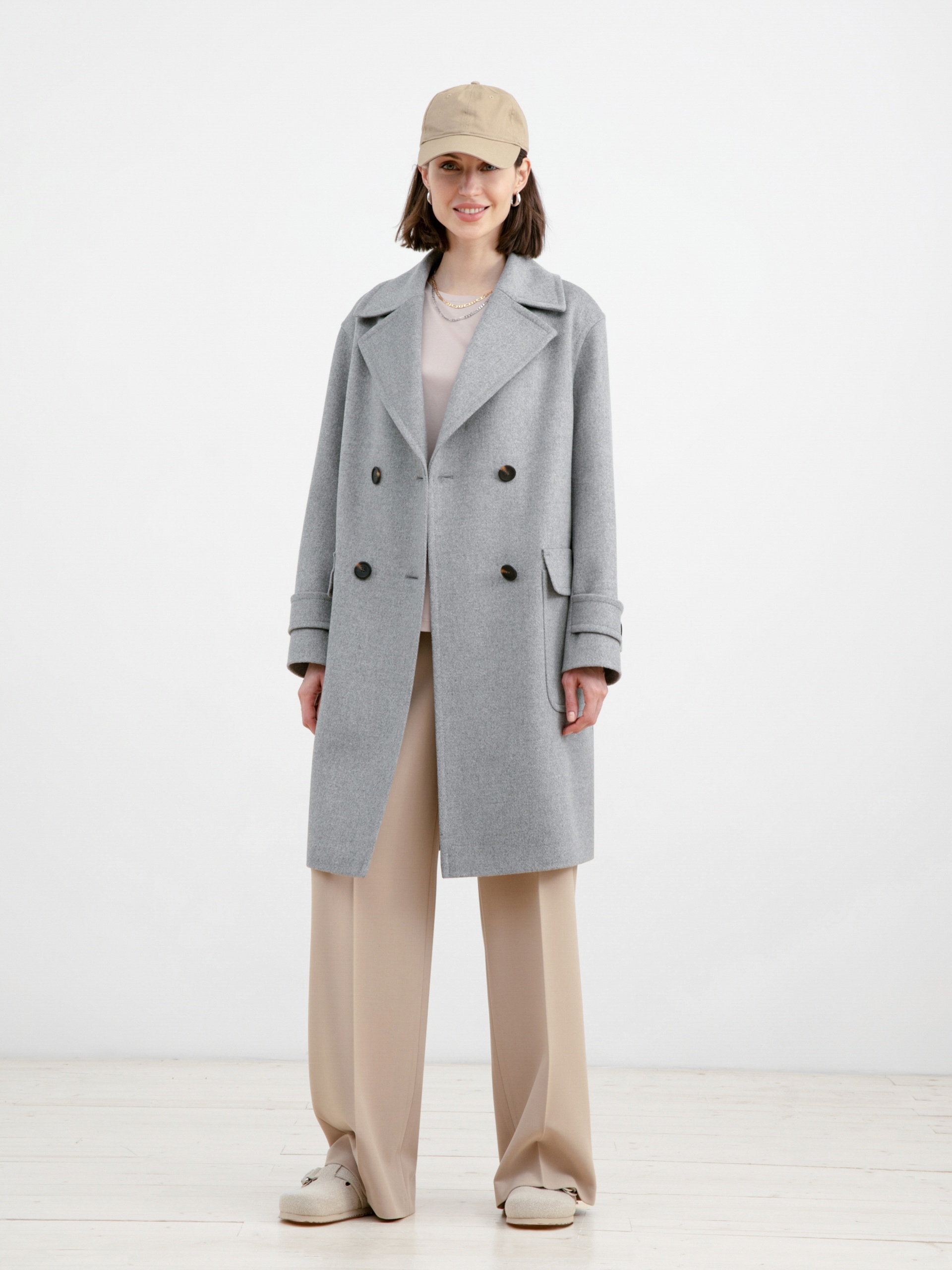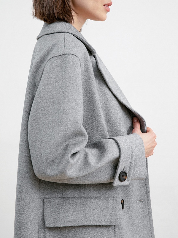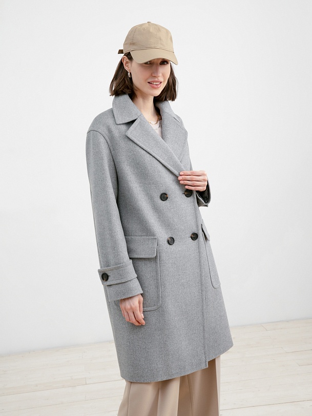 Двубортное пальто из премиальной шерстяной ворсовой ткани серого цвета с 80% содержанием шерсти. Длина пальто до колена, что позволяет комбинировать его с большим колличеством повседневных образов. Рубашечный рукав с декоративной отделочной строчкой создают современную линию плеча , а широкий английский воротник придает пальто геометричности. По низу рукава декоративные паты с крупными роговыми пуговицами. Функциональные крупные карманы с декоративными клапанами поддерживают образ и дополняют его. Застежка на два ряда крупных пуговиц под имитацию натурального рога. Выполнено пальто из ворсовой шерстяной ткани с использованием запатентованных технологий в виде высокотехнологичной мембраны Raft-Pro, которая надежно защитит от дождя и ветра в любую непогоду. Произведено в Санкт-Петербурге.