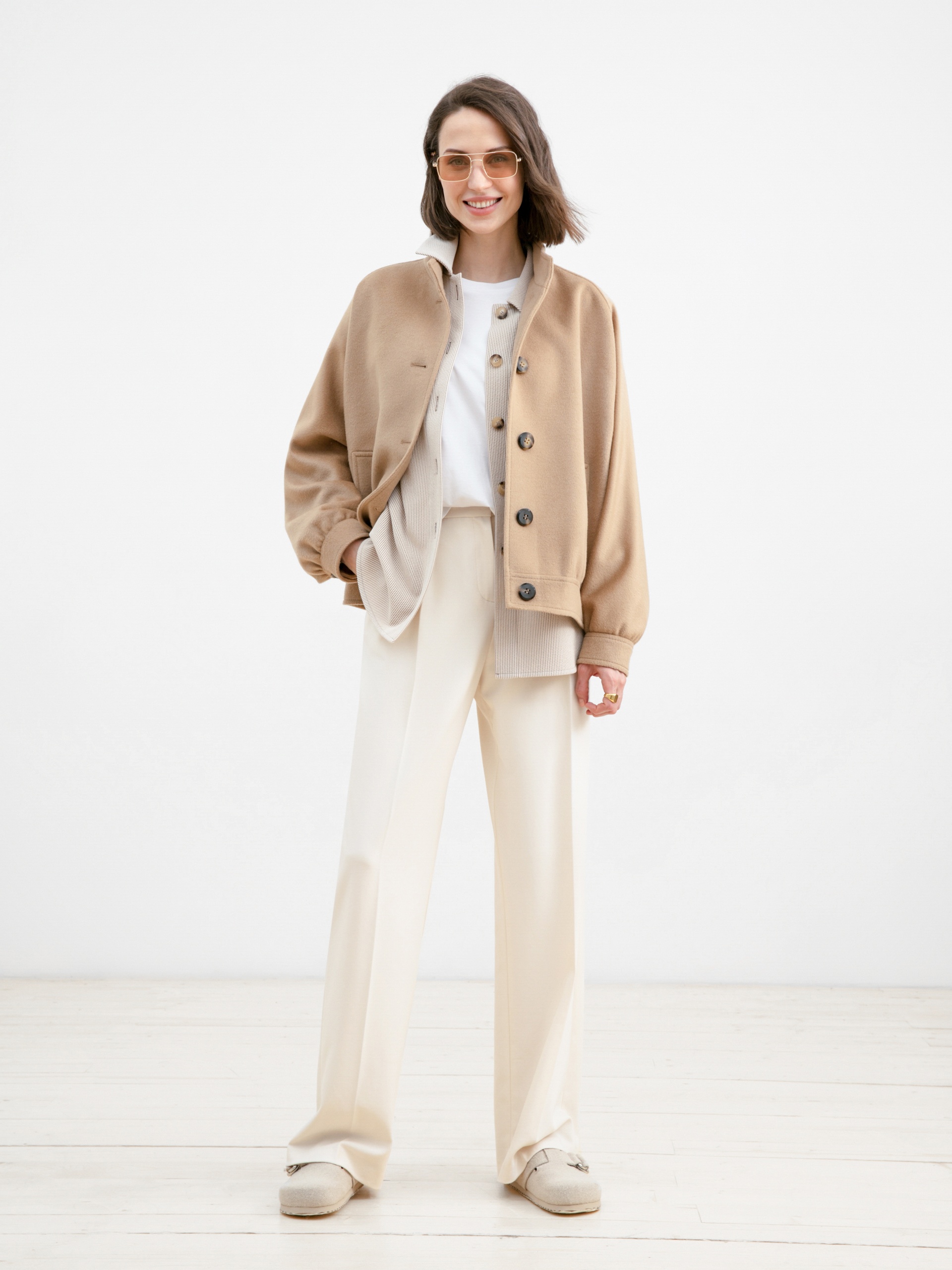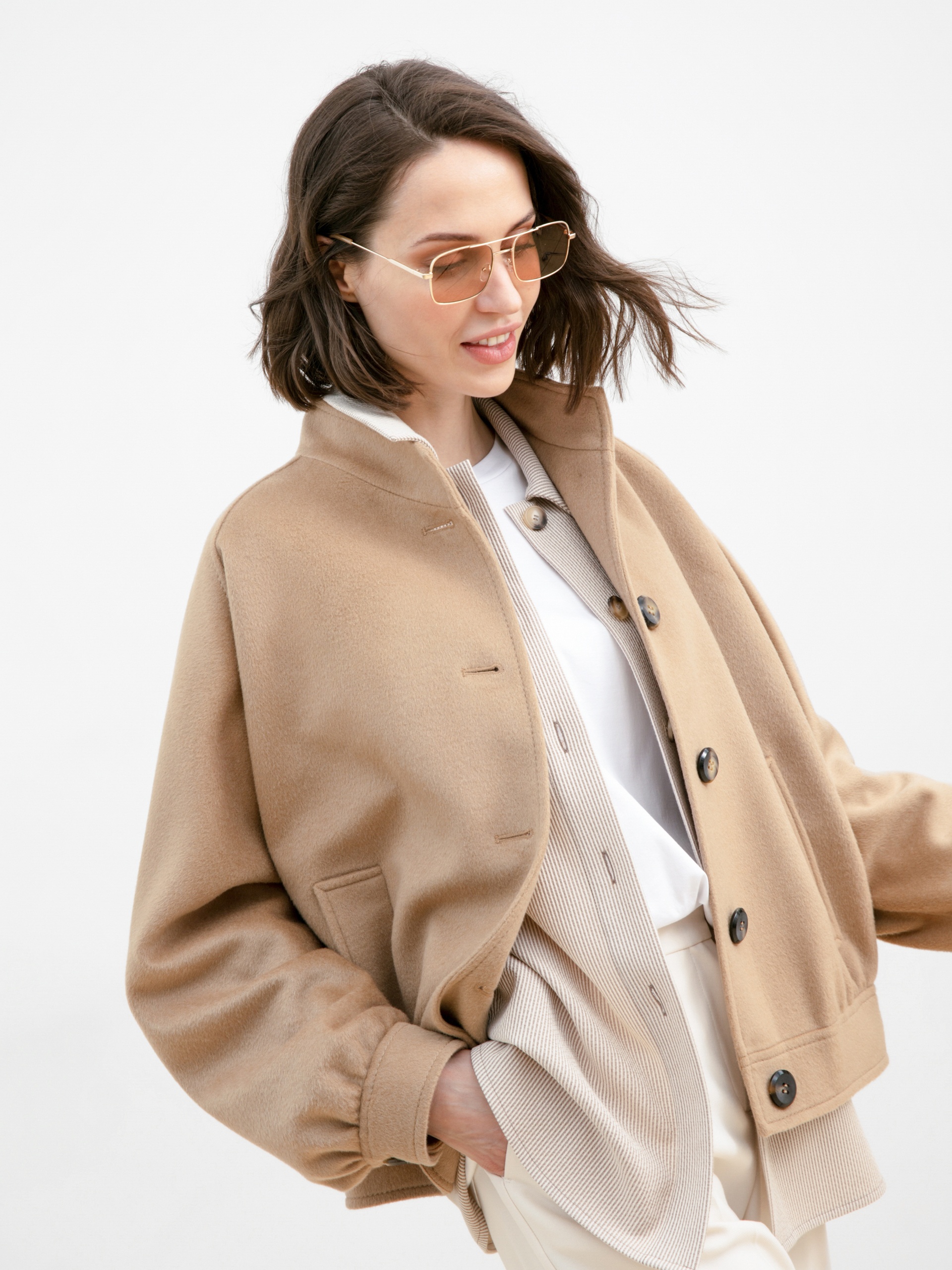 Укороченное пальто-жакет шерстяное