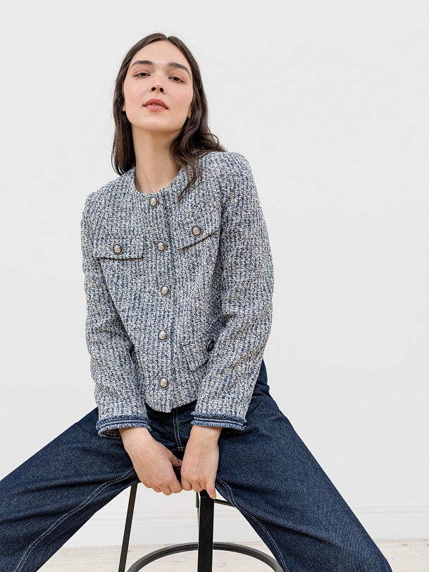 Укороченный прямой жакет из твида