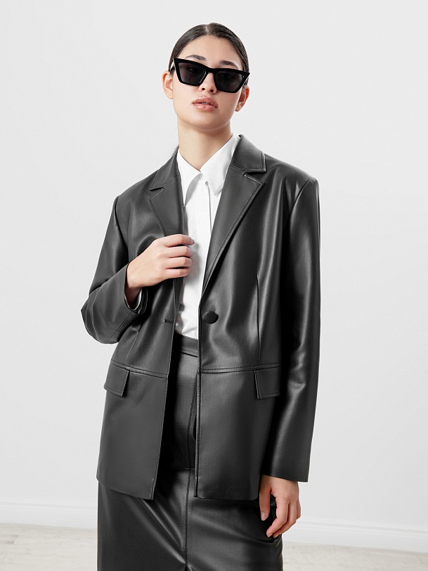 Прямой жакет из экокожи