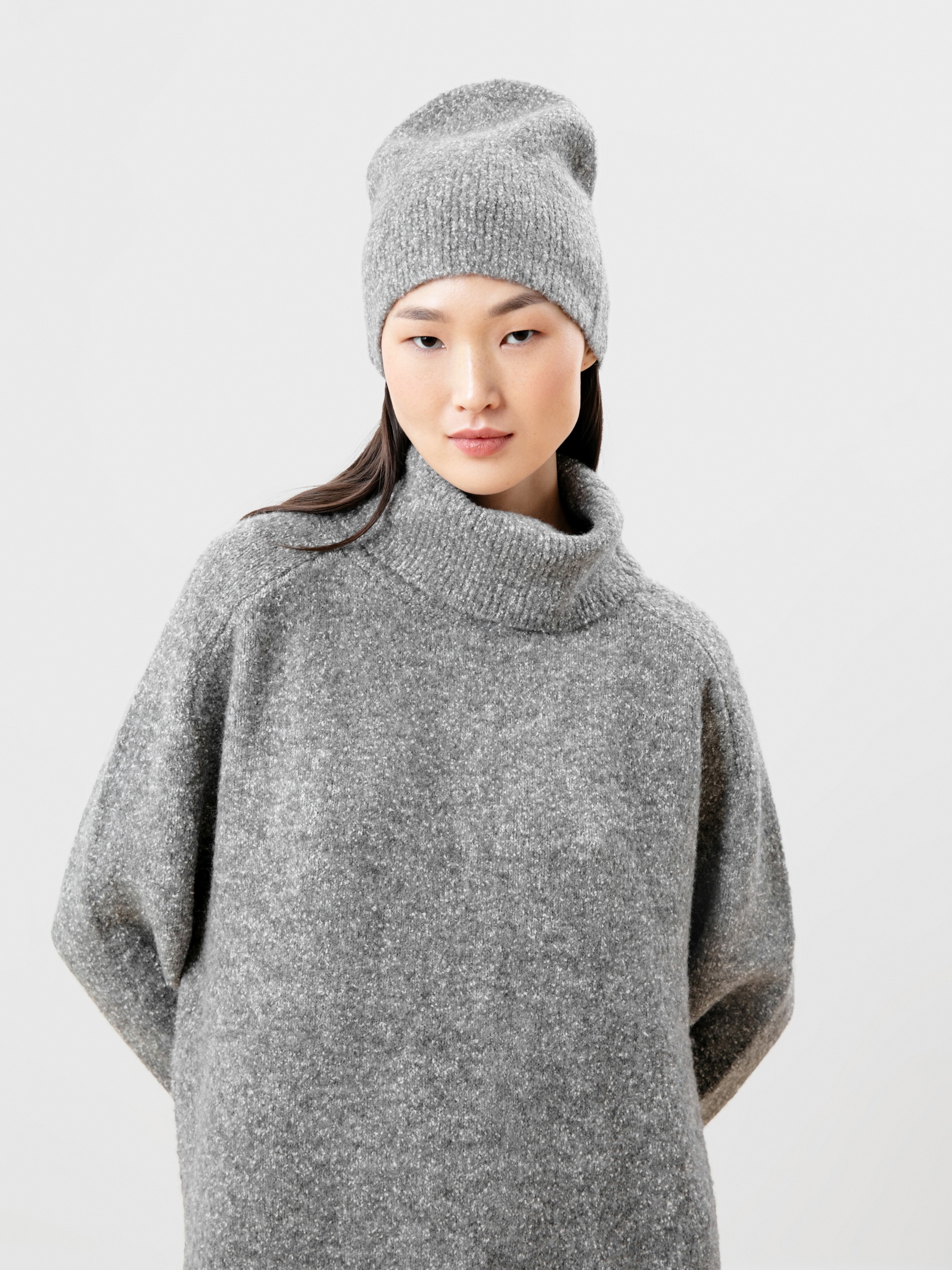 Модная шапка из фактурного вязаного трикотажа для актуальных образов в стиле smart casual.