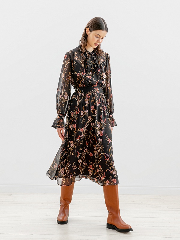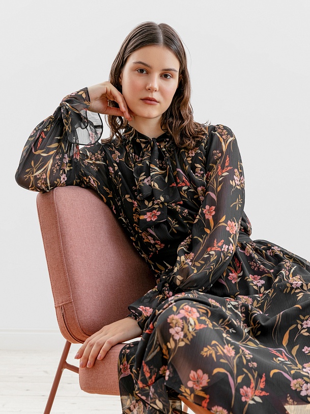 Платье из шифона с цветочным принтом