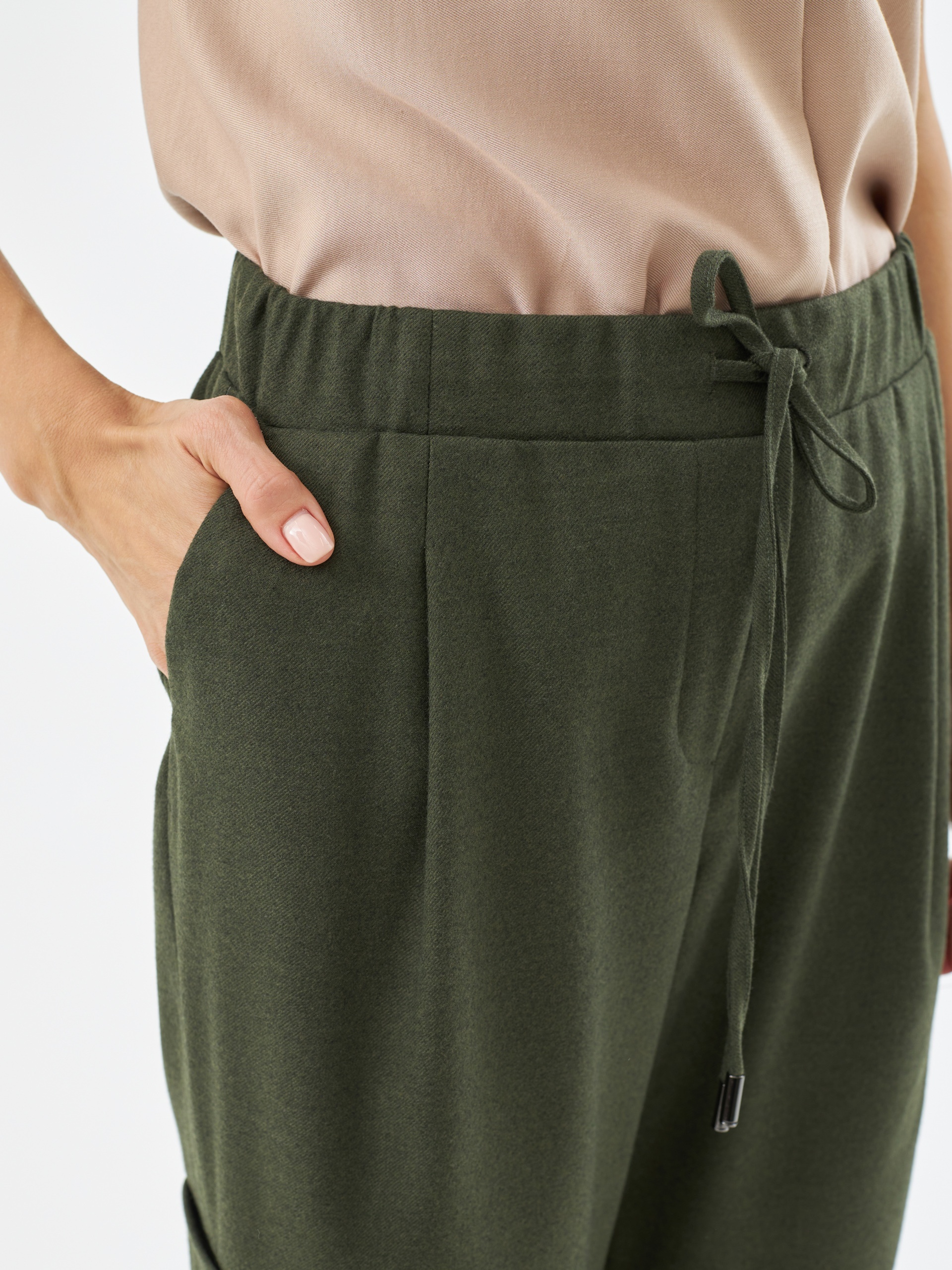 Брюки-бананы цвета хаки