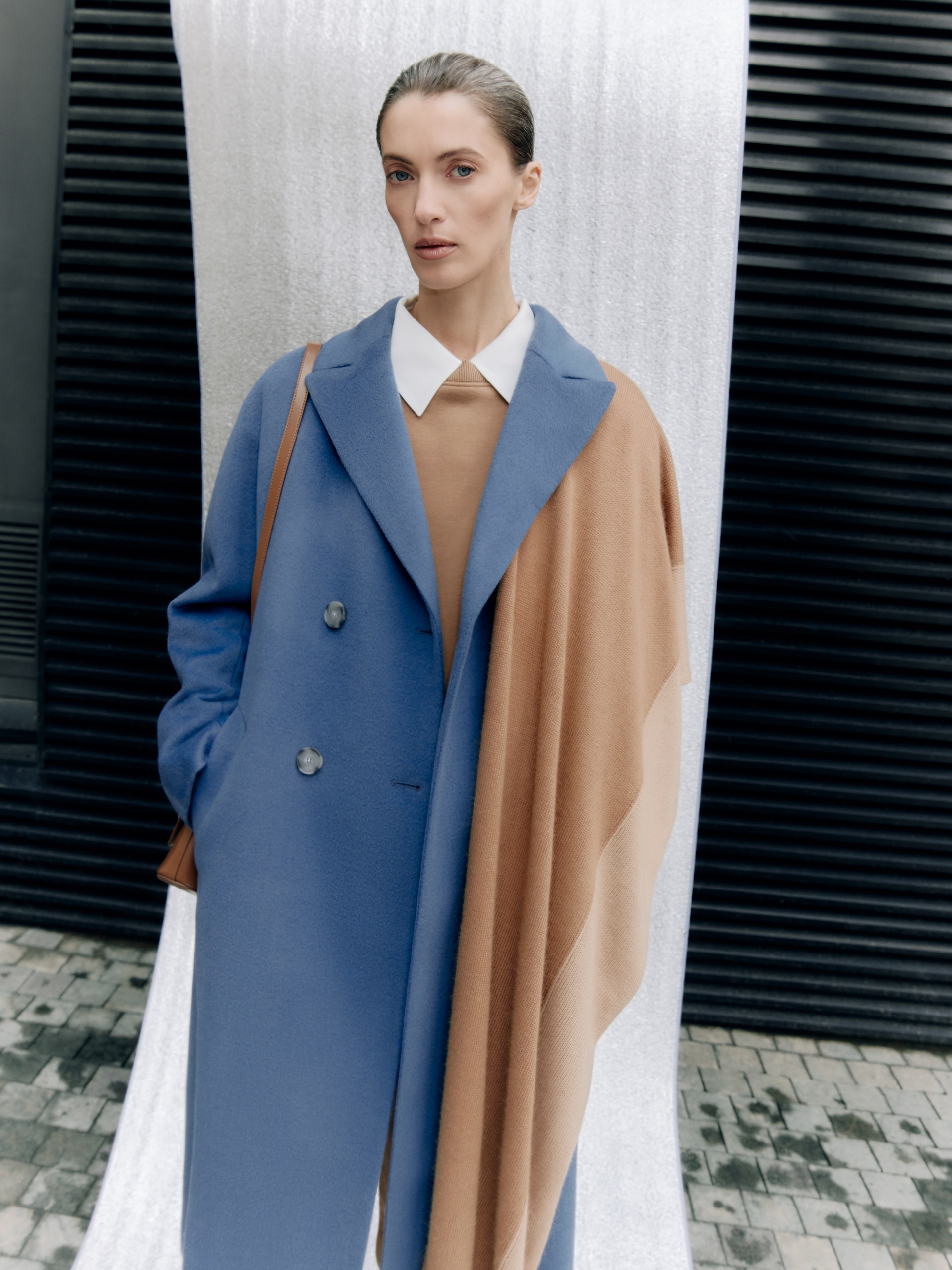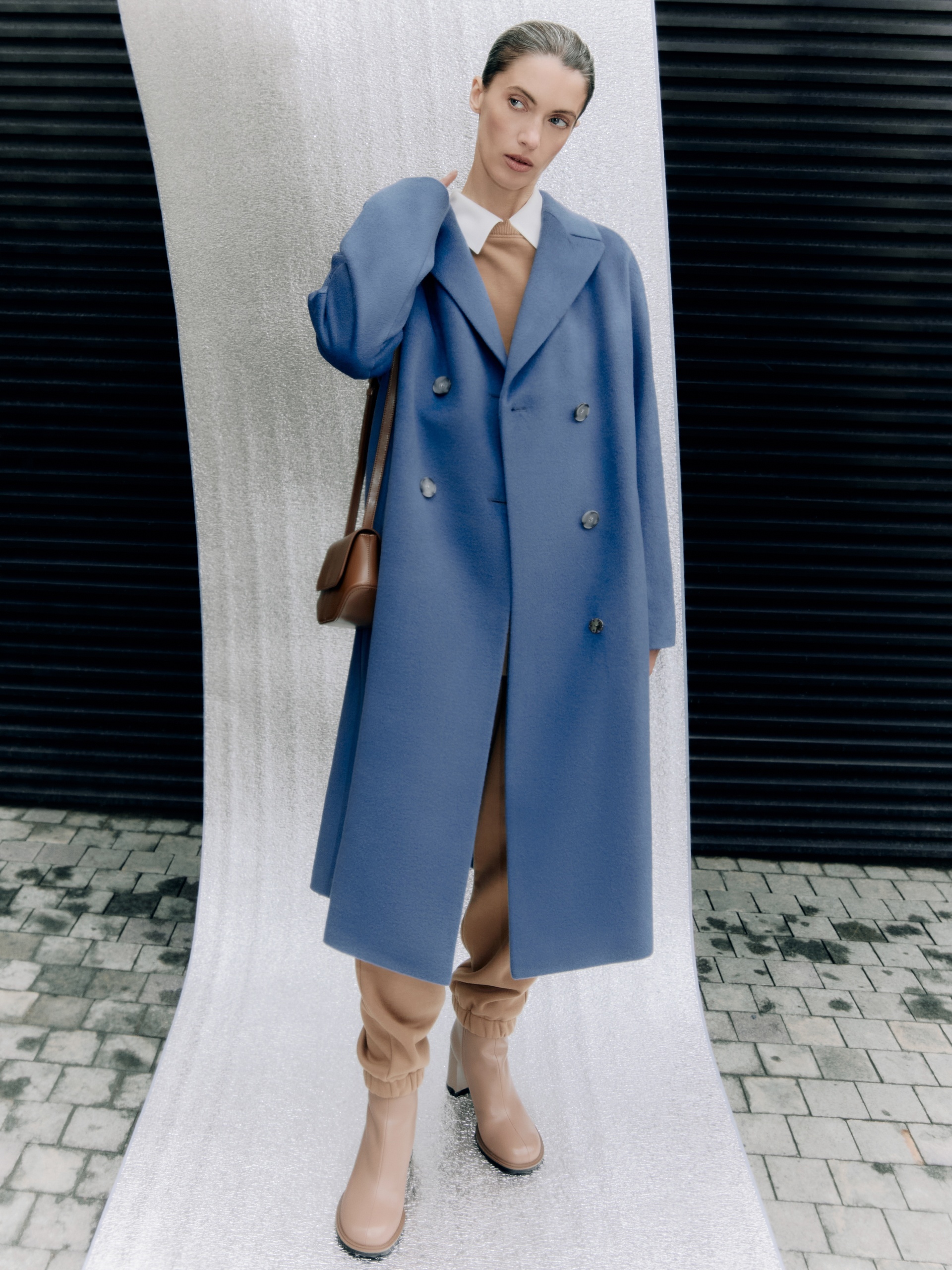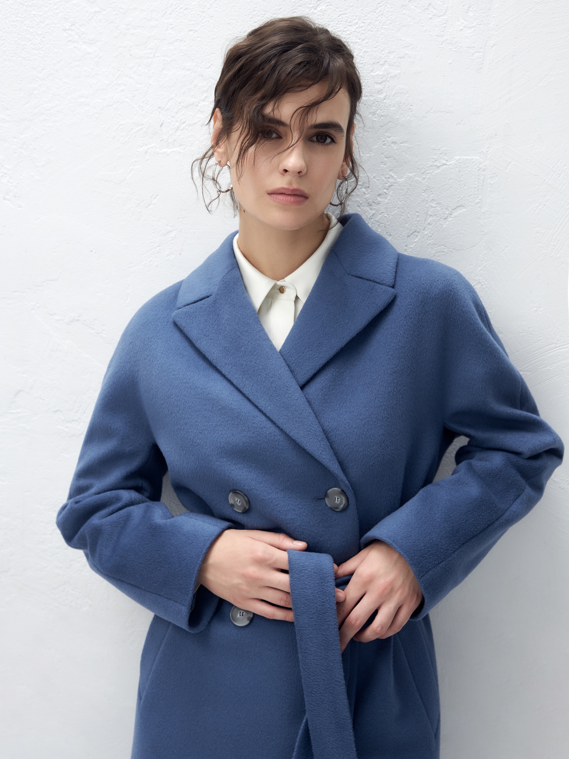 Шерстяное пальто двубортное с поясом