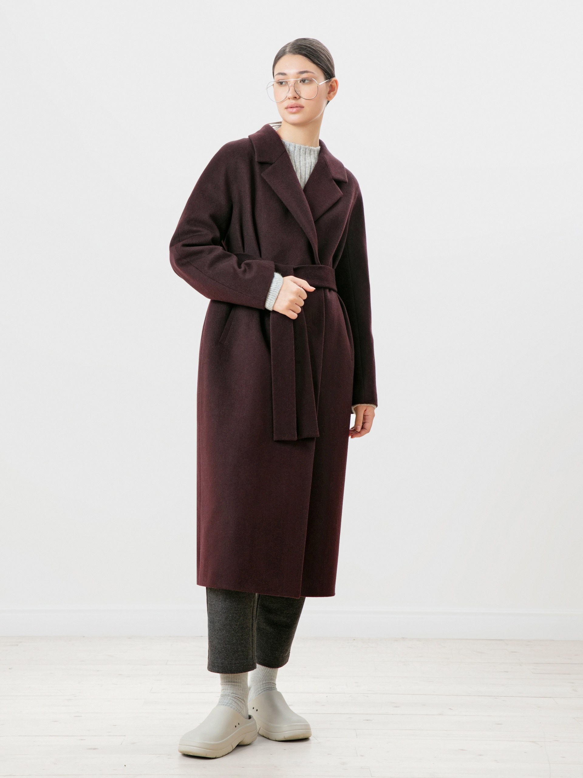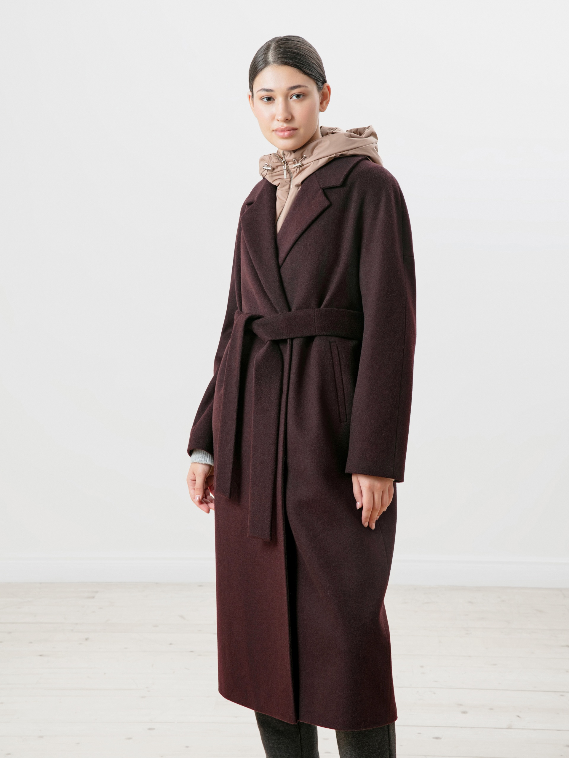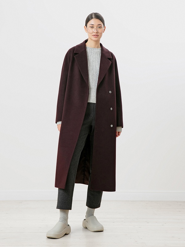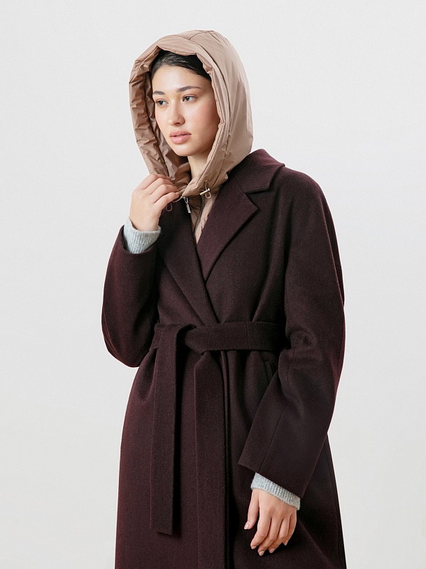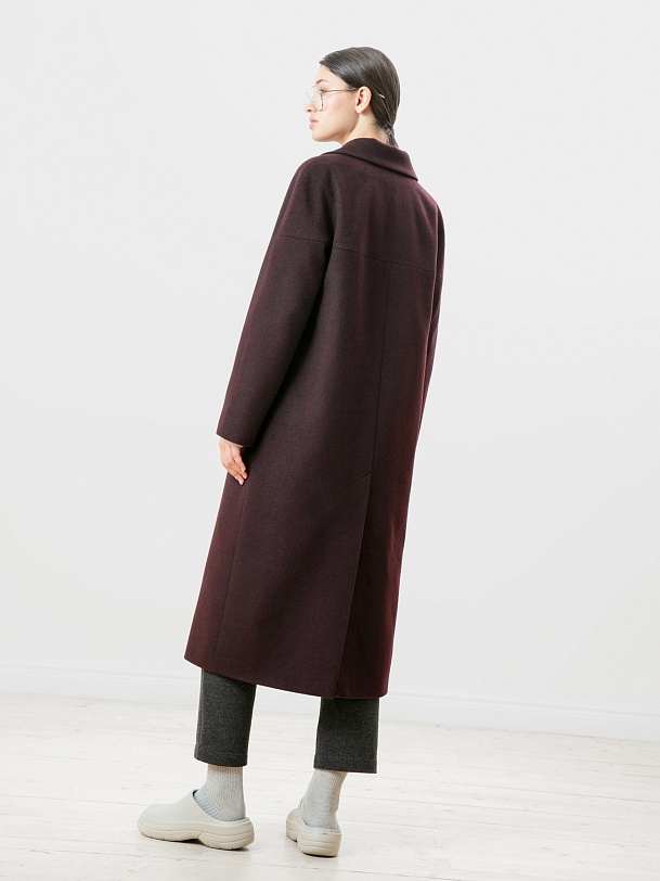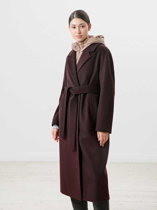 Однобортное пальто силуэта "удлиненный кокон". Эта модель сочетает в себе все качества современного пальто. Комфортный рукав, классический английский воротник и вместительные карманы делают его не только стильным, но и комфортным. Застёжка на ряд потайных пришивных кнопок. В среднем шве спинки высокая шлица, которая дает свободу шагу. В комплекте к пальто идет съемный непромокаемый капюшон с манишкой в универсальном карамельном цвете. Внутри капюшона встроена ветрозащитная мембрана. Пальто дополняет съемный пояс, которым можно подчеркнуть талию для создания более женственного образа. Так, благодаря комплекту декоративных элементов образ не только становится теплее, но и легко модернизируется из спортивного в элегантный. Пальто выполнено из премиальной шерстяной ткани с ворсом в винном цвете. Произведено с использованием высокотехнологичной мембраны RaftPro, которая разработана специально для защиты от ветра. Произведено в Санкт-Петербурге.