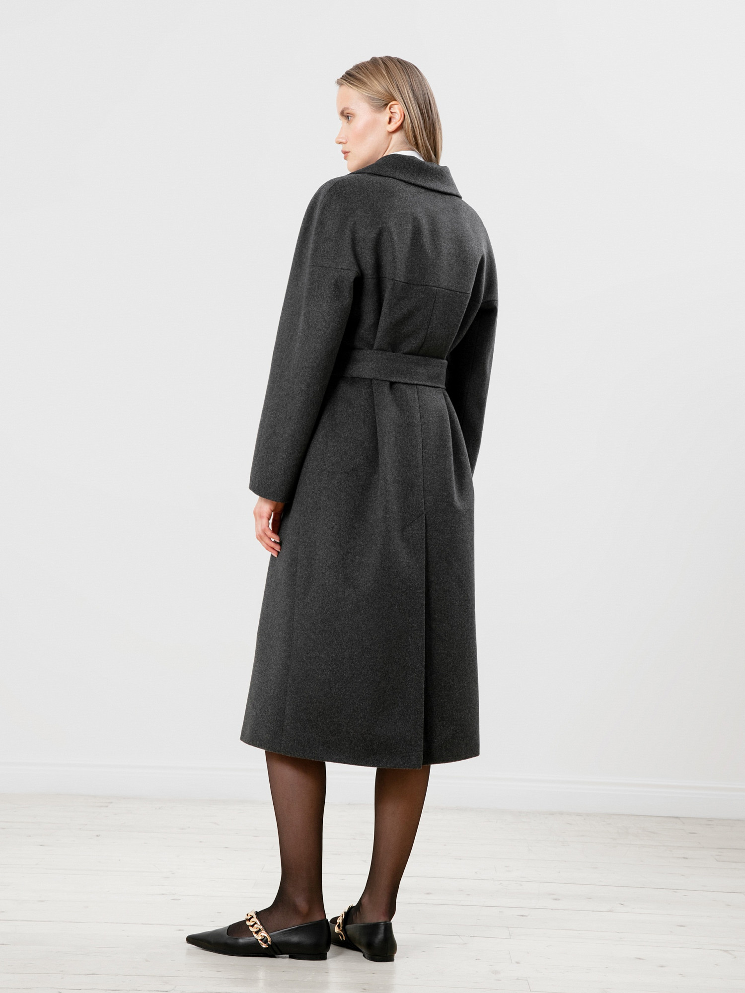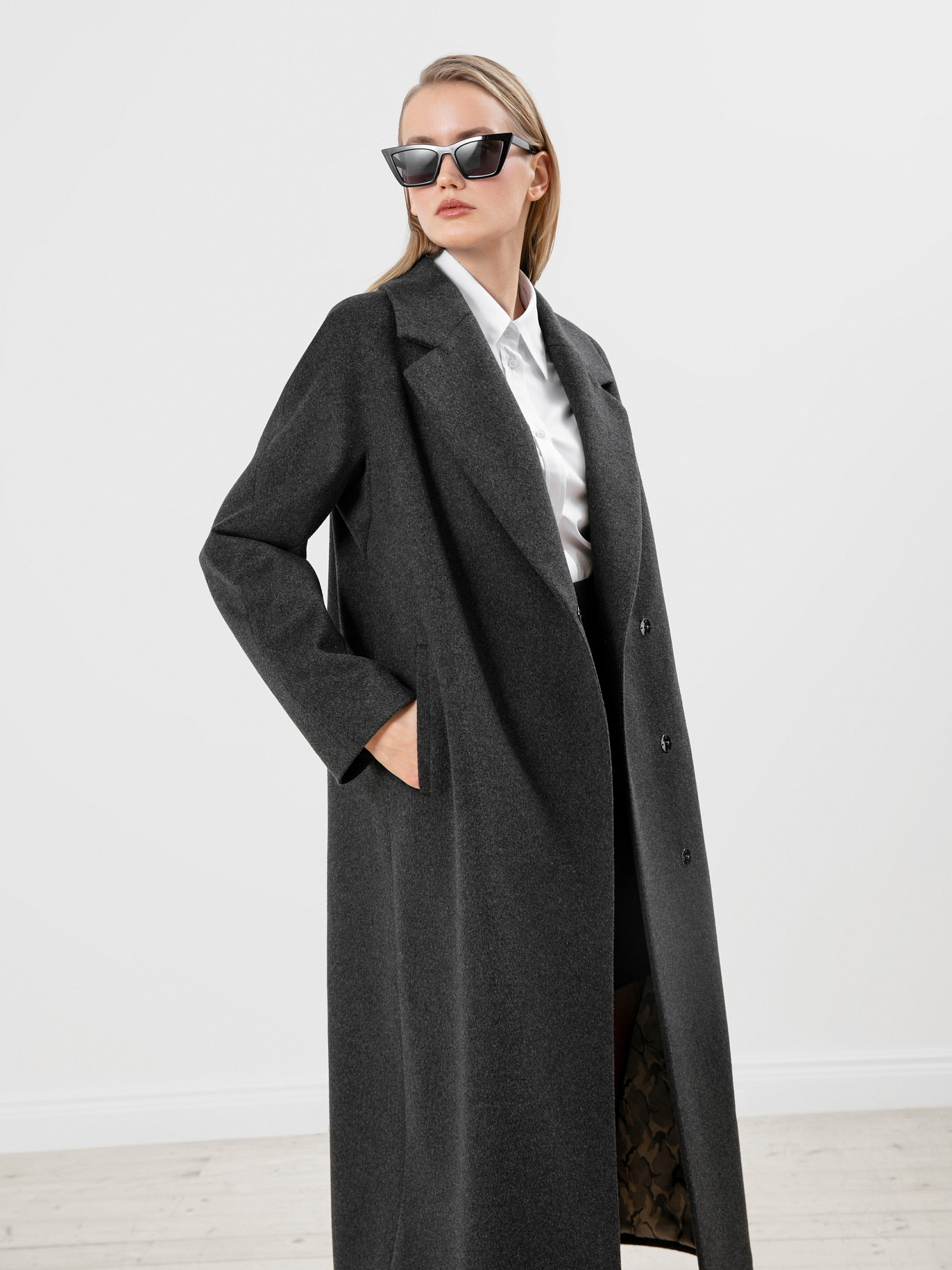Однобортное пальто силуэта "удлиненный кокон". Эта модель сочетает в себе все качества современного пальто. Комфортный рукав и классический английский воротник украшают пальто без лишних деталей и делают его не только стильным, но и очень комфортным в носке. Карманы с аккуратными листочками очень вместительные. Застёжка на ряд потайных пришивных кнопок не только незаметная, но и очень надежная. В среднем шве спинки высокая шлица, которая дает свободу шагу. В комплекте к пальто идет съемный капюшон с манишкой в универстальном черном цвете. Внутри капюшона встроена мембрана, которая защитит от дождя и ветра. Так же пальто дополняет съемный пояс из основной ткани, который подчеркивает талию и создает более женственный образ. Так, благодаря комплекту декоративных элементов пальто не только становится еще более теплым, но и легко модернизируется из спортивного образа в более элегантный. Пальто выполнено из премиальной шерстяной ткани с ворсом в сером цвете с эффектом меланж. Произведено с использованием высокотехнологичной мембраны Raft-Pro, которая разработана специально для защиты от ветра и дождя. Произведено в Санкт-Петербурге.