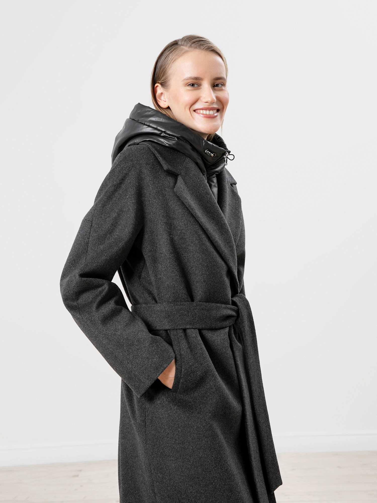 Декоративные элементы: Съёмный капюшон, пояс из основной ткани