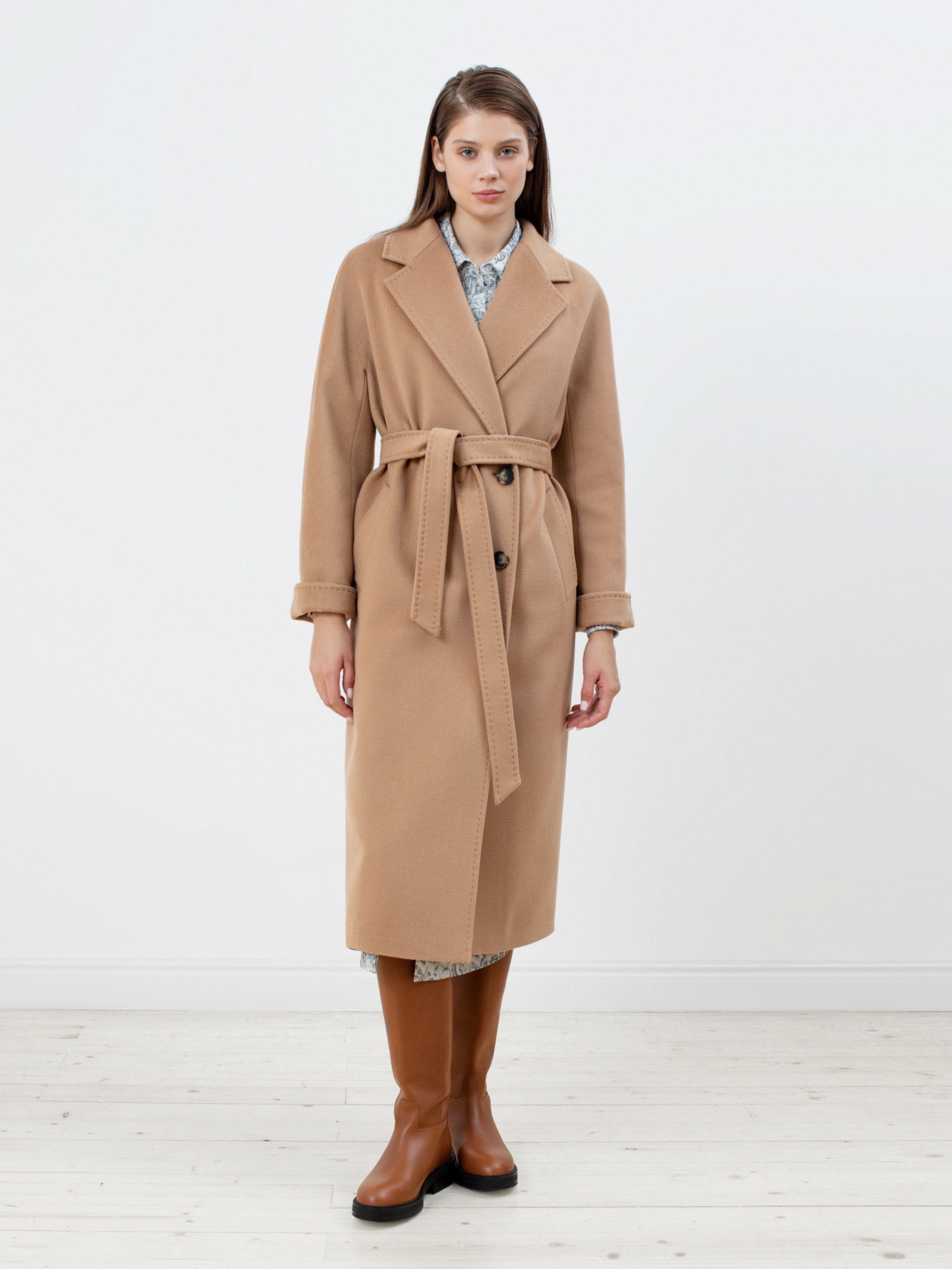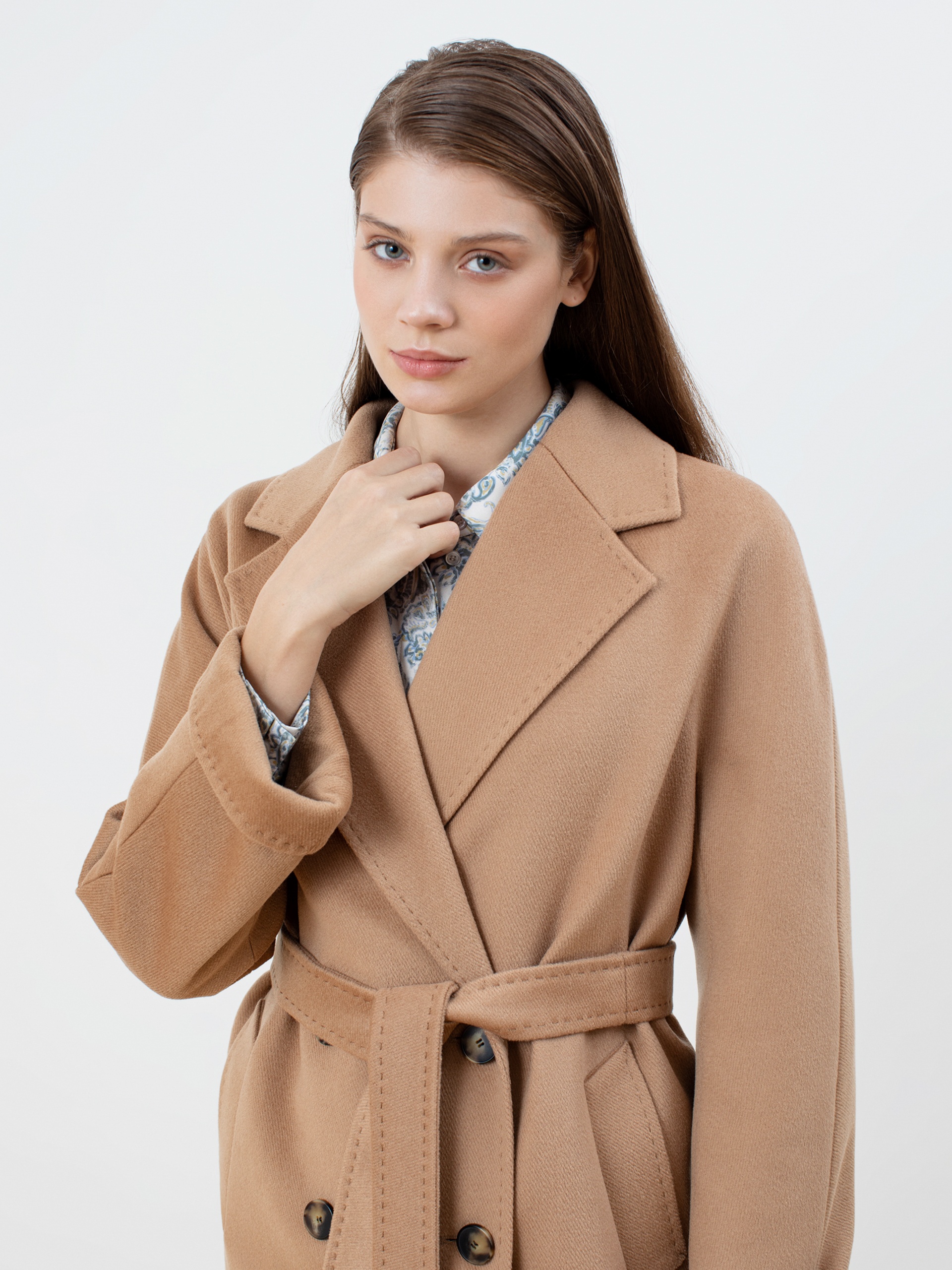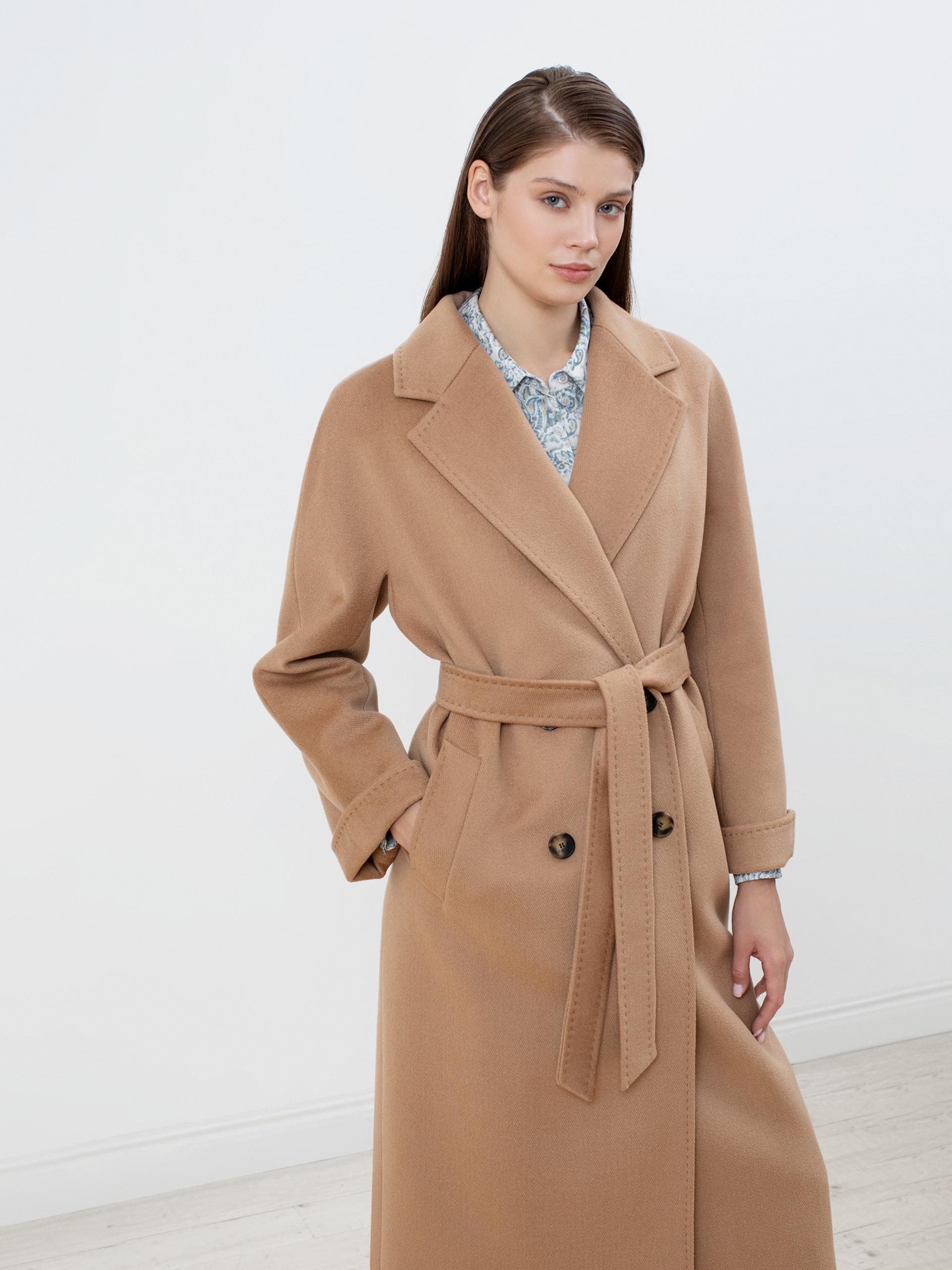 Двубортное пальто с поясом - незаменимая классика. Силуэт "удлиненный кокон", цельнокроеный рукав-кимоно, классический английский воротник с декоративной тамбурной строчкой, имитирующей ручной шов. Два глубоких кармана с листочками, два ряда крупных пуговиц под натуральный рог, съемный пояс из основной ткани для возможности приталивания изделия и придания ему более женственного силуэта. Пальто выполнено из премиальной ворсовой ткани с высоким содержанием шерсти в благородном цвете кэмел. Для наших пальто мы используем только качественные материалы и запатентованные технологии в виде мембраны Raft-Pro, которая позволит сохранить тепло, защитит от ветра и влаги в любую непогоду. Выполнено в технологии EW. Температурный режим пальто до -15 градусов. Выполнено в Санкт-Петербурге.