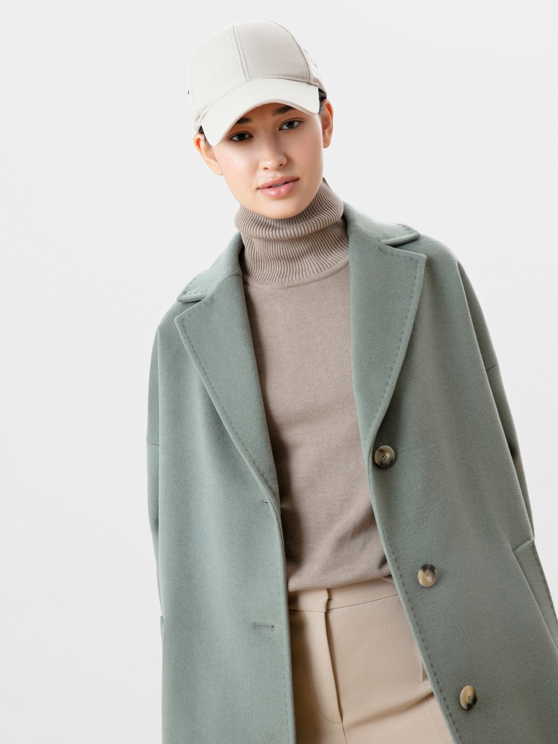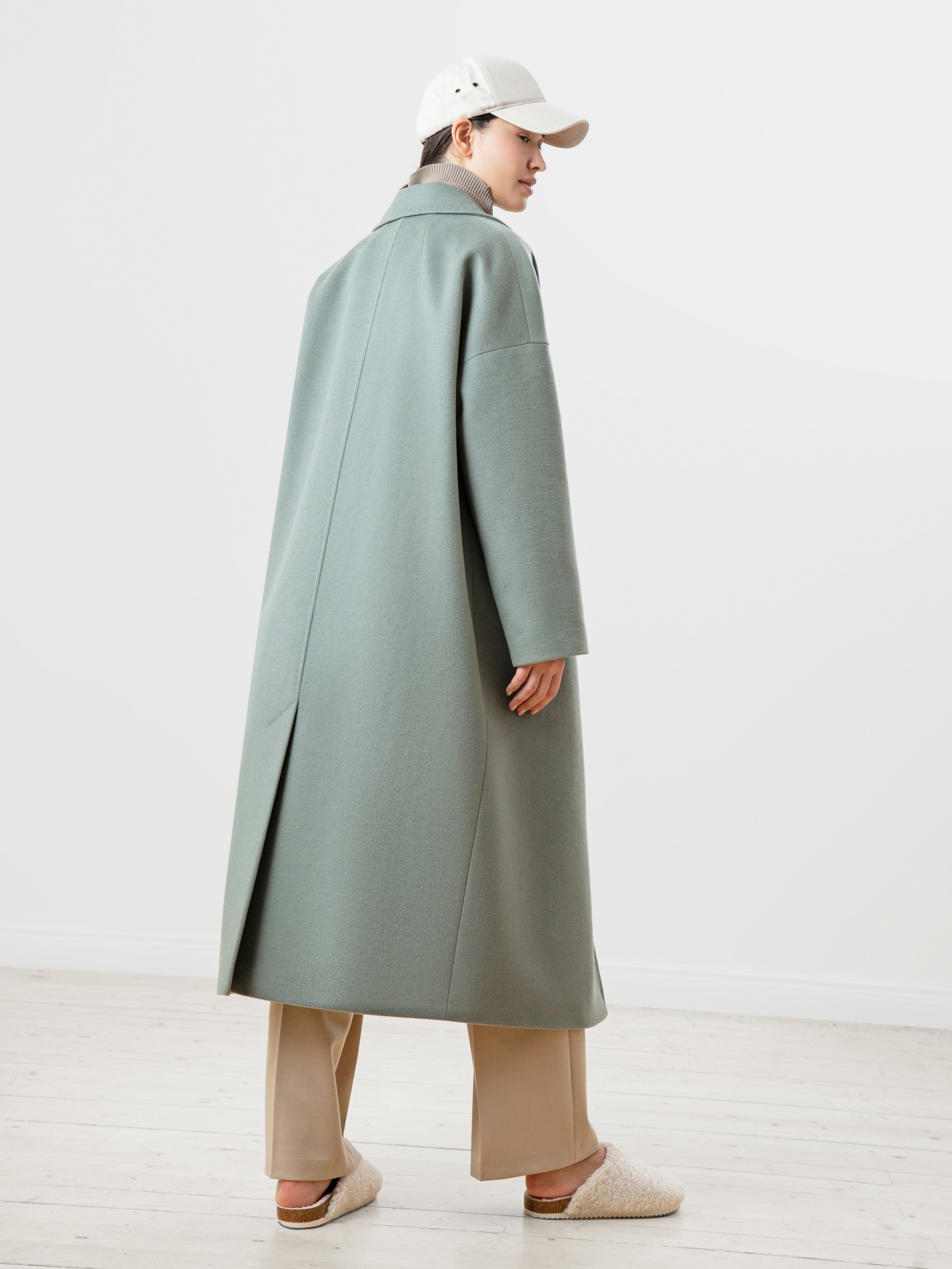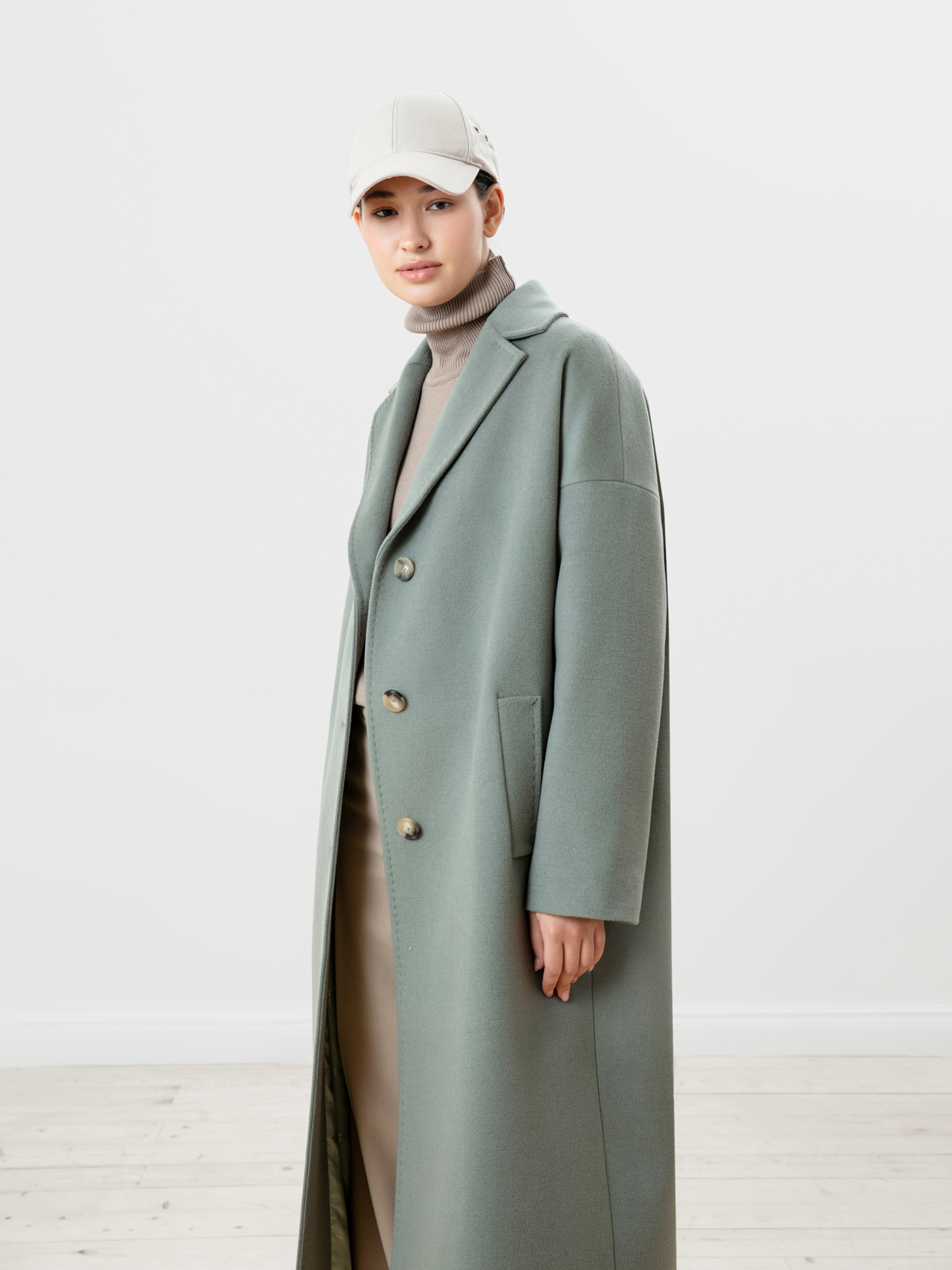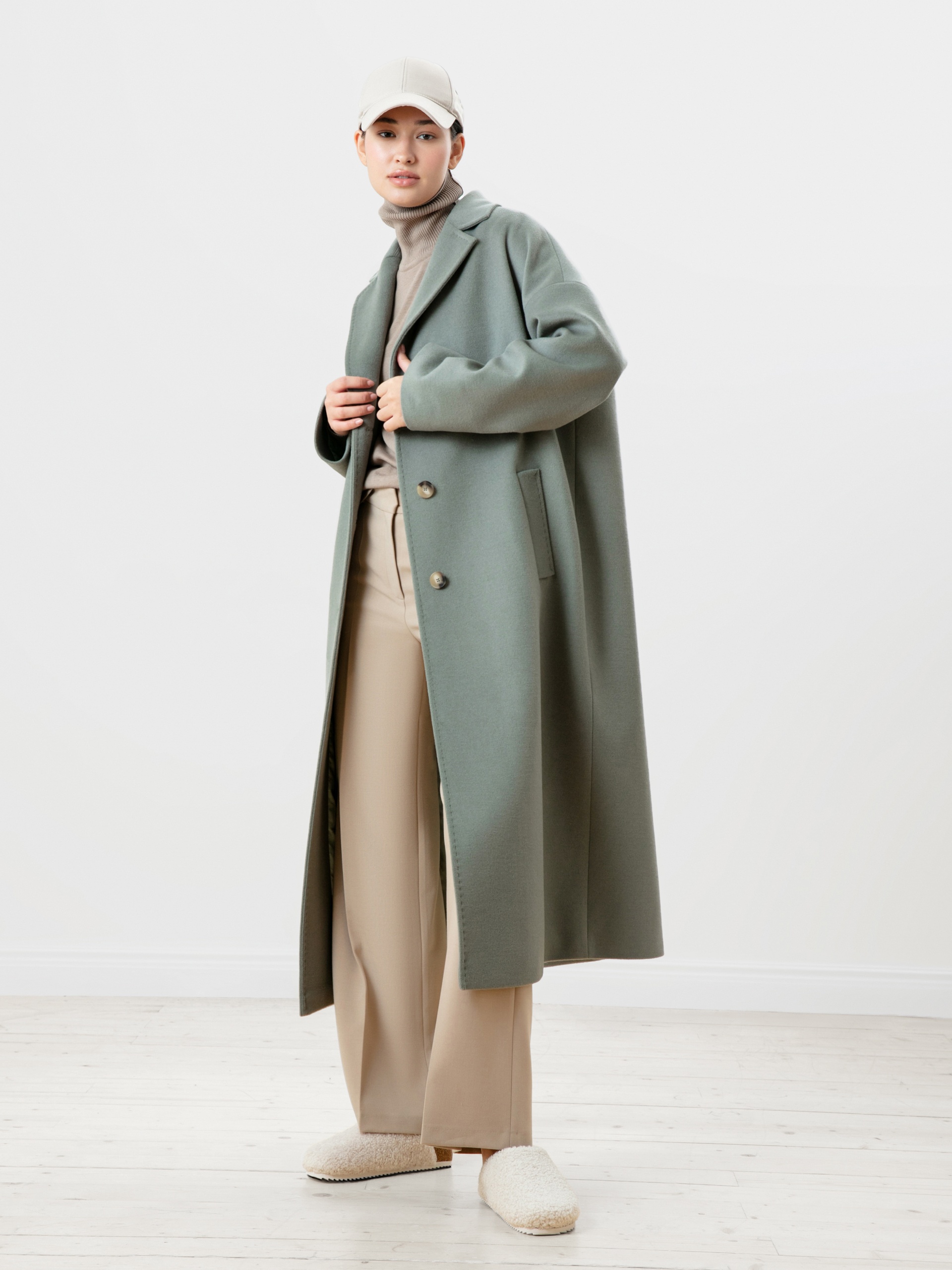 Пальто прямого силуэта из премиальной шерстяной ткани цвета "полынь". Пальто очень стильного, объемного силуэта с комфортным рубашечным рукавом, который даже при многослойном образе не будет стеснять движений. Классический английский воротник с декоративной отделочной строчкой, под иммитацию ручного стежка. Застежка на ряд пуговиц под натуральный рог и глубокие, функциональные карманы с отделочной строчкой. Пальто выполнено с использованием запатентованных технологий в виде высокотехнологичной мембраны RaftPro, которая надежно защитит от ветра, холода и перепада температур. Произведено в Санкт-Петербурге.