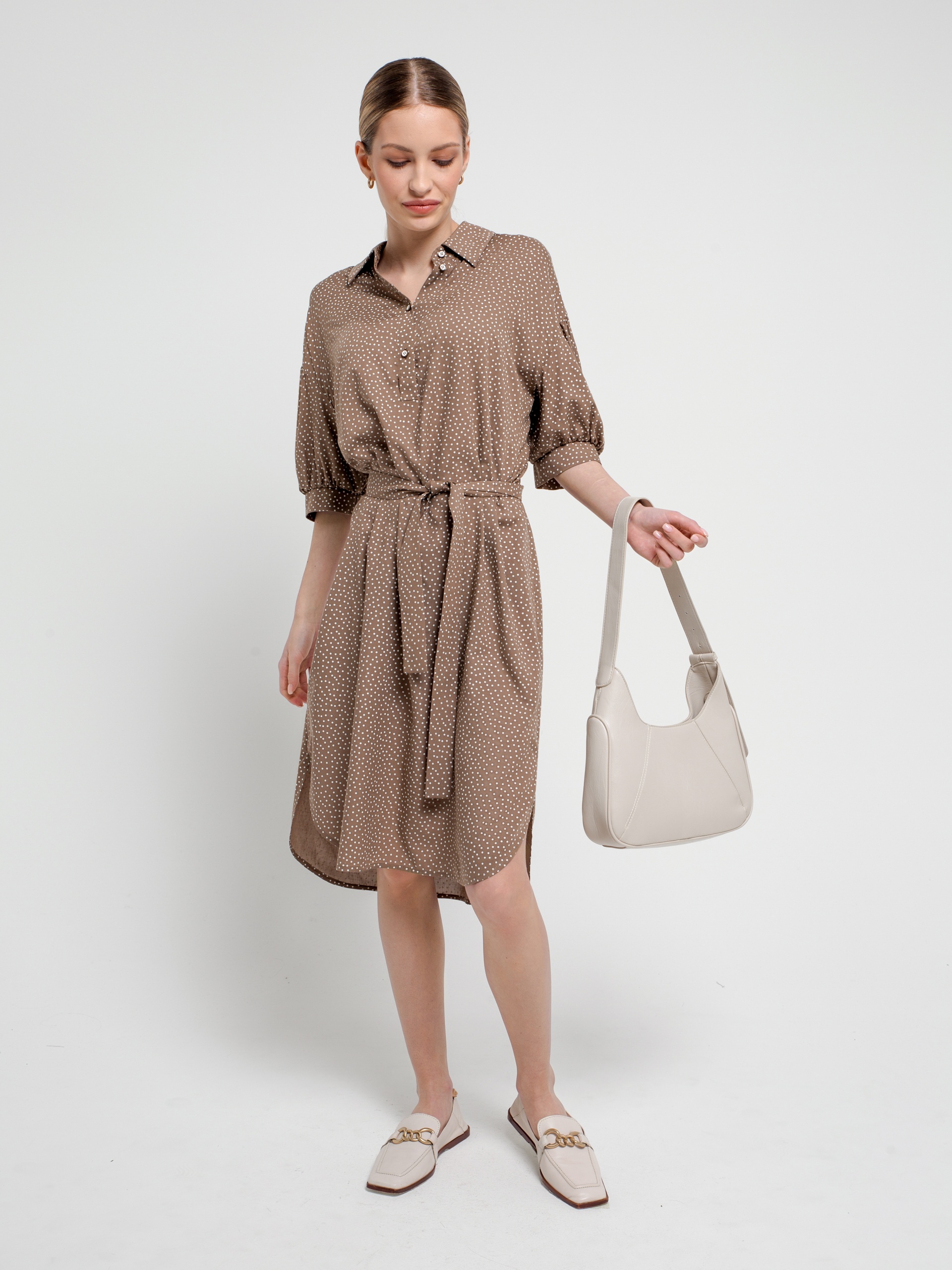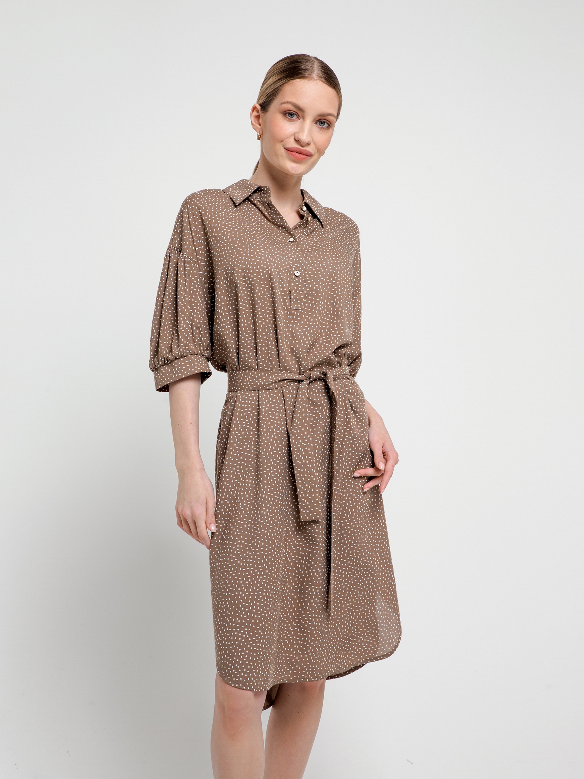 Платье-рубашка в мелкий горошек