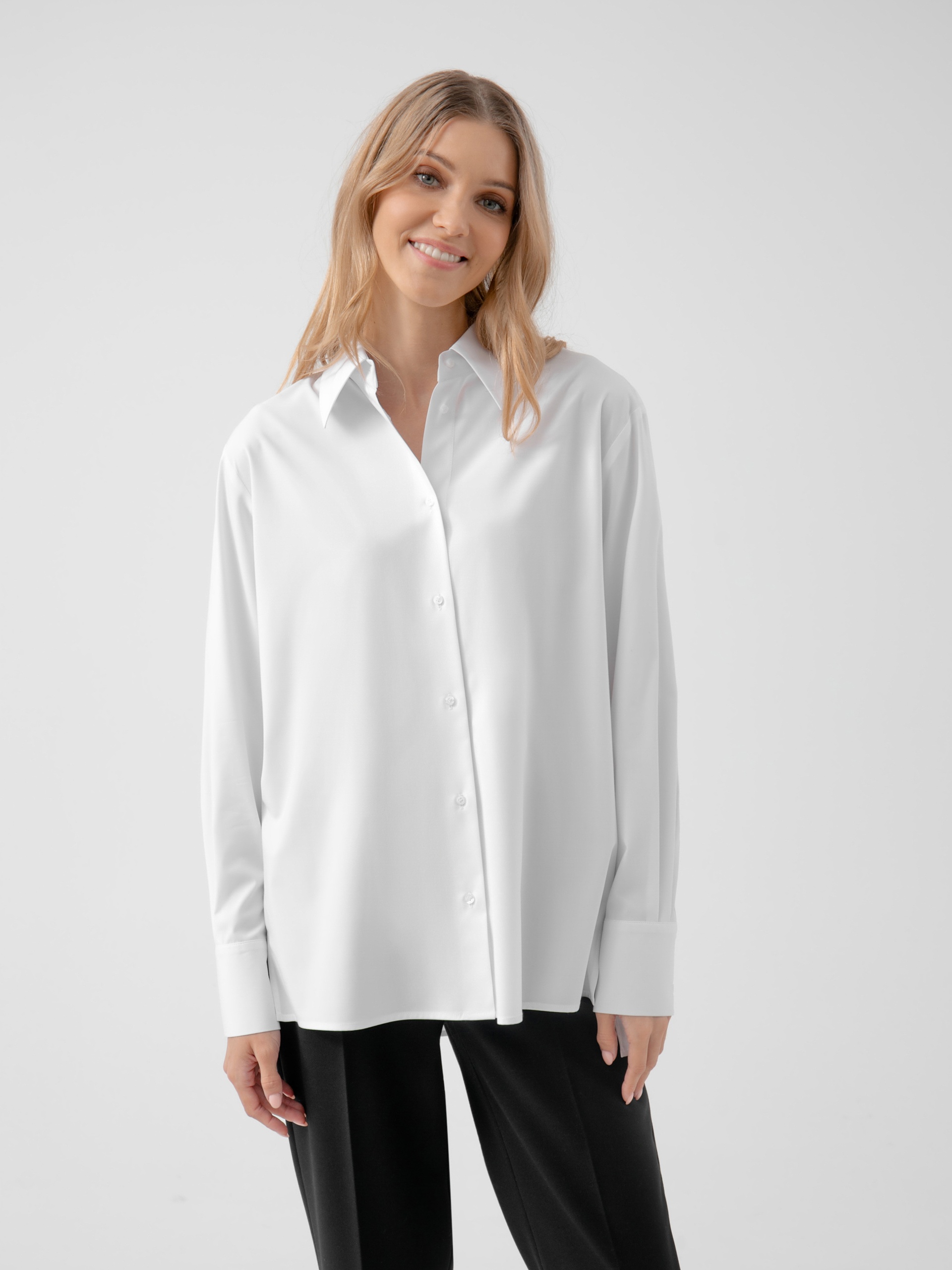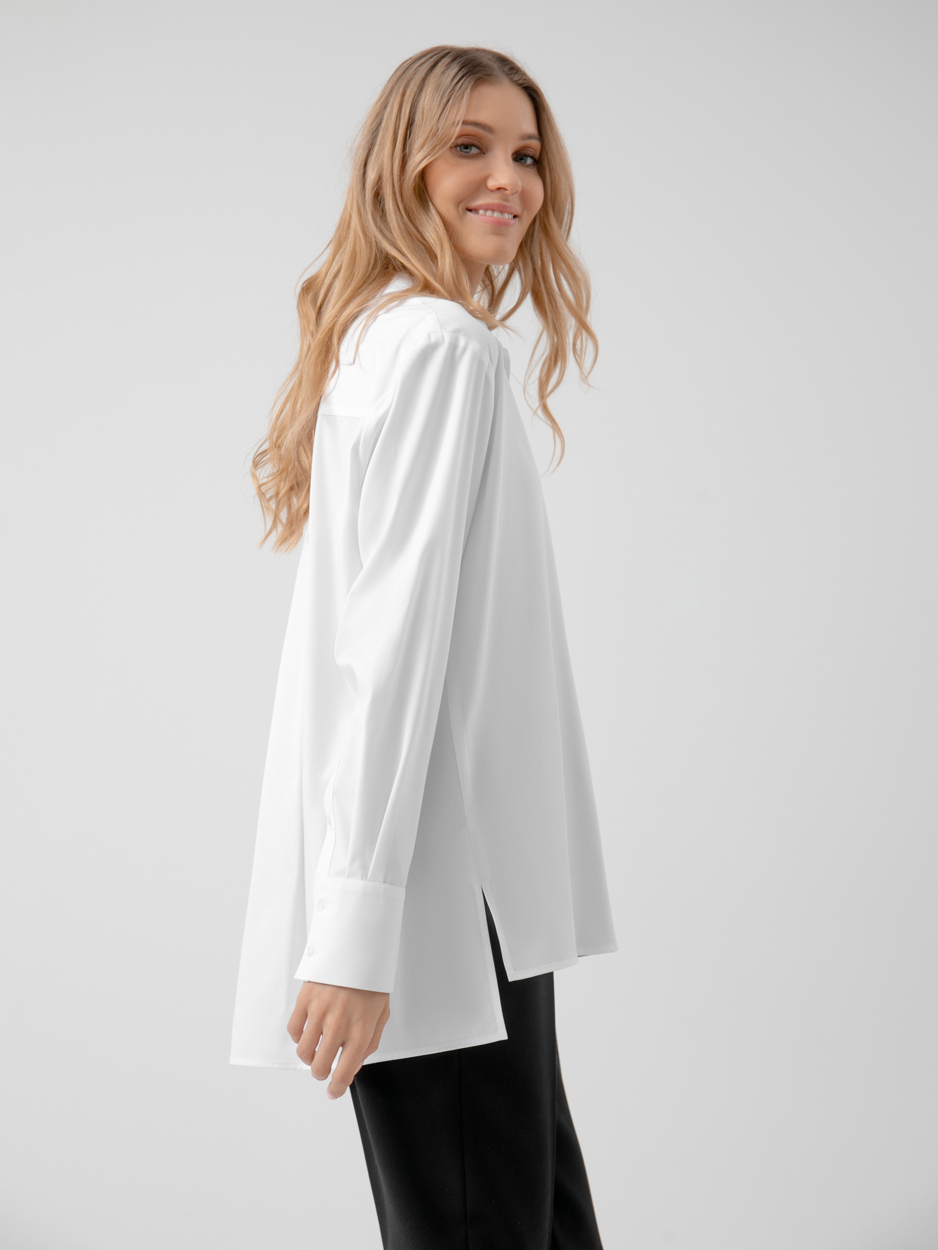 Блузка белая с длинными рукавами свободного силуэта