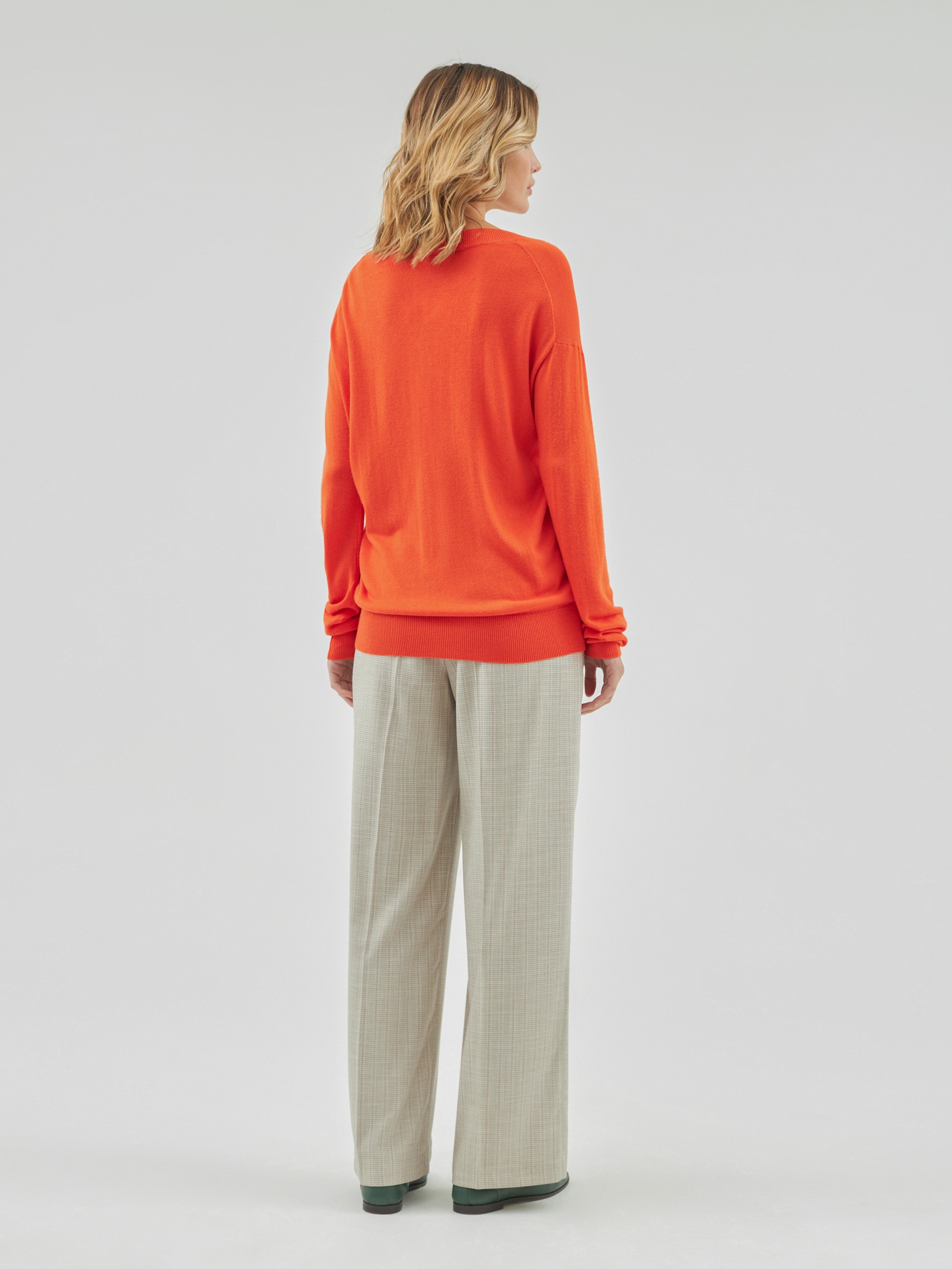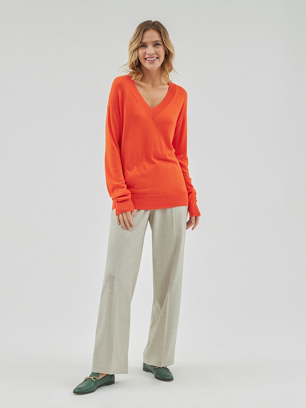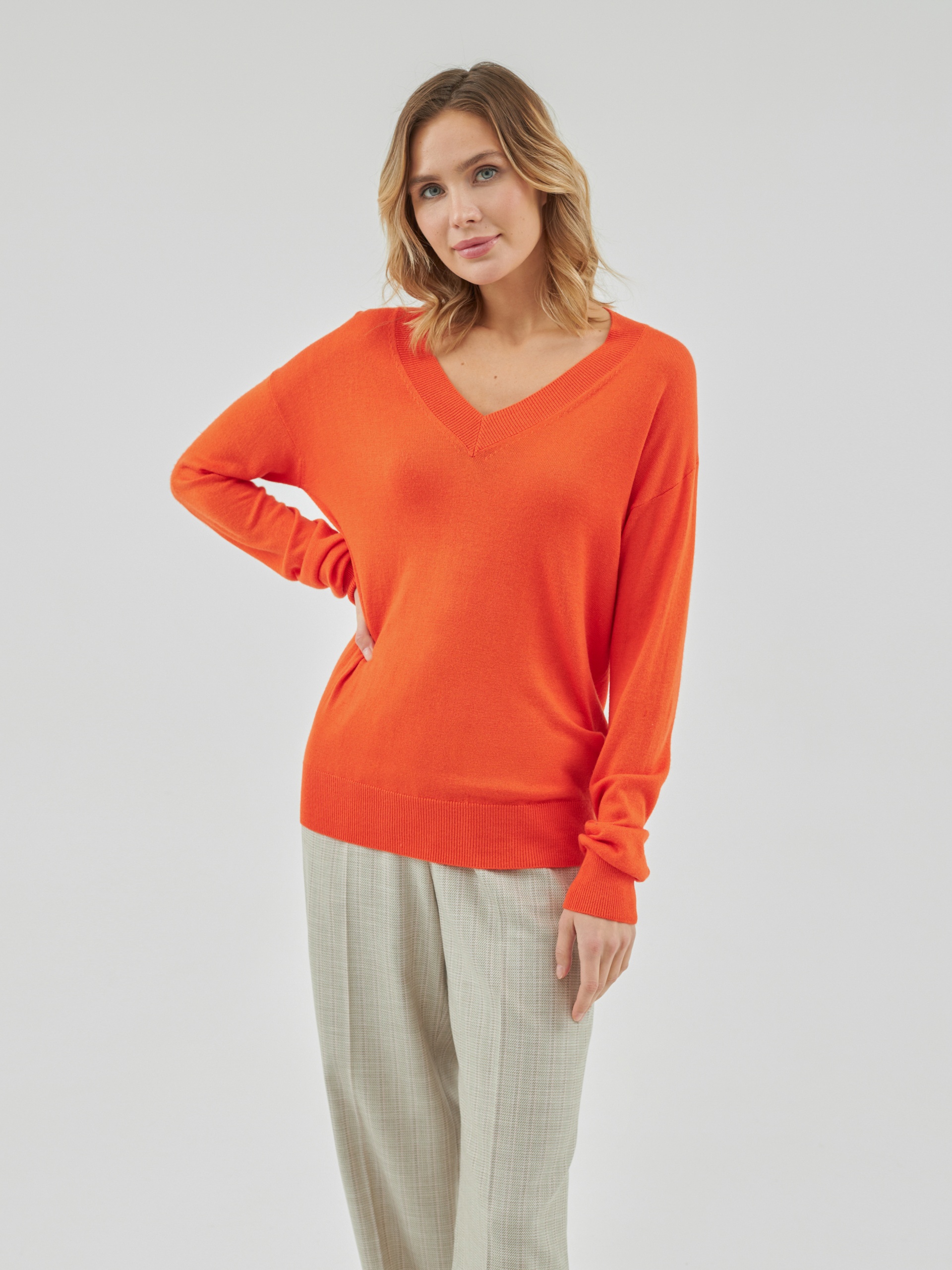 Базовый джемпер с V-образным вырезом горловины можно носить самостоятельно или в образах с рубашками и футболками.