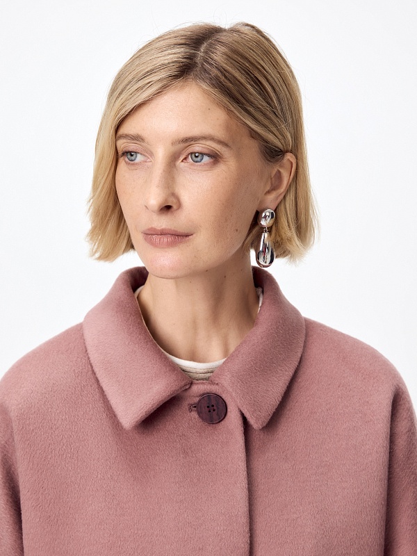 Однобортное пальто характерного силуэта "кокон" из премиальной шерстяной ткани в роскошном цвете "чайная роза". Длина пальто до колена, что делает его элегантным и при этом удобным и комфортным. Рубашечный рукав, аккуратный отложной воротник идеально выдерживают образ, сохраняя его минималистичным и роскошным без лишних деталей. Узкие карманы-листочки, застежка на ряд пришивных кнопок и одну крупную роговую пуговицу . Изготовлено пальто из шерстяной ткани с использованием мембраны RaftPro, которая защитит даже от сильного ветра. Произведено в Санкт-Петербурге.