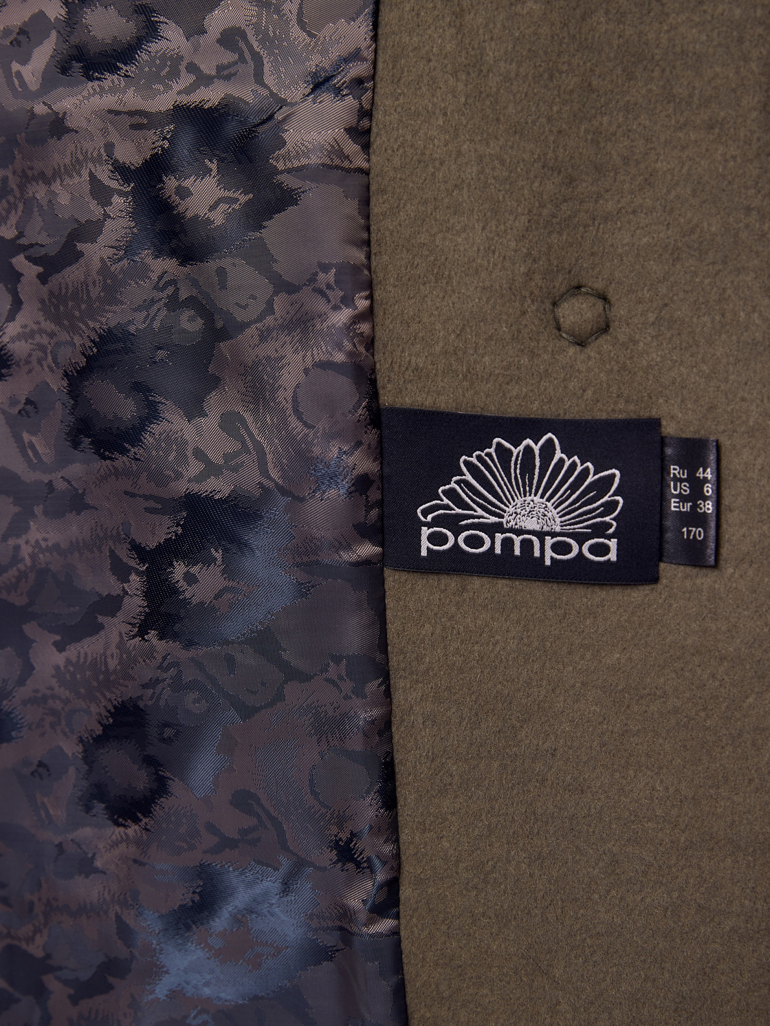 Однобортное полупальто прямого силуэта из шерстяной ворсовой ткани с высоким содержанием шерсти. Длина пальто выше колена. Комфортный рубашечный рукав со спущенной линией плеча, роскошный английский воротник, карманы с декоративными клапанами, застежка на ряд пришивных кнопок. В качестве декоративного элемента в комплекте с пальто идет пояс, который создает непревзойденный стильный силуэт и делает образ более женственным и утонченным. Изготовлено пальто из премиальной шерстяной ткани цвета хаки. Произведено в Санкт-Петербурге.