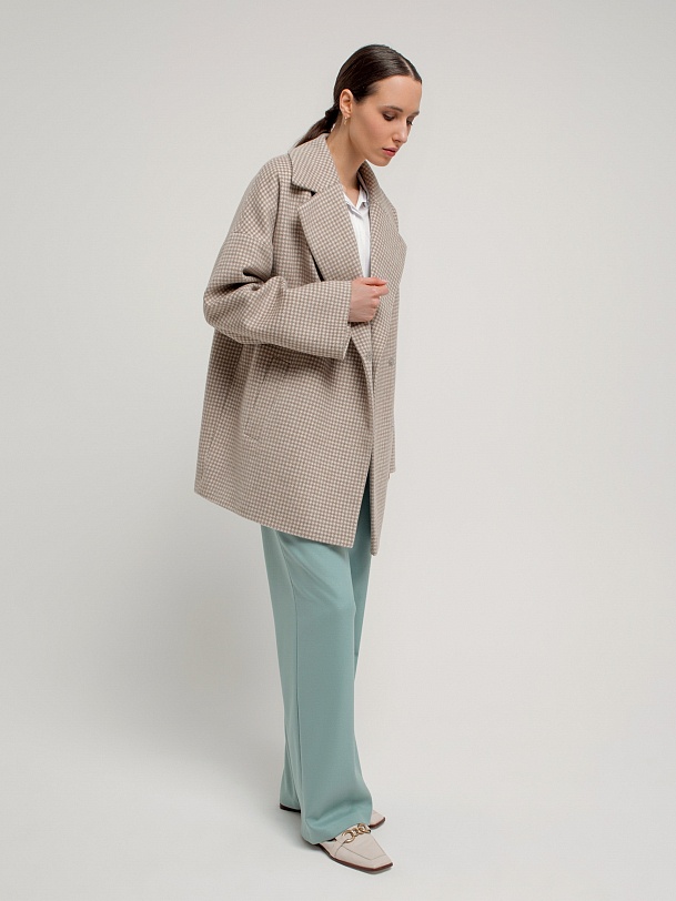 Двубортное укороченное пальто прямого силуэта