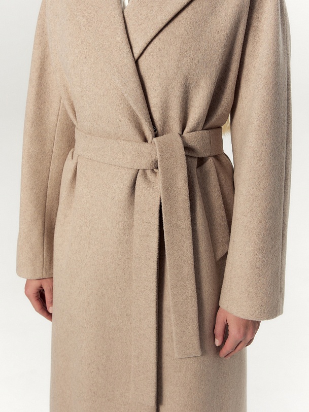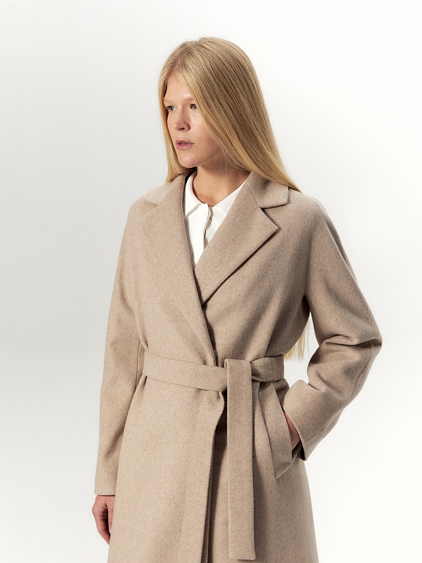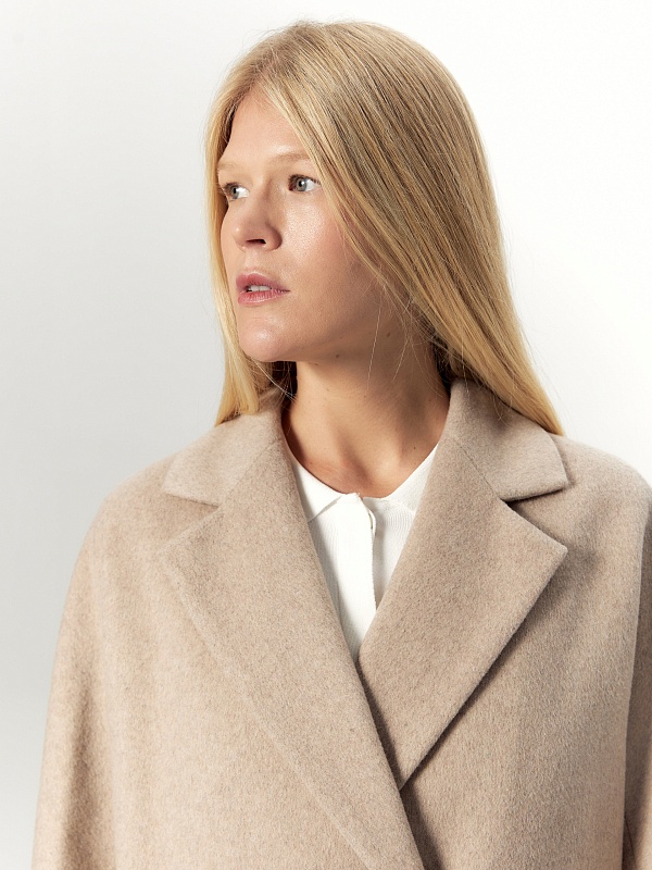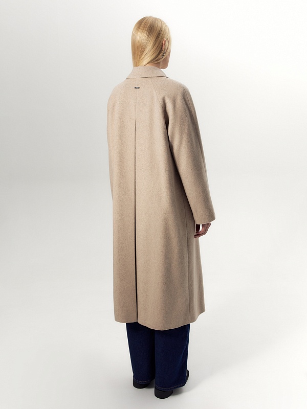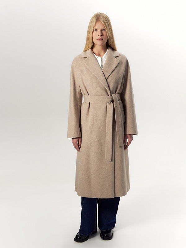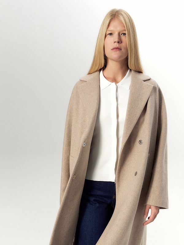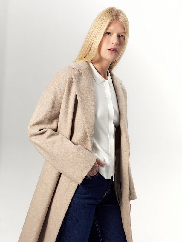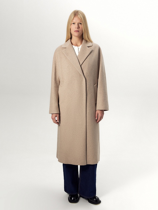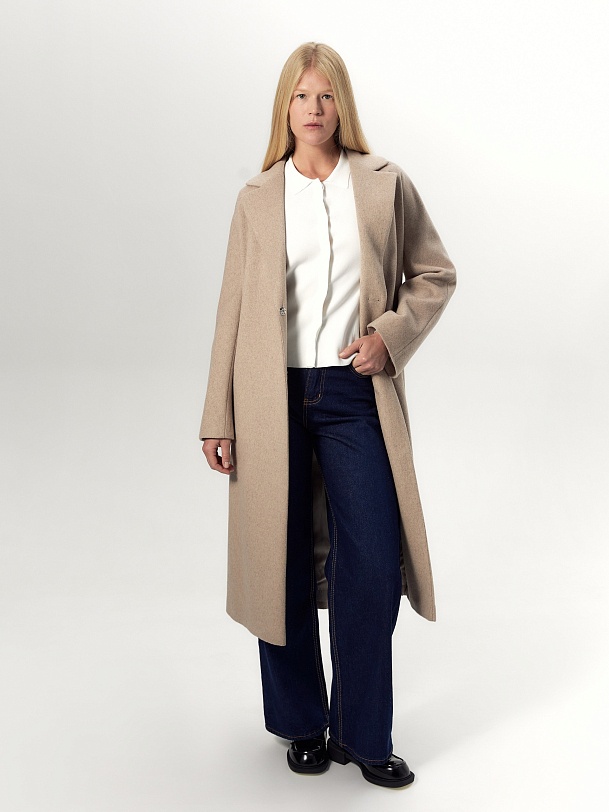 Однобортное пальто прямого силуэта из шерстяной ткани бежевого цвета с эффектом меланж. Длина пальто ниже колена, классический английский воротник, глубокие и комфортные карманы-листочки, которые при этом не создают лишнего объема. На спинке пальто глубокая складка, которая придает дополнительную свободу и делает пальто не только очень стильным, но еще и невероятно комфортным. Пальто выполнено из премиальной шерстяной ткани с использованием мембраны RaftPro, которая надежно защитит вас от ветра. Произведено в Санкт-Петербурге.